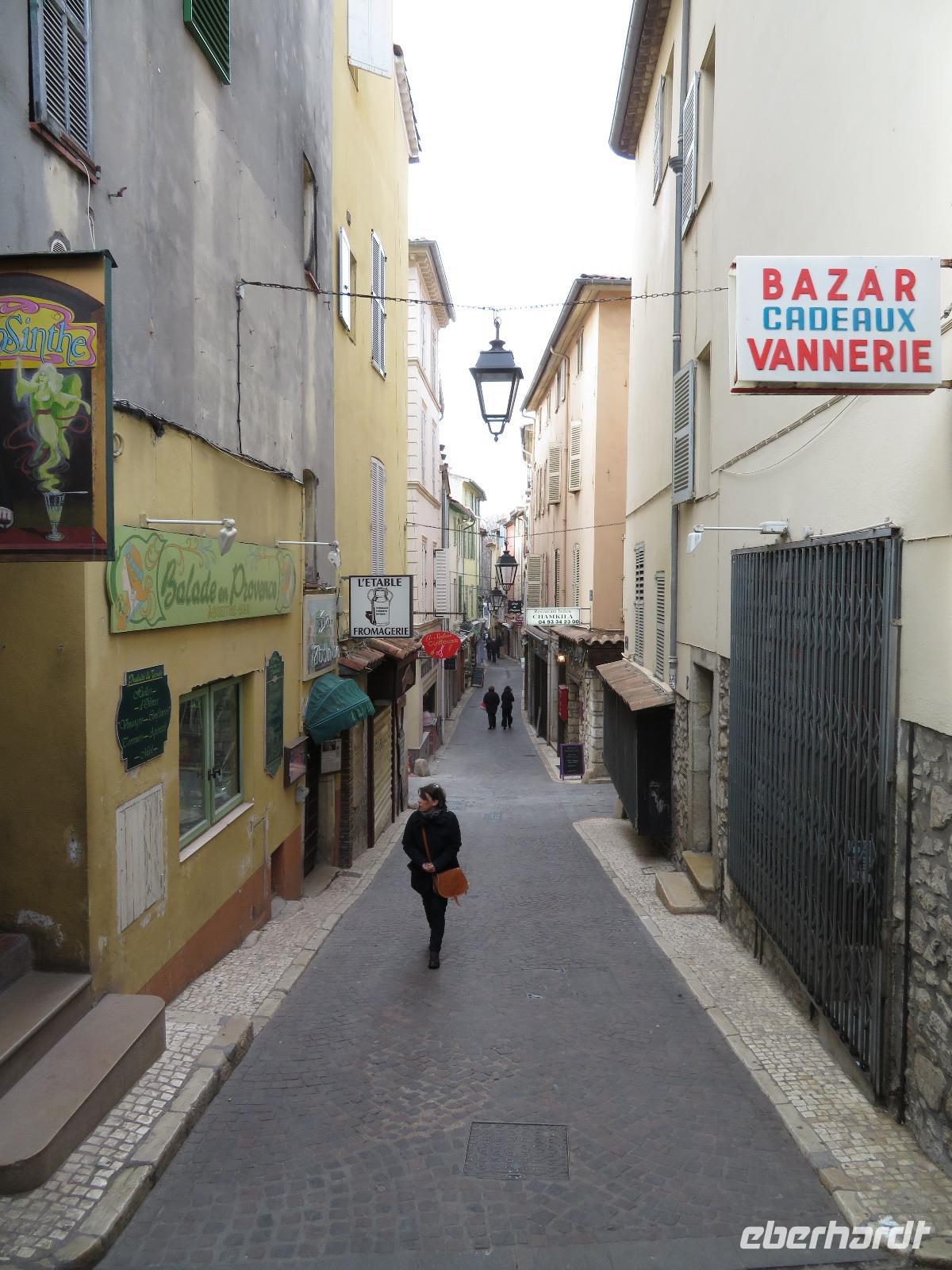 Nach einem ausgezeichneten Frühstück, welches weit über das übliche Sortiment des „typischen pétit déjeuner" der Franzosen hinausging treffen wir Richard, der uns auf unterhaltsame Art und Weise seine Heimatstadt vorstellt. Die Rue Droite durchschneidet das Gassenlabyrinth von „Vieux Nice" der Altstadt. Hier gibt es viele kleine Geschäfte mit Lavendelhonig, Tapenaden aus Oliven oder Sardellenfilets, frischer Pasta sowie Bars mit arabischer Musik, Straßenverkauf von „Socca". Die dünnen Fladen aus Kichererbsenmehl und Olivenöl sind ein typisches Gericht der so genannten armen Küche. In speziellen flachen Backblechen wird die Socca bei hoher Temperatur im Holzofen gebacken und heiß mit viel Pfeffer gegessen.