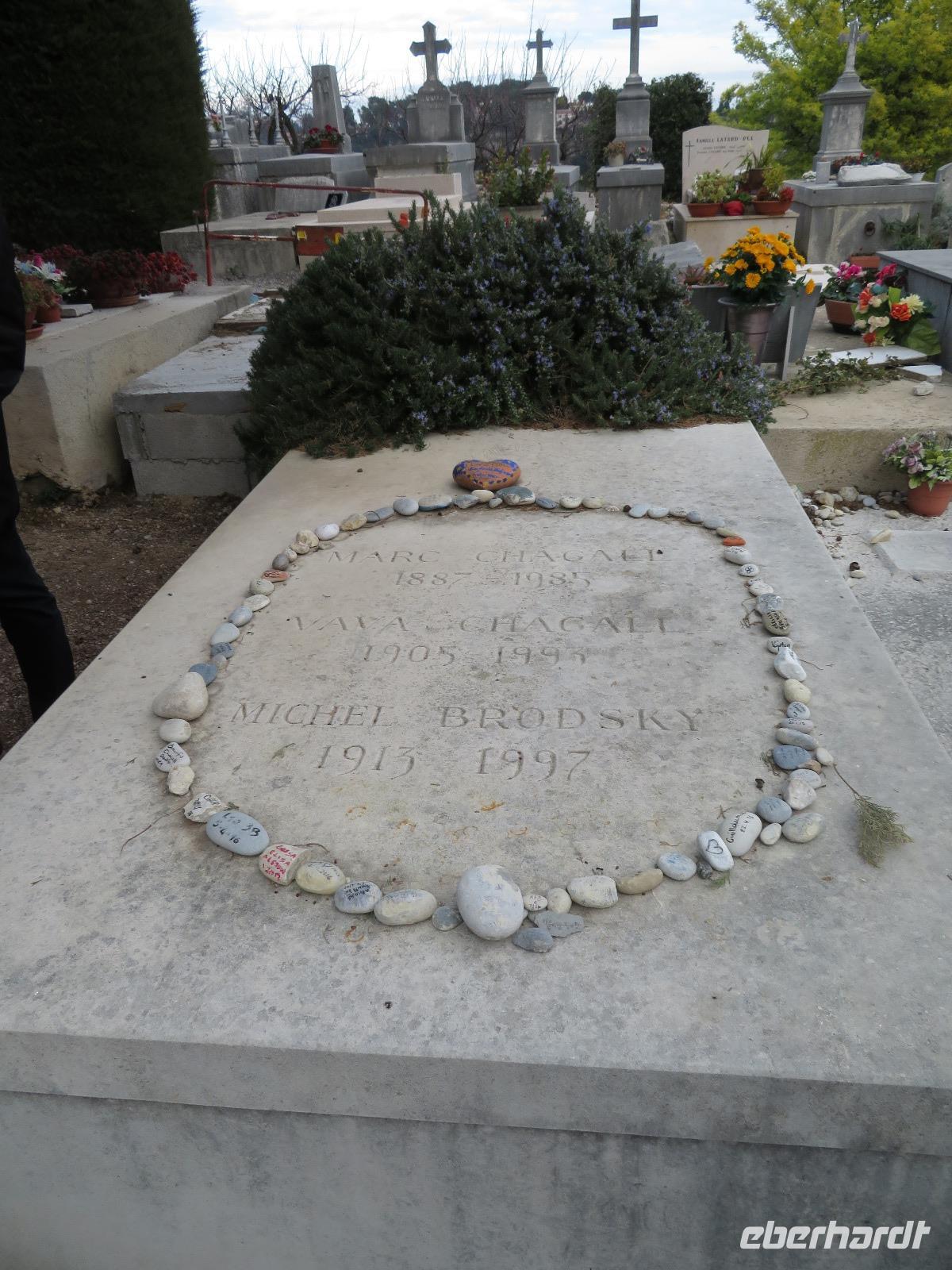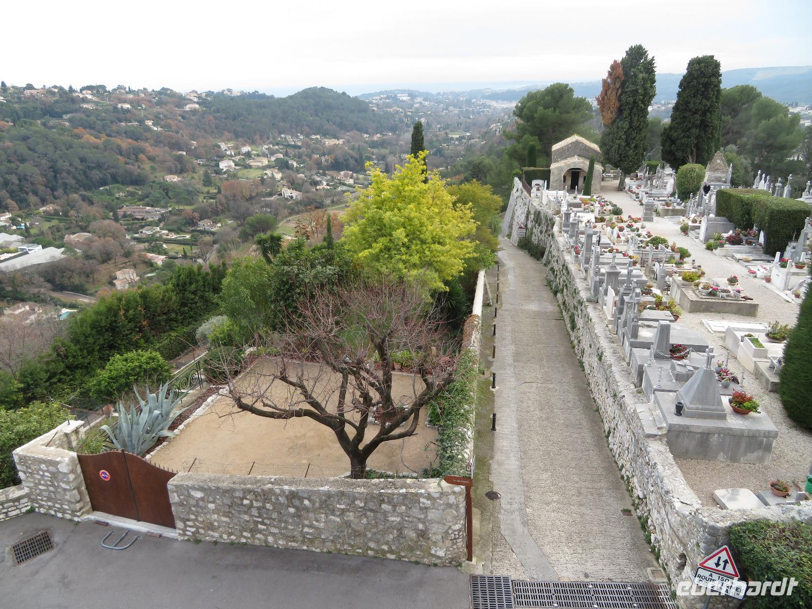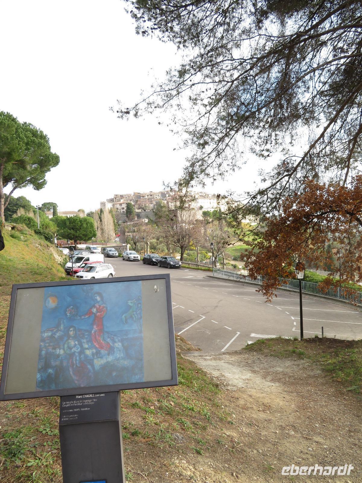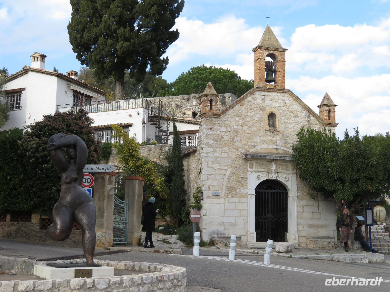 Wir schlendern durch die mit Kieselsteinen gepflasterten Gassen, vorbei an dem Brunnen der „Place de la Grande Fontaine" mit dem ehemaligen Waschhaus. Zum Schluss statten wir dem Grab von Marc Chagall einen Besuch ab. Der aus Weißrussland stammende Künstler hat hier viele Jahre gelebt und vermachte in den 80er Jahren der nur wenige Gehminuten von hier entfernten Privatsammlung „Fondation Maeght", einem der wichtigsten Museen an der Côte d'Azur, einige seiner Werke.