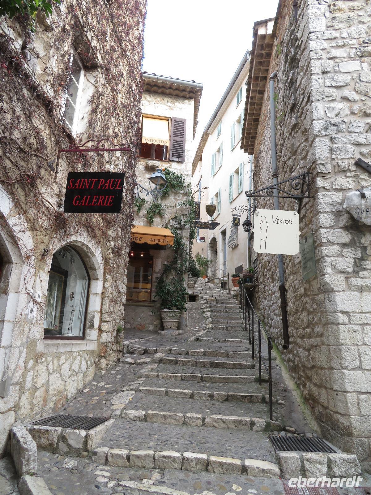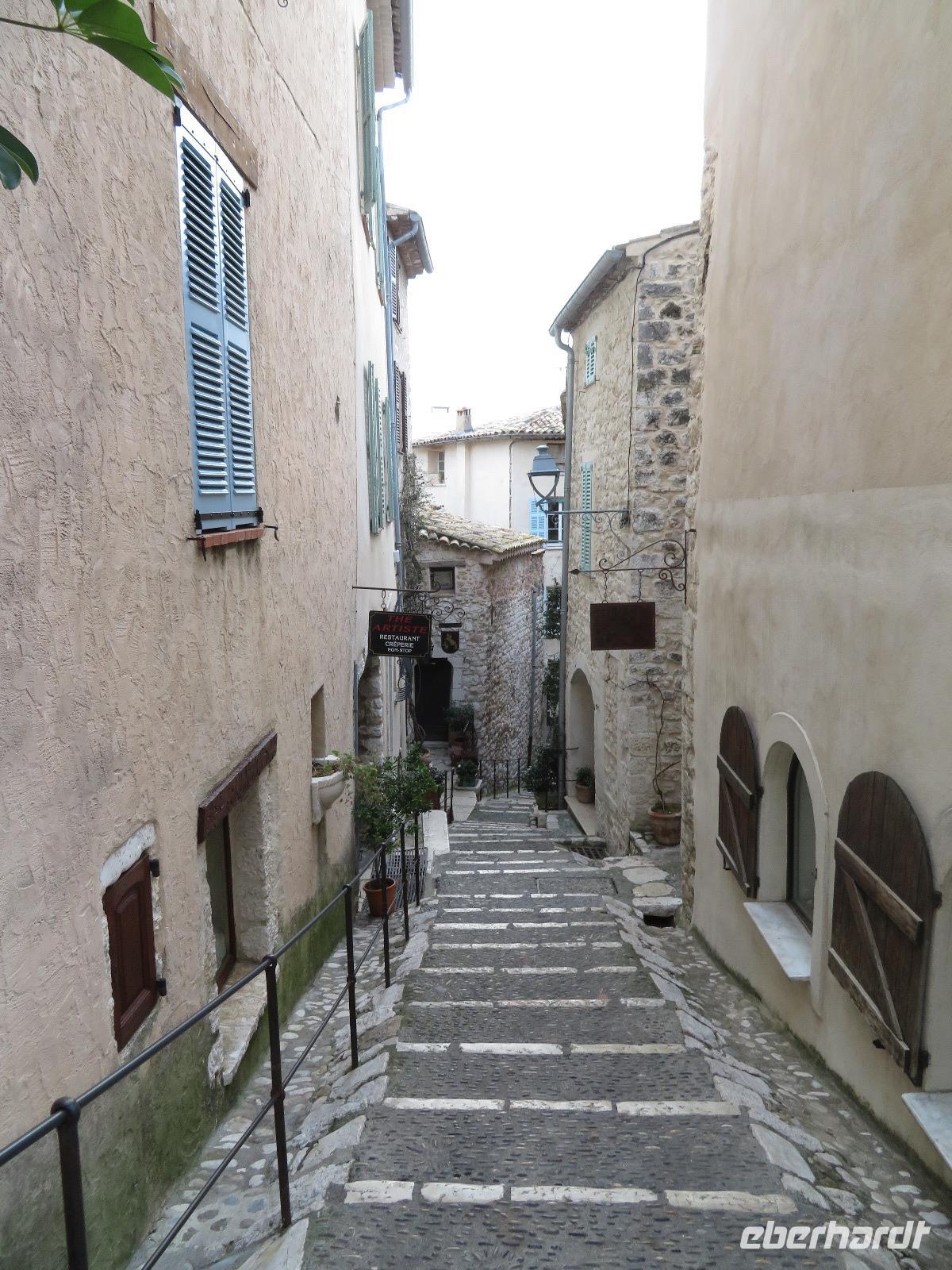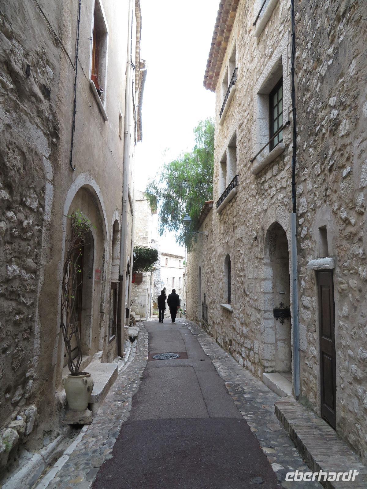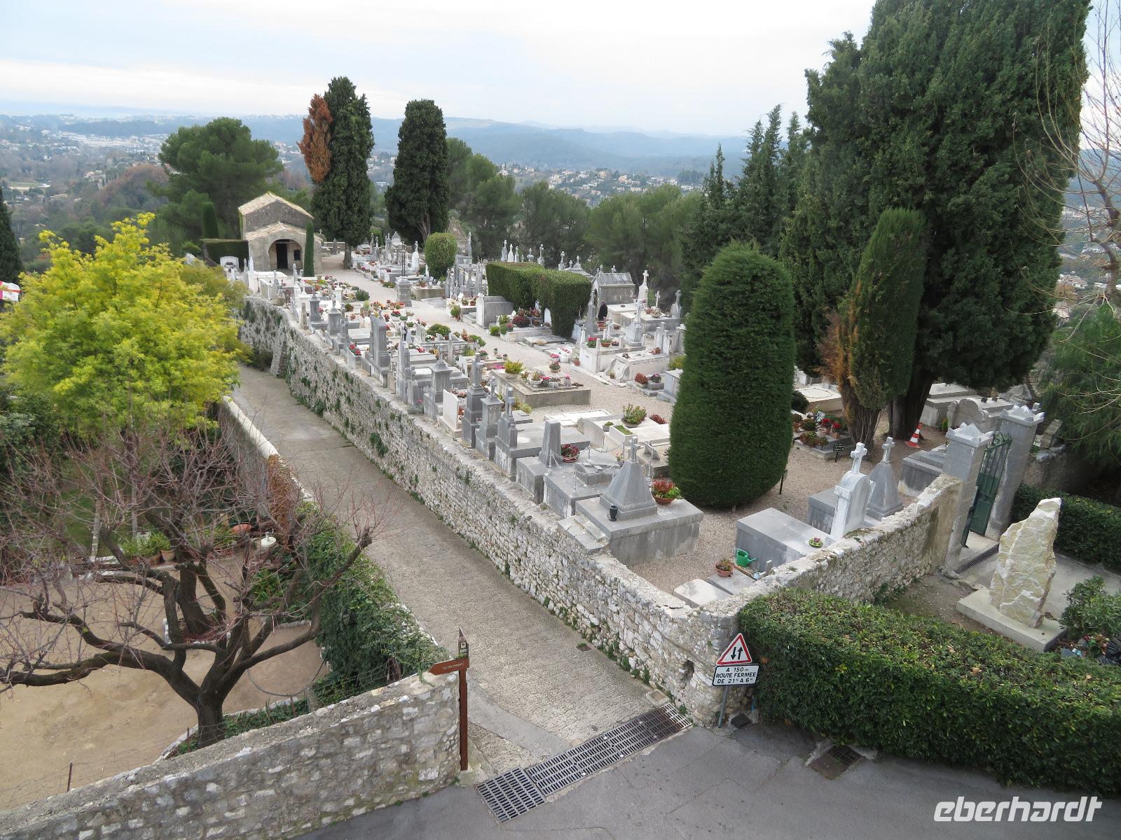 Wir schlendern durch die mit Kieselsteinen gepflasterten Gassen, vorbei an dem Brunnen der „Place de la Grande Fontaine" mit dem ehemaligen Waschhaus. Zum Schluss statten wir dem Grab von Marc Chagall einen Besuch ab. Der aus Weißrussland stammende Künstler hat hier viele Jahre gelebt und vermachte in den 80er Jahren der nur wenige Gehminuten von hier entfernten Privatsammlung „Fondation Maeght", einem der wichtigsten Museen an der Côte d'Azur, einige seiner Werke.