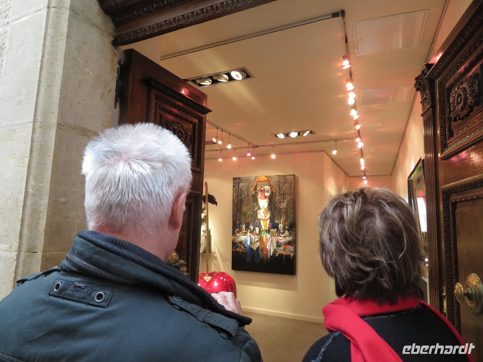 Anschließend fahren wir mit dem Bus zum Künstlerdorf Saint-Paul-de-Vence. Am Ortseingang sehen wir zunächst das bekannte Hotelrestaurant „Colombe d'Or". Bekannte Künstler wie Mondigliani, Chagall und Picasso gingen hier in den 1920er-Jahren ein und aus, bezahlten mit ihren Kunstwerken und trugen zum Ruf des Künstlertreffs bei. Am Bouleplatz, wo Yves Montand und Lino Venturi viele Nachmittage beim liebsten Zeitvertreib der Franzosen, dem Petanque-Spiel, verbrachten, fachsimpeln wir an einem modernen Kunstobjekt aus Boulekugeln über die Regeln.