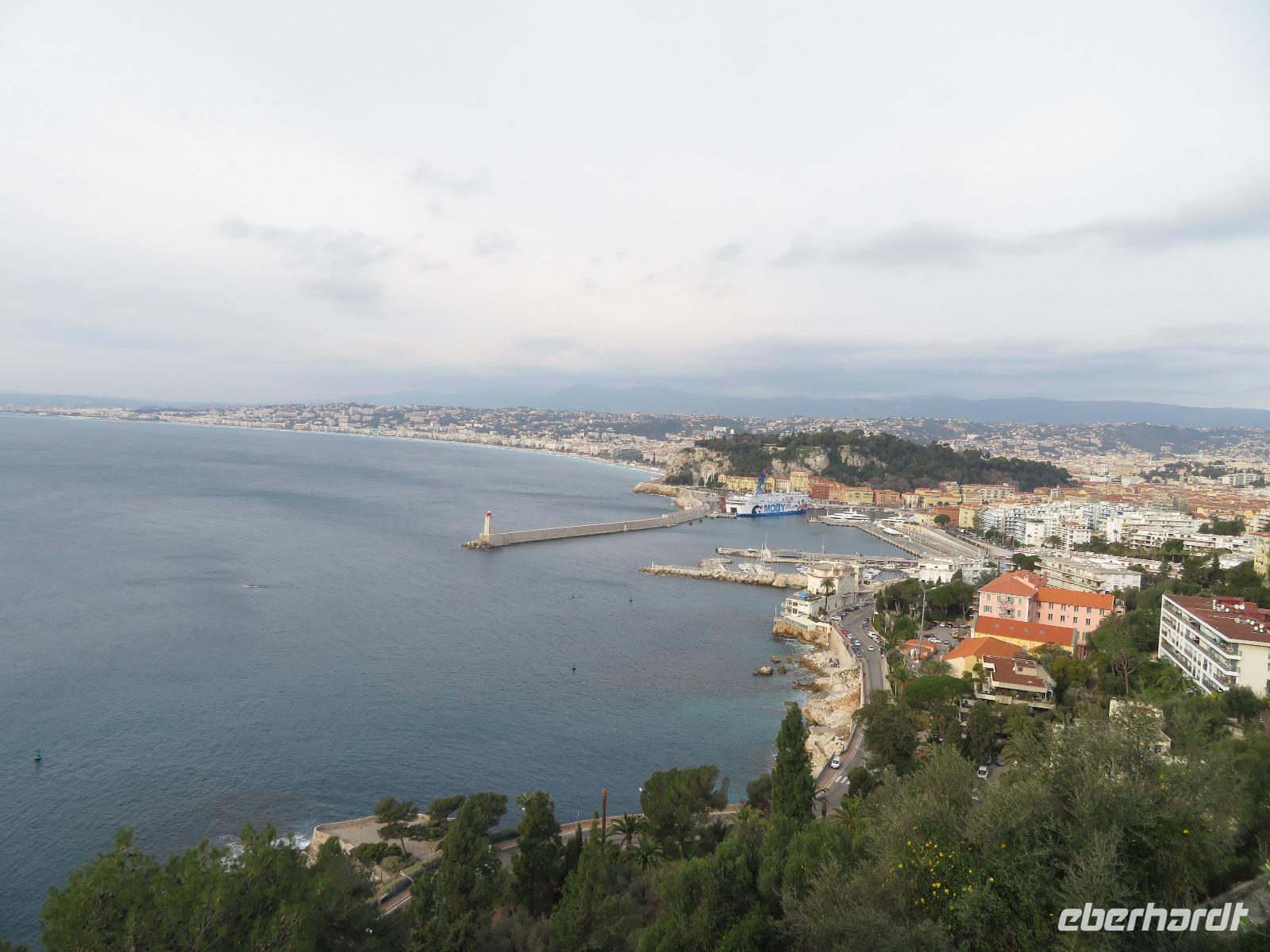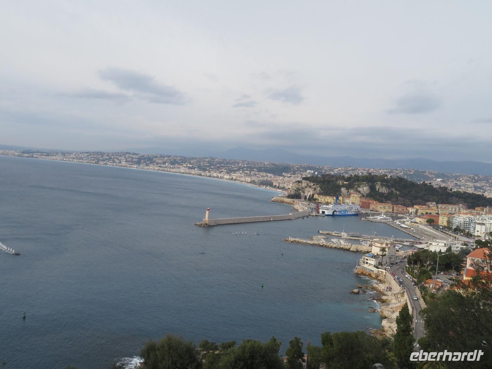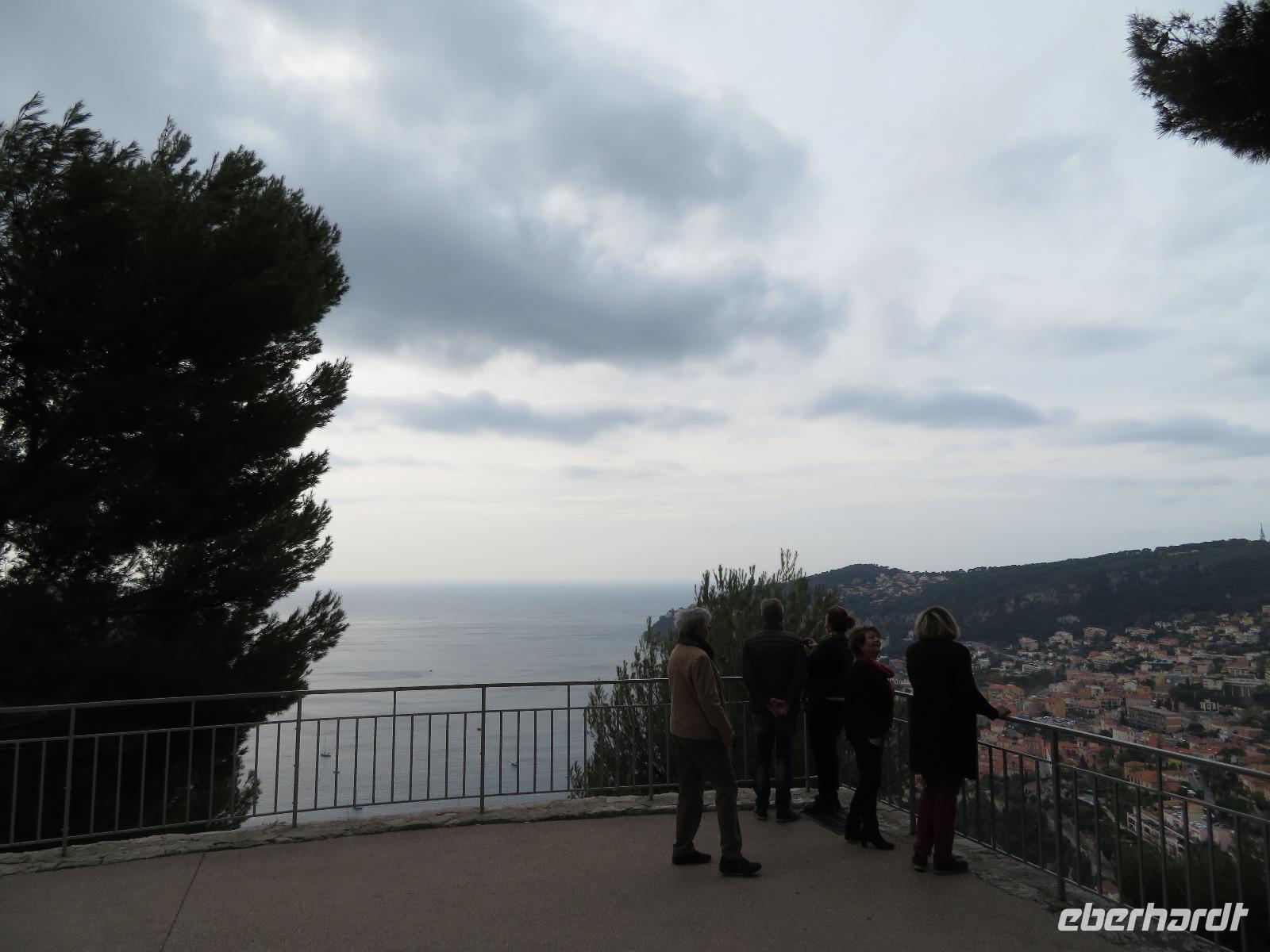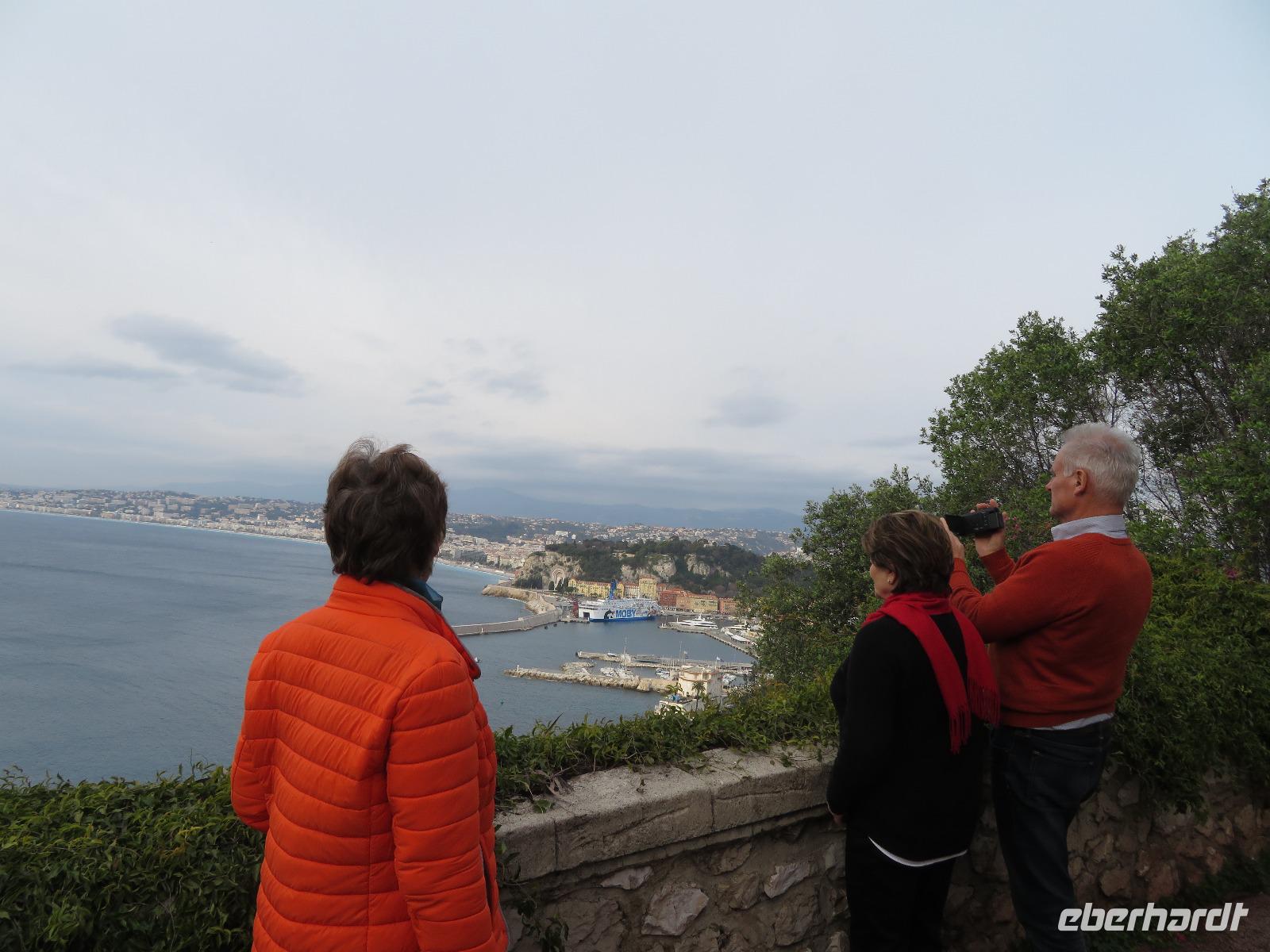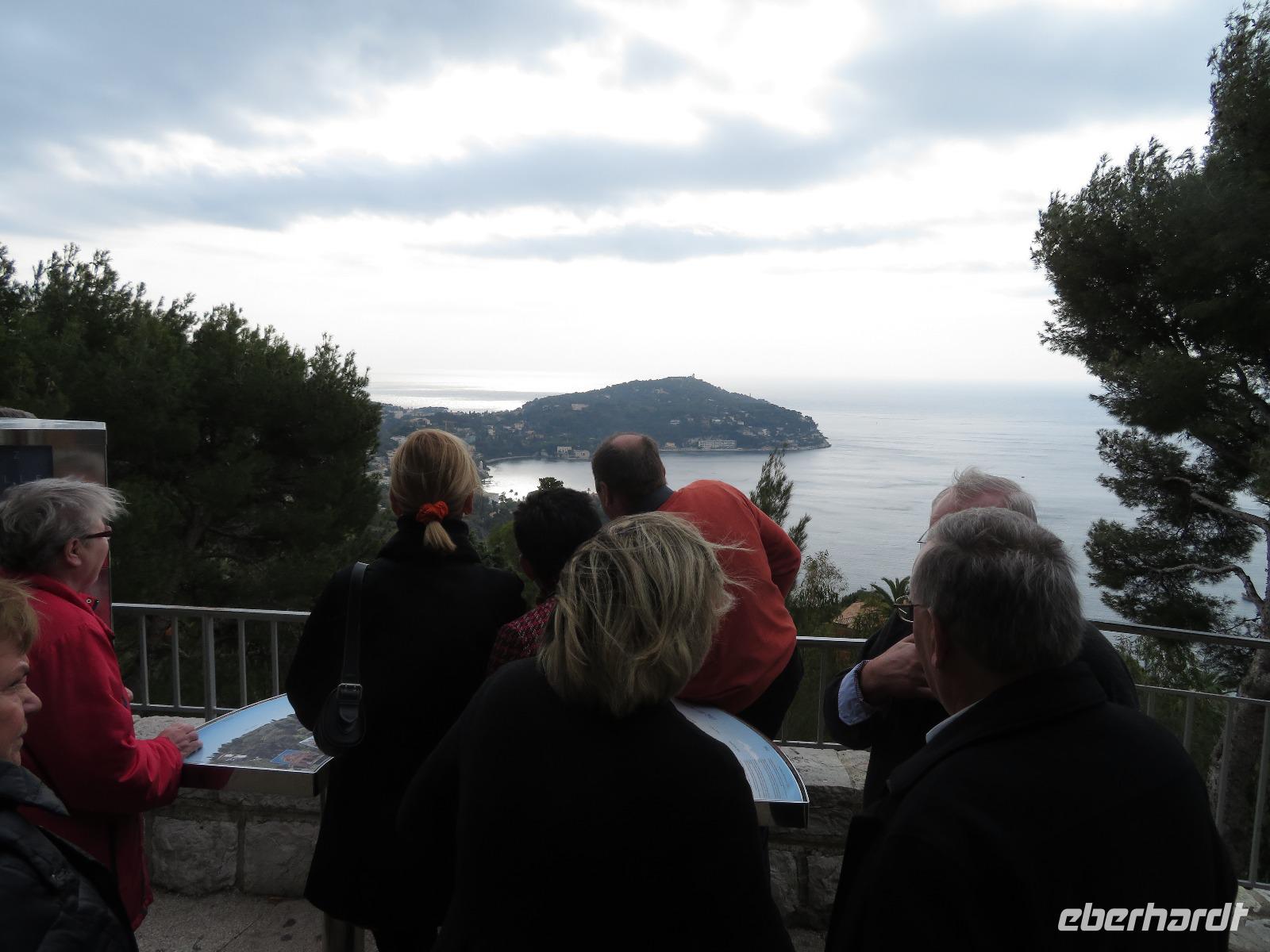 Heute Morgen fährt unser Bus über Villefranche-sur-Mer nach Éze Village. Vom Aussichtspunkt am Mont Boron haben wir zunächst einen phantastischen Blick auf den Hafen von Nizza und die Promenade des Anglais.