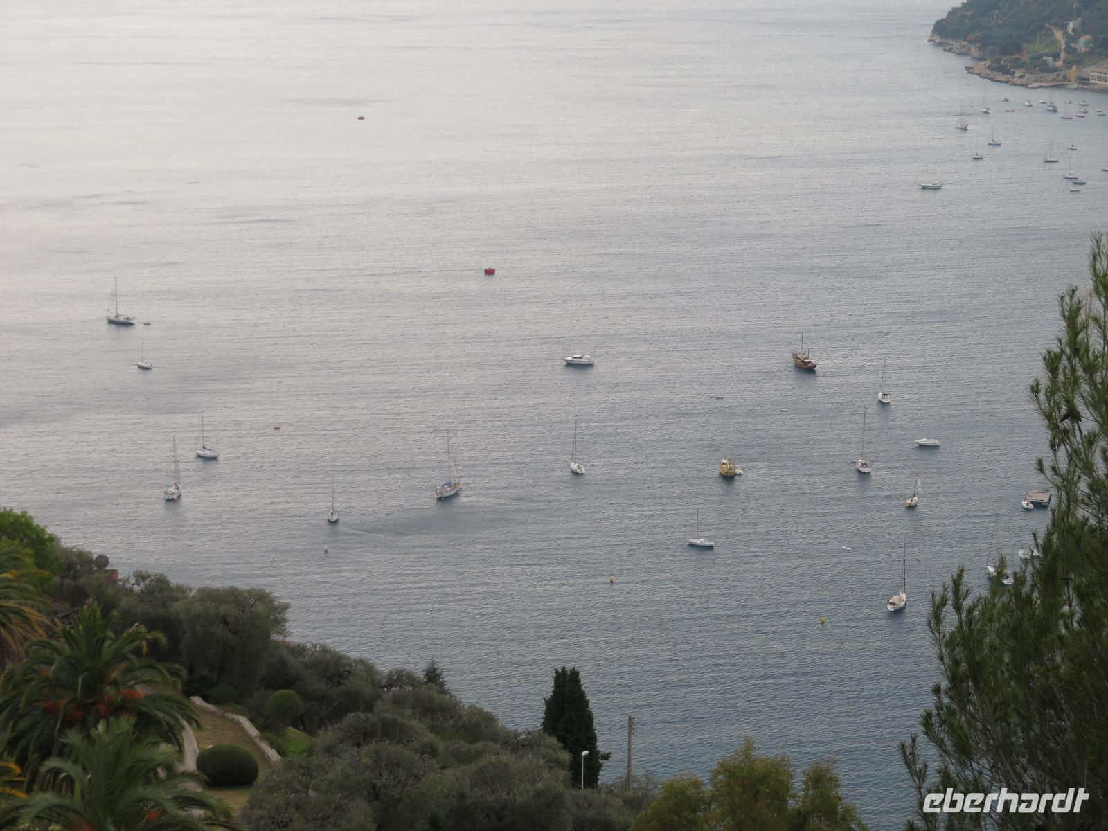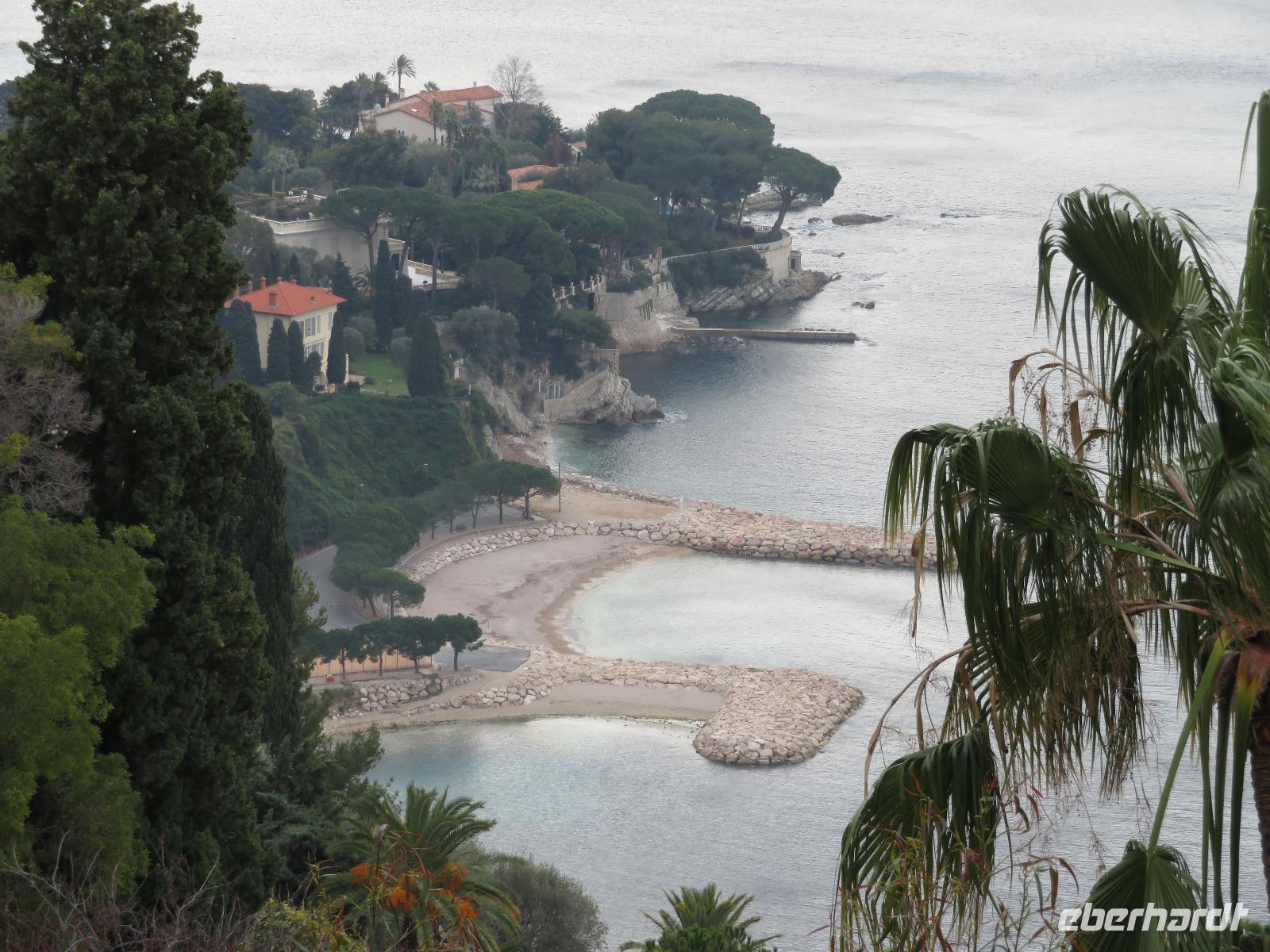 Wir machen einen Fotostopp mit Blick auf den bereits im 13. Jahrhundert unter Karl II. von Anjou ausgebauten sehr schönen Naturhafen von Villefranche und das legendäre Cap Ferrat mit den schönsten Villen, darunter die Villa Ephrussi de Rothschild, die für Baronesse Béatrice im Stil der Belle Epoque erbaut wurde.