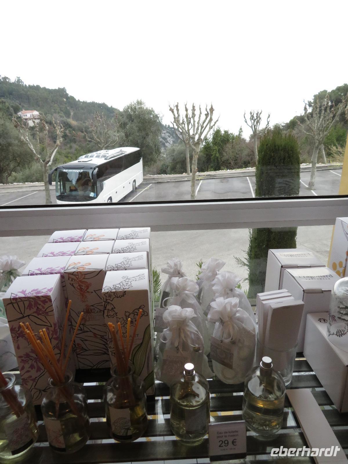 Schon aus der Ferne können wir Èze, das hübsche kleine Bergdorf auf einem Felskegel erkennen. Dort besichtigen wir die Parfümfabrik Fragonard und erfahren alles Wissenswerte über die Herstellung von Parfum und Kosmetikprodukten sowie über den Beruf der „Nase": Der Parfümeur darf und kann nur vier Stunden am Tag arbeiten und muss 3.000 Gerüche bestimmen können! Anschließend dürfen wir die Produkte auch selbst probieren und erstehen einige Mitbringsel für zu Hause.