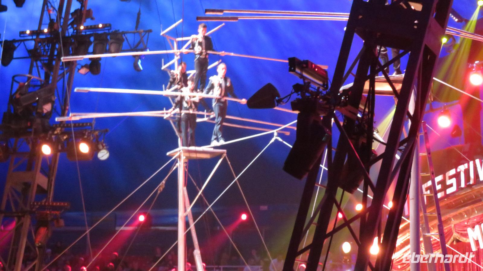 In der WINNER-SHOW des Zirkusfestivals werden an fünf Abenden die Darbietungen der Gewinner der GOLDENEN (2), SILBERNEN (5) und BRONZENEN CLOWNS sowie der Spezial- und Sonderpreise gezeigt. Auf eine dieser Darbietungen durften sich gemeinsam mit mir als Reiseleiterin und Cipriano Ramos Ruiz als Reisebegleiter die zwanzig Teilnehmer der „Zirkusreise" von Eberhardt-Travel freuen.
