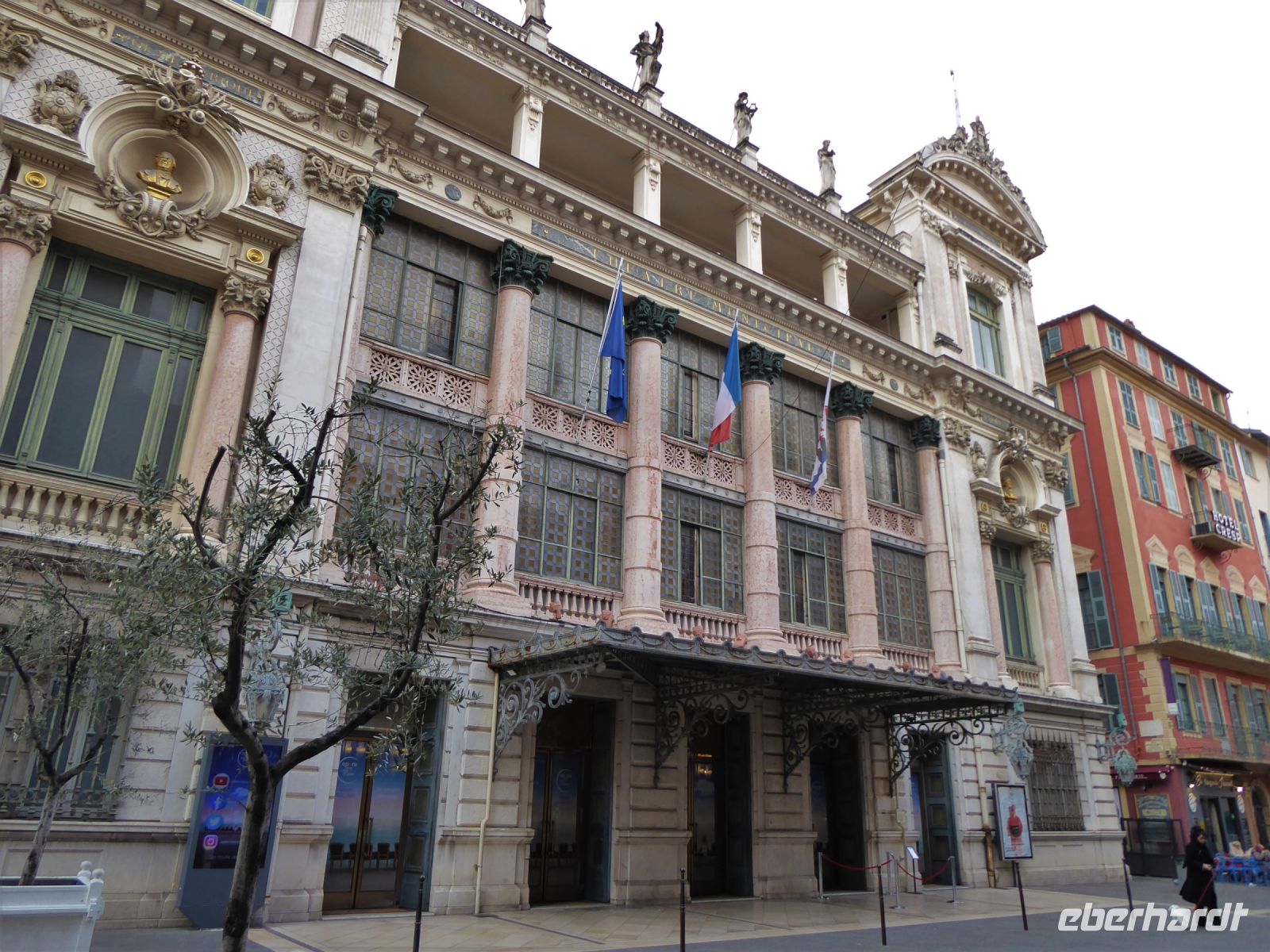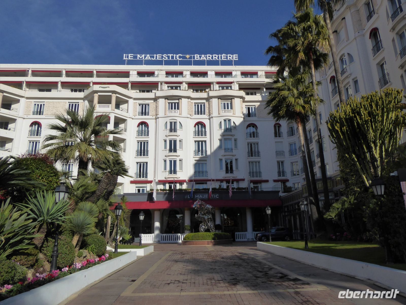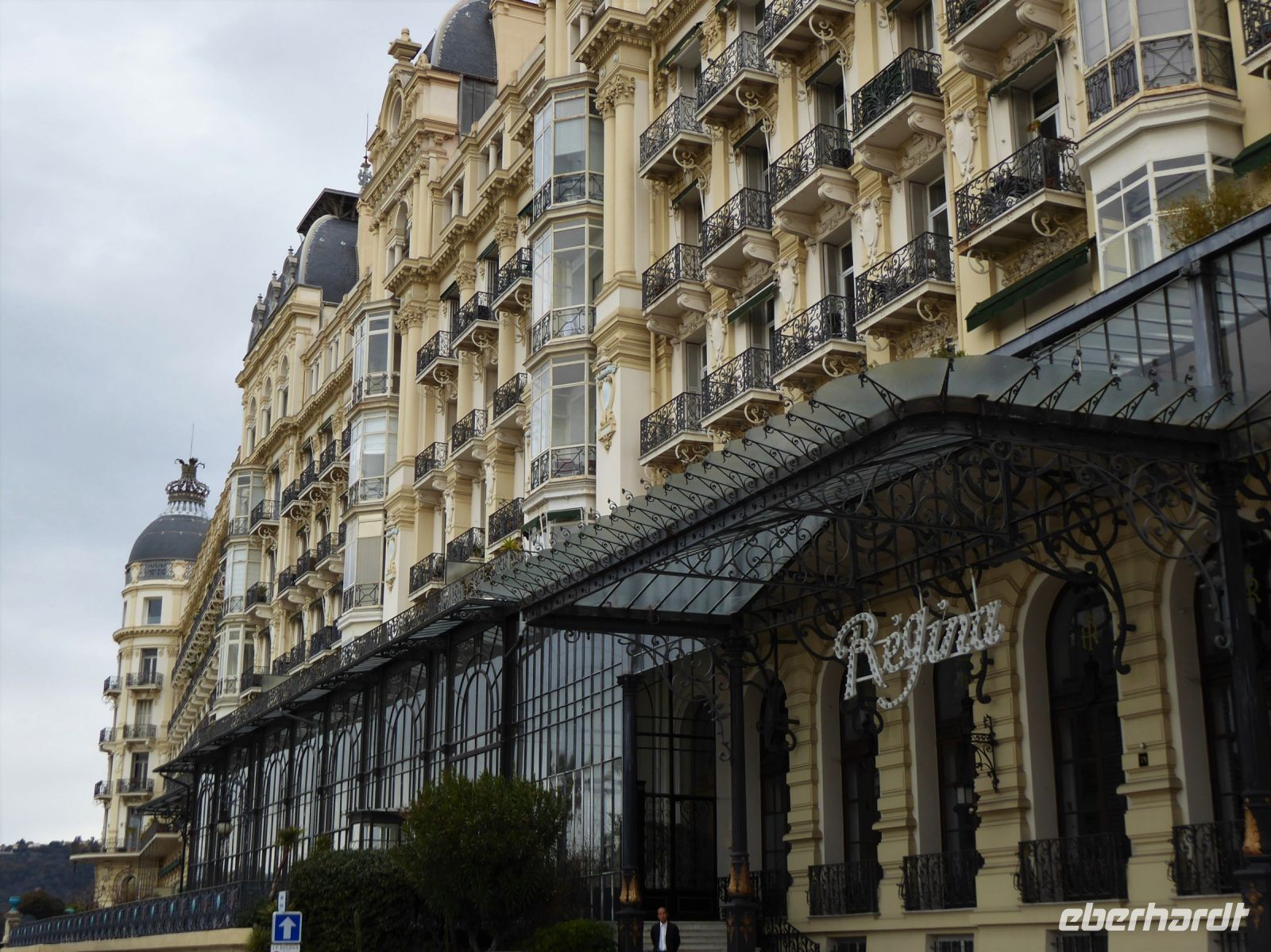 Aufgeteilt in zwei annähernd gleich große Gruppen bestiegen wir die bereitstehenden Busse, die uns in unsere Hotels brachten. Unterwegs gab es schon die ersten Erläuterungen zur Stadt Nizza, schließlich fuhren wir die legendäre Promenade des Anglais entlang. Hier reihen sich berühmte Hotels der Belle Époque aneinander, allen voran das berühmteste der Hotels, Le Negresco, das seit 1912 seine auffällige pinkfarbene Kuppel in den Himmel reckt. Einem Gerücht zufolge soll diese von Gustave Eiffel konstruiert worden sein, dem dafür der Busen seiner Geliebten als Modell diente. Im Jahre 1957 wurde das Hotel von seinem Dornröschenschlaf wieder erweckt und beherbergte seither prominente und weniger prominente Größen aus Politik und Wirtschaft, Kunstschaffende und Musiker sowie Vertreter des Jetset und Showbiz. Ein abendlicher Besuch in der gemütlichen Bar stand demgemäß auch bei uns weit oben auf der Wunschliste.
