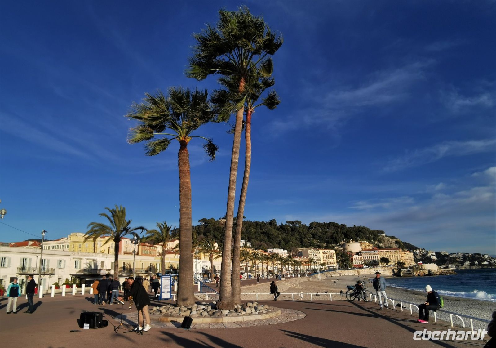 Nach dem Check-in im Hotel nutzten wir die herrliche Sonne zu einem ersten Entdeckerspaziergang entlang der Promenade des Anglais und bewunderten das herrliche türkisfarbene Meer, das in langen Wellen über den Strand rollte. Auf dem Blumenmarkt schnupperten wir an duftenden zitronengelben Mimosen und erfreuten uns am Anblick der berühmten grünen oder gleich mehrfarbigen Nelken der Riviera.