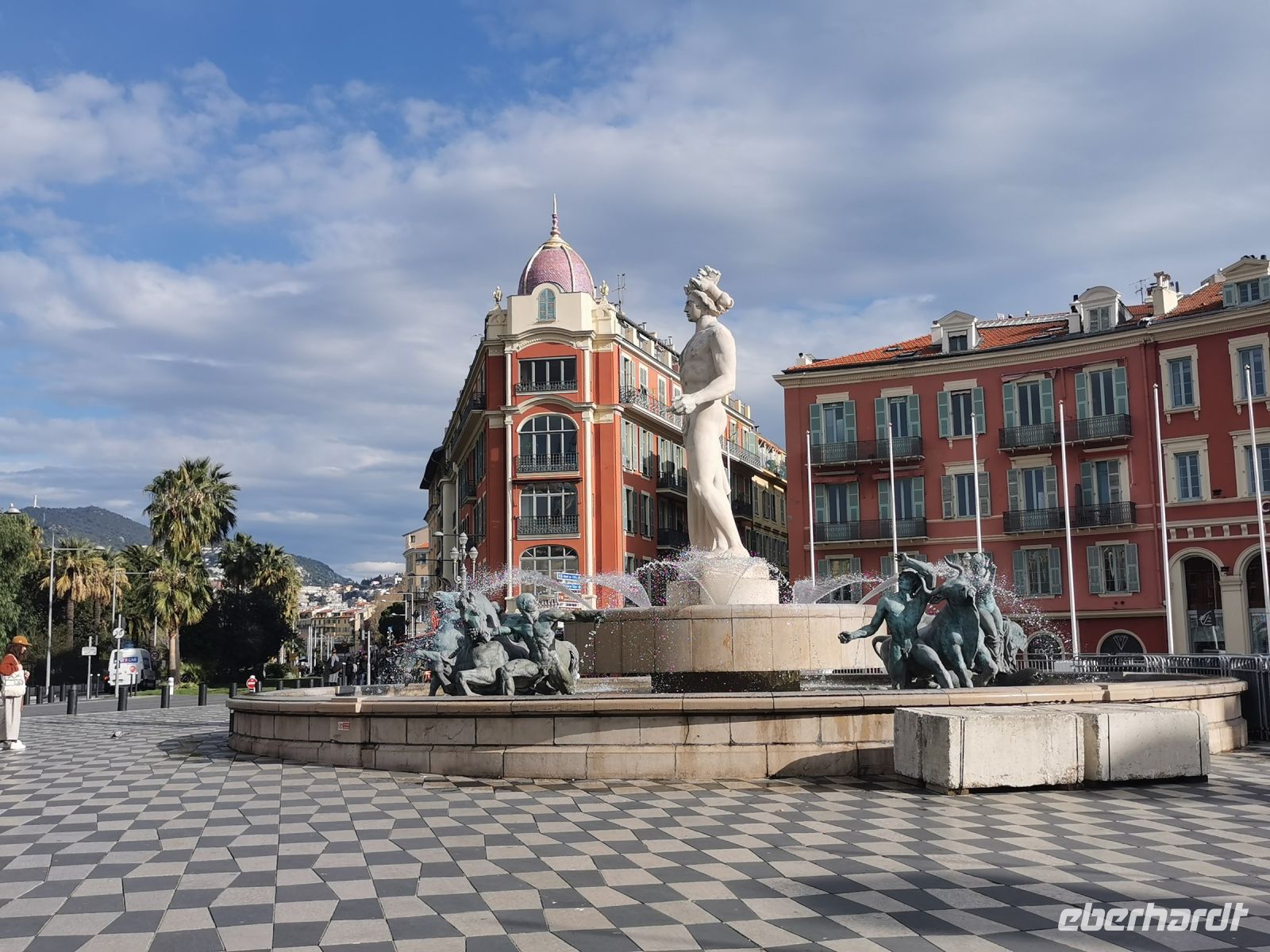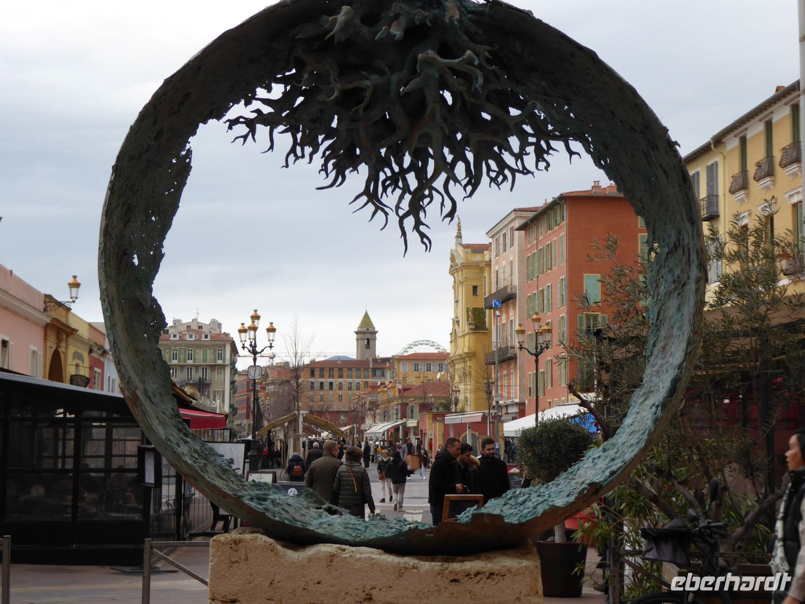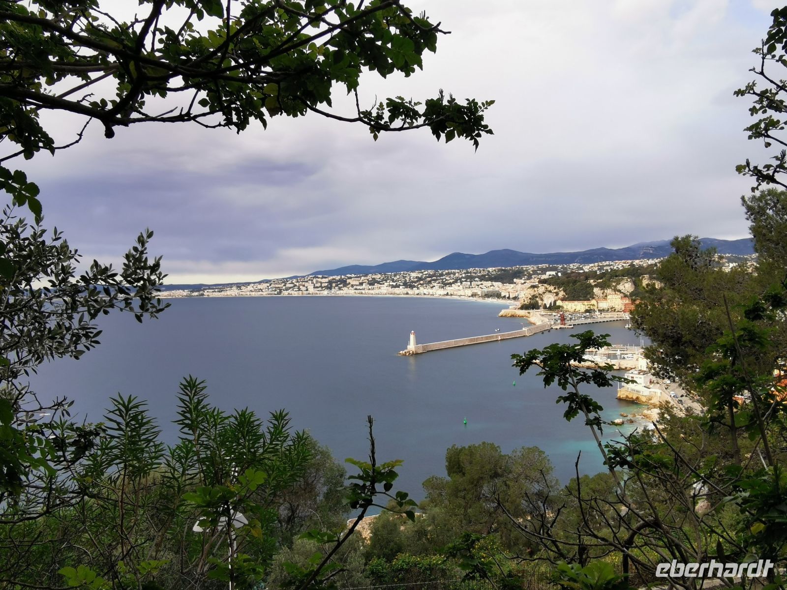 Die Abendsonne hüllte die Place Masséna mit dem großen Apollobrunnen in ein zauberhaftes Licht und hoch über dem Platz sitzen die Statuen des spanischen Künstlers Jaume Plensa, die ganz in sich versunken einen inneren Monolog zu führen scheinen. Wer noch Lust zu Laufen hatte, konnte die 220 Stufen zum Turm Bellanda hinaufsteigen um von oben die herrliche Aussicht über die gesamte Baie des Anges, die Engelsbucht, und die Dächer von Nizza zu genießen.
