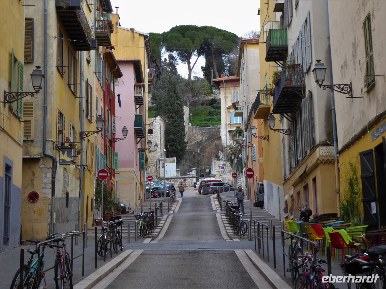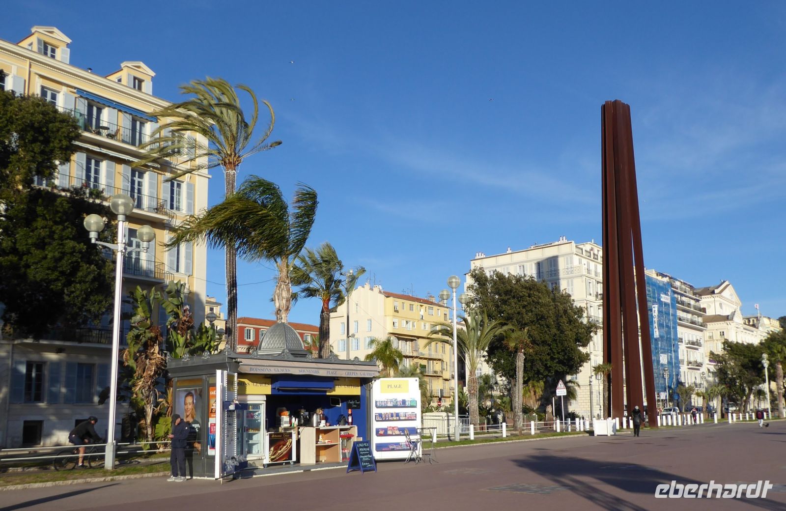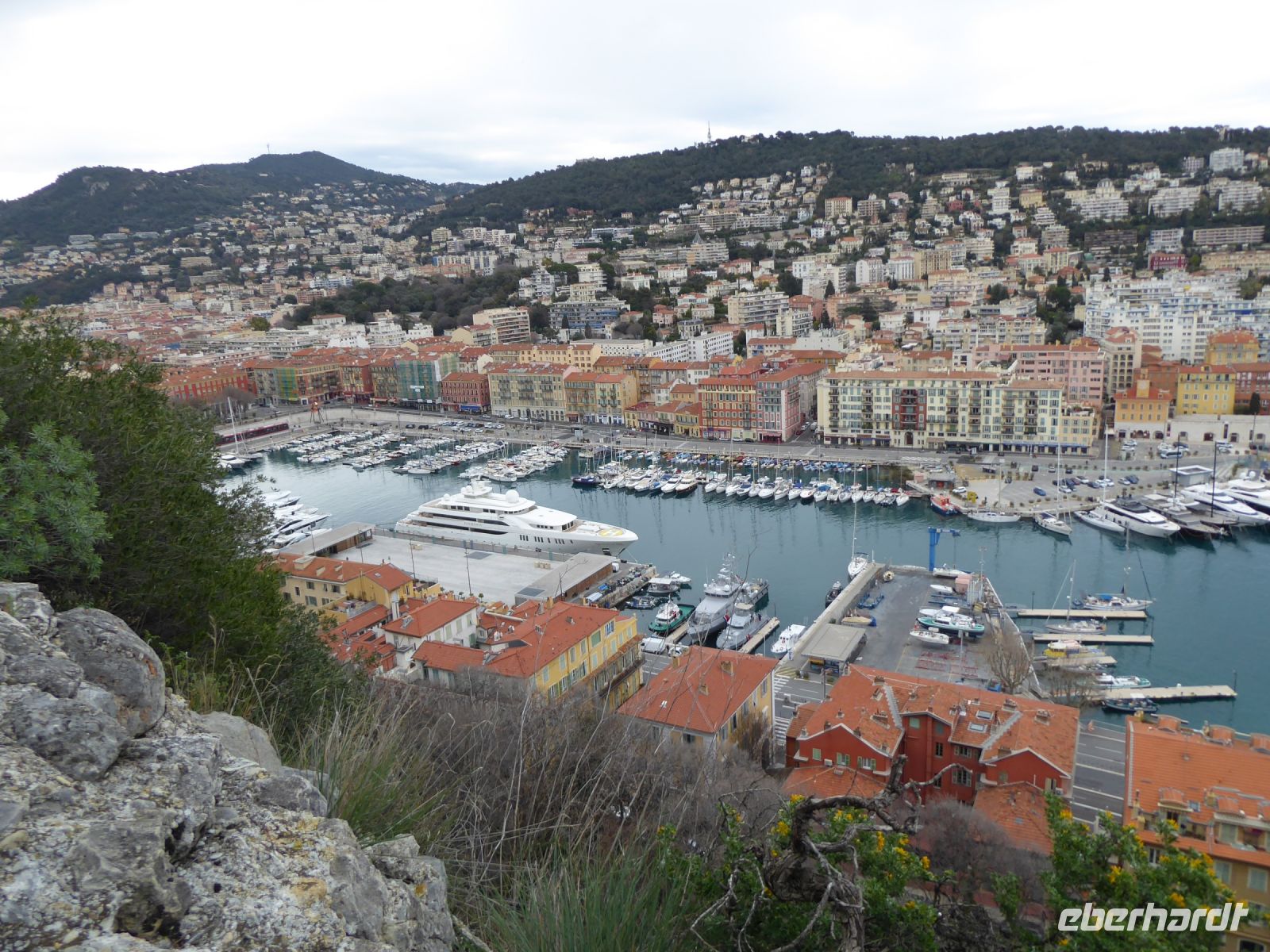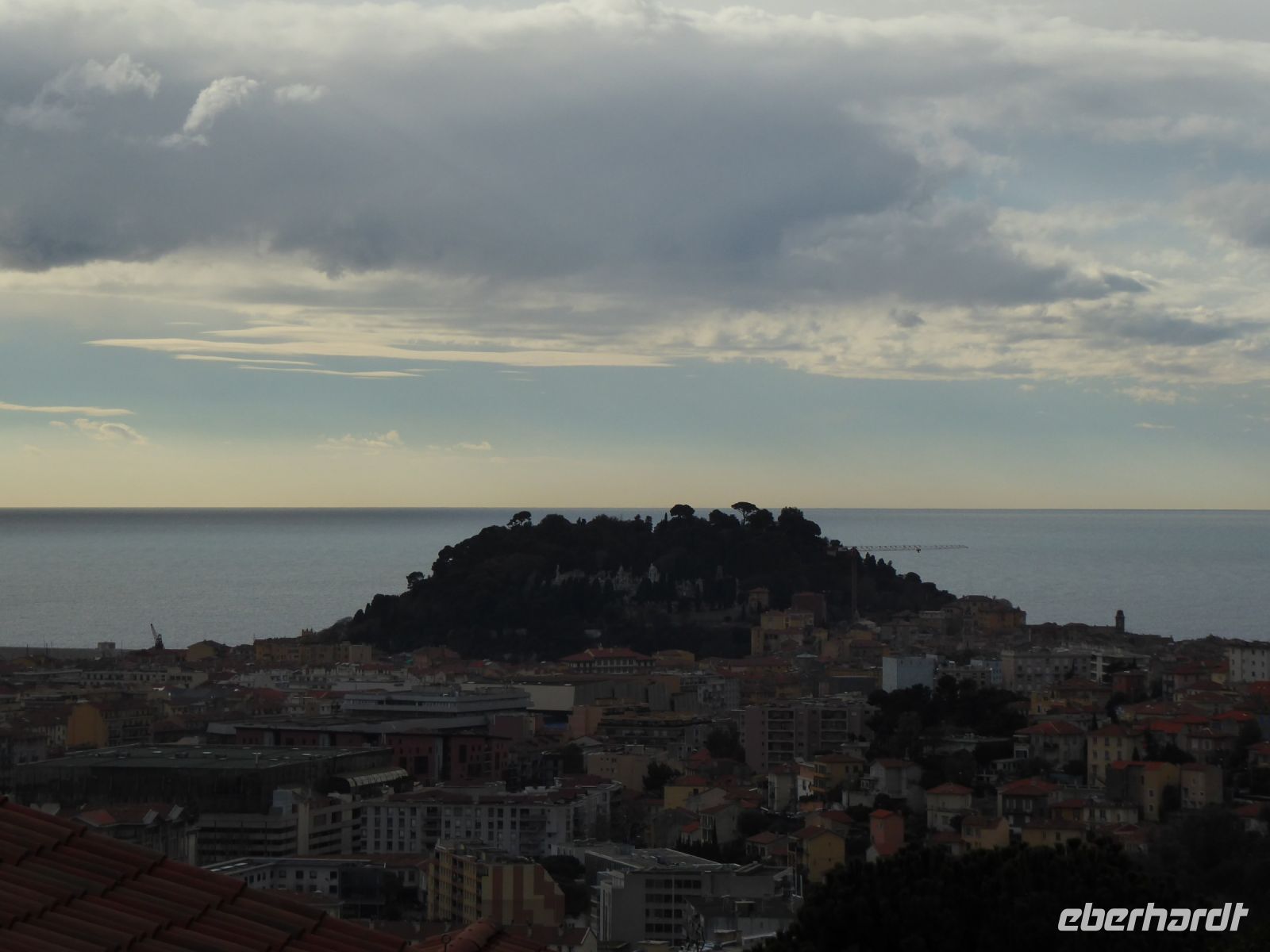 Die Abendsonne hüllte die Place Masséna mit dem großen Apollobrunnen in ein zauberhaftes Licht und hoch über dem Platz sitzen die Statuen des spanischen Künstlers Jaume Plensa, die ganz in sich versunken einen inneren Monolog zu führen scheinen. Wer noch Lust zu Laufen hatte, konnte die 220 Stufen zum Turm Bellanda hinaufsteigen um von oben die herrliche Aussicht über die gesamte Baie des Anges, die Engelsbucht, und die Dächer von Nizza zu genießen.