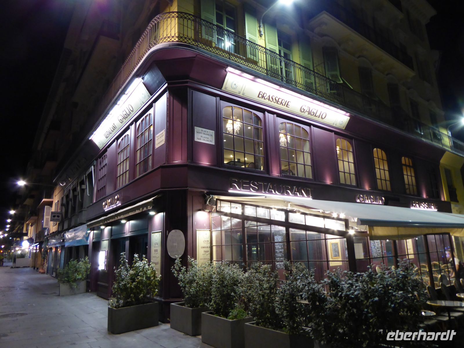 Das kleine Restaurant Marcel in der Altstadt von Nizza liegt in einer engen Gasse und war das Ziel unseres heutigen Abendspaziergangs. Nach der Vorspeise, Endiviensalat mit geräuchertem Lachs, gab es Schweinefilet auf hausgemachten Tagliatelle mit Zitronensauce. Nach dem üppigen Dessert, der weißen Dame, waren wir alle froh, vor dem Schlafengehen noch ein paar Schritte laufen zu dürfen. Ausgemachte Nachtschwärmer nutzten den frühen Abend noch für einen Ausflug in die Bar vom Hotel Negresco.