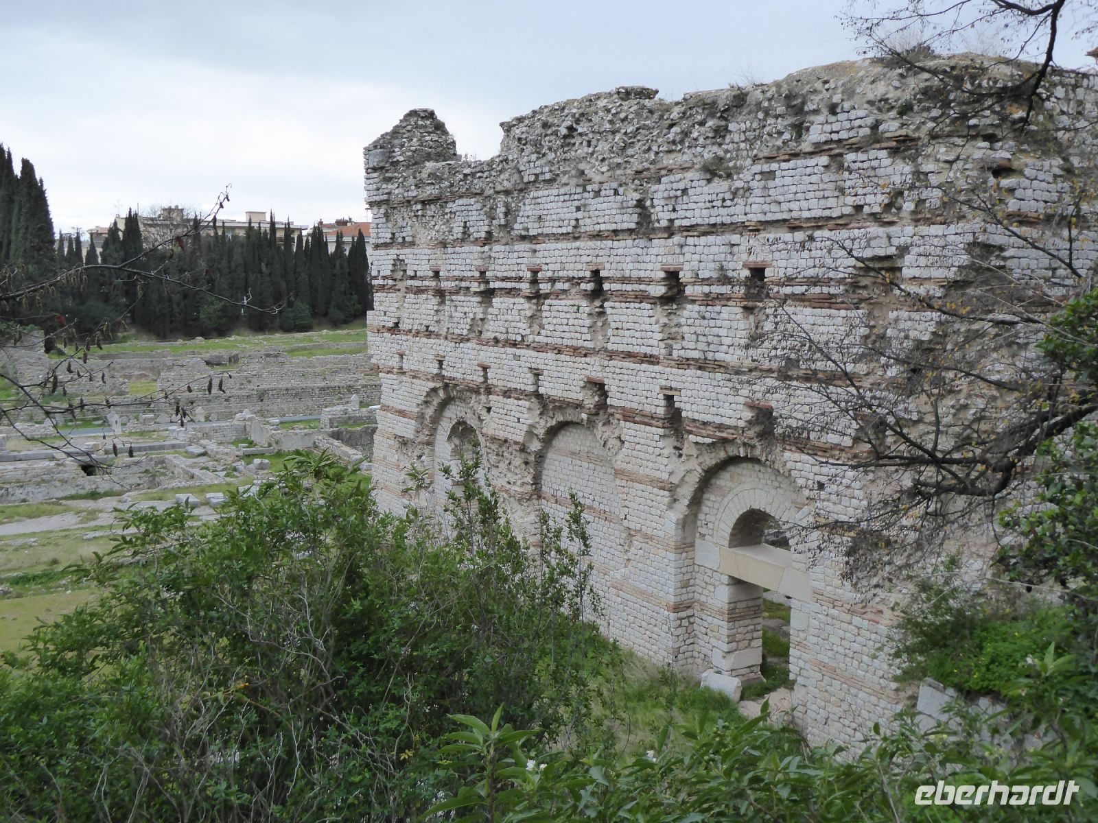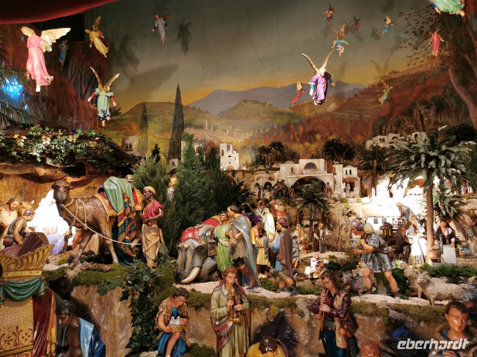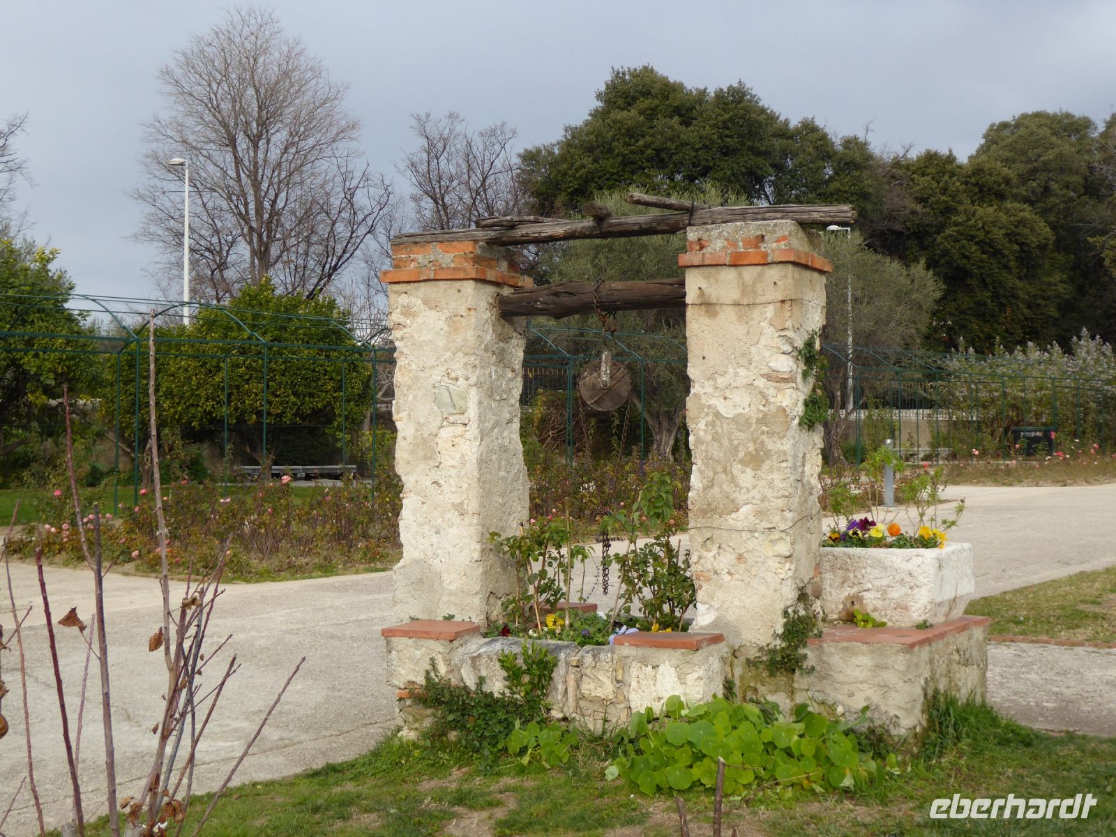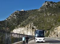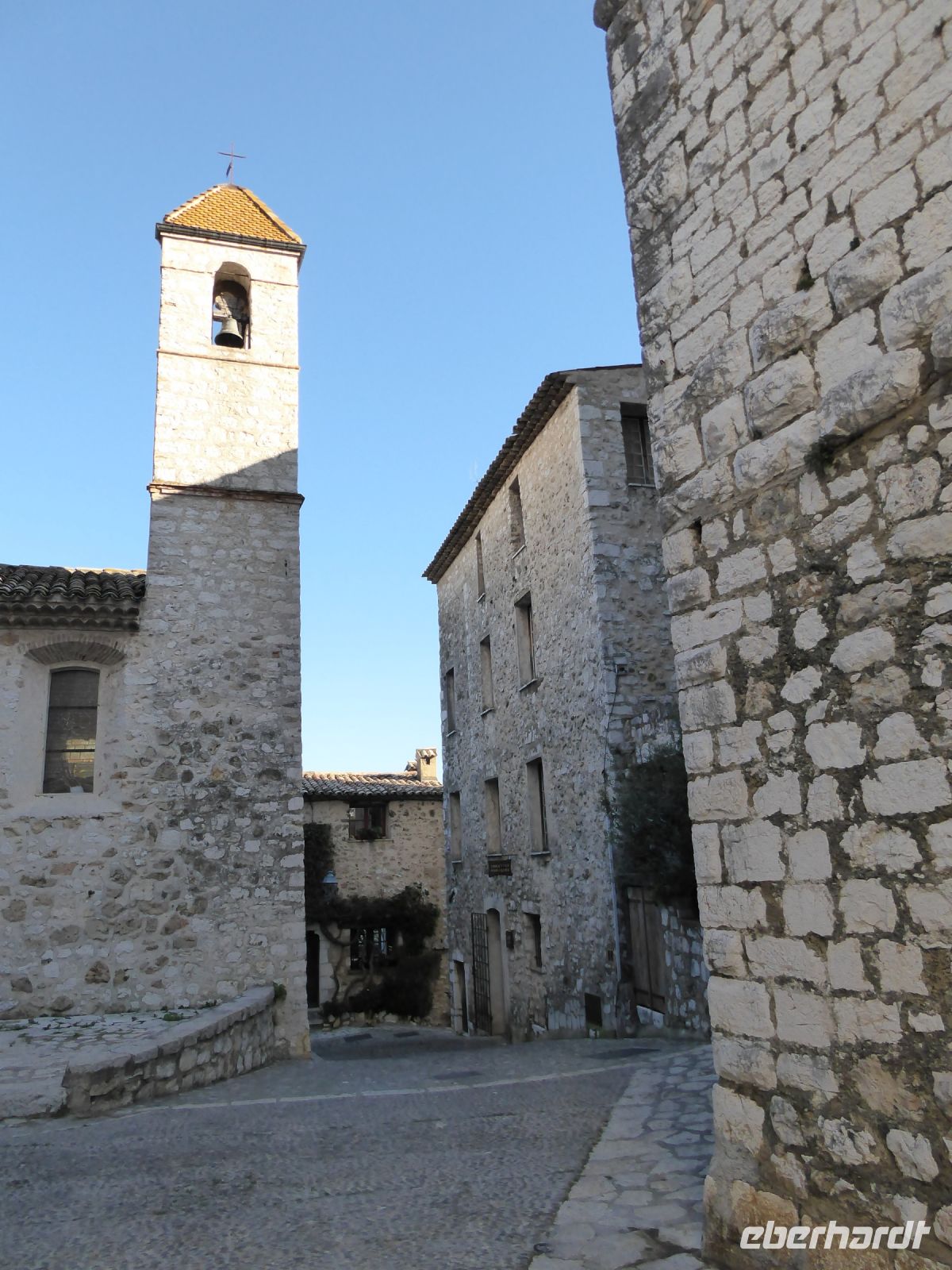 Wieder schien die Sonne herrlich vom blauen Himmel, als wir um 9:00 Uhr den Bus bestiegen und Richtung Westen nach Cannes fuhren. In der knappen Stunde Fahrtzeit unterhielt uns Hannelore fachkundig mit Geschichten und amüsanten Anekdoten von der Côte d´Azur, die vor vielen Jahrzehnten zu ihrer Heimat wurde. Unser Fahrer Jean-Pascal ließ uns direkt am alten Hafen in Cannes aussteigen. Gemütlich spazierten wir zum Casino und Filmfestspielpalast. Wir bestaunten die Handabdrücke berühmter Filmemacher und die der ganz Großen der Schauspielkunst, die sich, mit der begehrten goldenen Palme von Cannes ausgezeichnet, hier in dem berühmten Walk of Fame vor dem Gebäudekomplex verewigen durften: Sylvester Stallone, Penélope Cruz, Jean-Paul Belmondo, Nicole Kidman, George Lucas, Julia Roberts, Brad Pitt und 400 weitere Filmschaffende. Und schon sahen wir sie, die berühmte Treppe mit dem nicht minder berühmten roten Teppich. Leider mussten wir uns für unsere Fotos wegen einer Veranstaltung mit dem orangefarbenen Teppich auf der Treppe des Nebeneingangs begnügen. Doch Hannelore zeigte uns ein kleines Stückchen der legendären Auslegware, das sie in weiser Voraussicht mitgebracht hatte. Bei angenehmen Temperaturen, die fast die 15°C Marke erreichten, spazierten wir den Sandstrand entlang und bestaunten die Luxushotels und Nobelboutiquen, die sich am berühmten Boulevard de la Croisette angesiedelt haben. Doch überall wird gebaggert und planiert, Cannes bereitet sich auf die 76. Auflage der Internationalen Filmfestspiele vor. Der Hauptplatz ist fast fertig und so verbrachten wir dort eine angenehme, sonnige Mittagspause in der Stadt der Schönen und Reichen. Auf dem Hügel über der Stadt liegt das Château de la Castre. Von da oben hat man einen einmaligen Panoramablick auf die Bucht von Cannes und die beiden Inseln Ste. Marguerite und St. Honorat. Der berühmte Schriftzug der Stadt bietet ein ideales Fotomotiv. In der Wallfahrtskirche Nôtre-Dame de l´Espérance konnten wir eine der schönen provenzalischen Krippen mit bewegten Figuren und Musik bewundern. Gemütlich bummelten wir durch die engen Gassen, über den Markt und vorbei am Busbahnhof mit seiner bemalten Fassade, einer bunten Hommage an die große Kunst des internationalen Films. Am frühen Nachmittag kletterten wir wieder in den Bus und fuhren in die Berge nach St. Paul de Vence, einem mittelalterlich anmutenden Dorf, das eng mit den Namen berühmter Maler und Schauspieler verknüpft ist: Sofia Loren, Lino Ventura, Yves Montand und Curd Jürgens, Chagall, Léger, Matisse, Miró und Picasso sowie die sogenannte High Society, alle waren sie gern gesehene Gäste im 1931 eröffneten Lokal „La Colombe d´Or“ von Paul und Babtistine Roux. Chagall und Jürgens lebten hier in enger Nachbarschaft und auf dem malerisch am Hang gelegenen Friedhof fand der Malerpoet Marc Chagall auch seine letzte Ruhestätte. Die pittoresken Gassen und die grandiosen Aussichten einerseits auf die Alpes maritimes und andererseits auf das Mittelmeer bezauberten auch uns und so genossen wir die warme Sonne und die herrliche Landschaft.