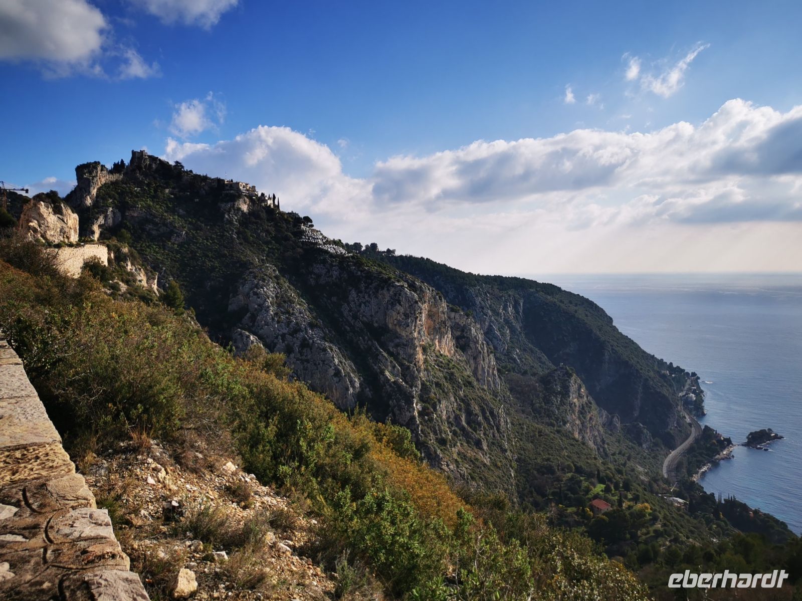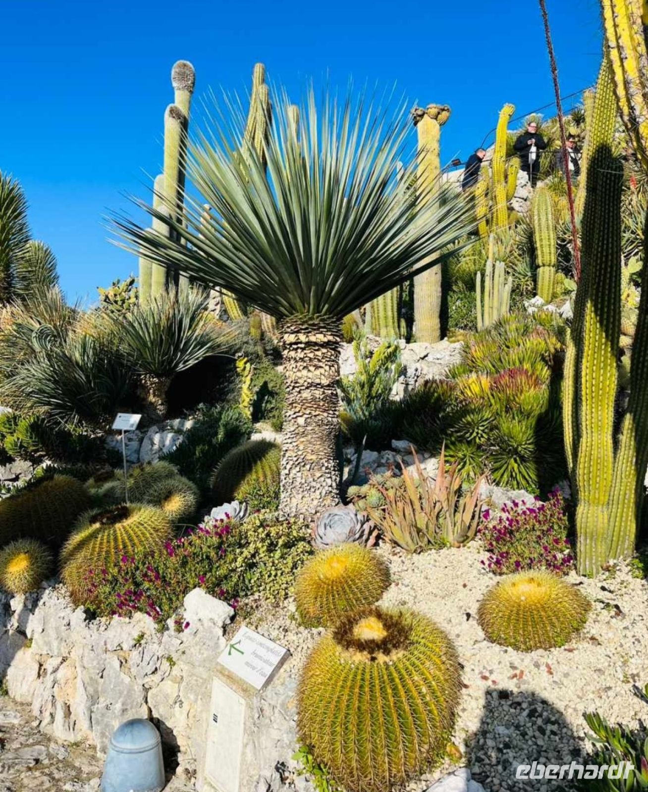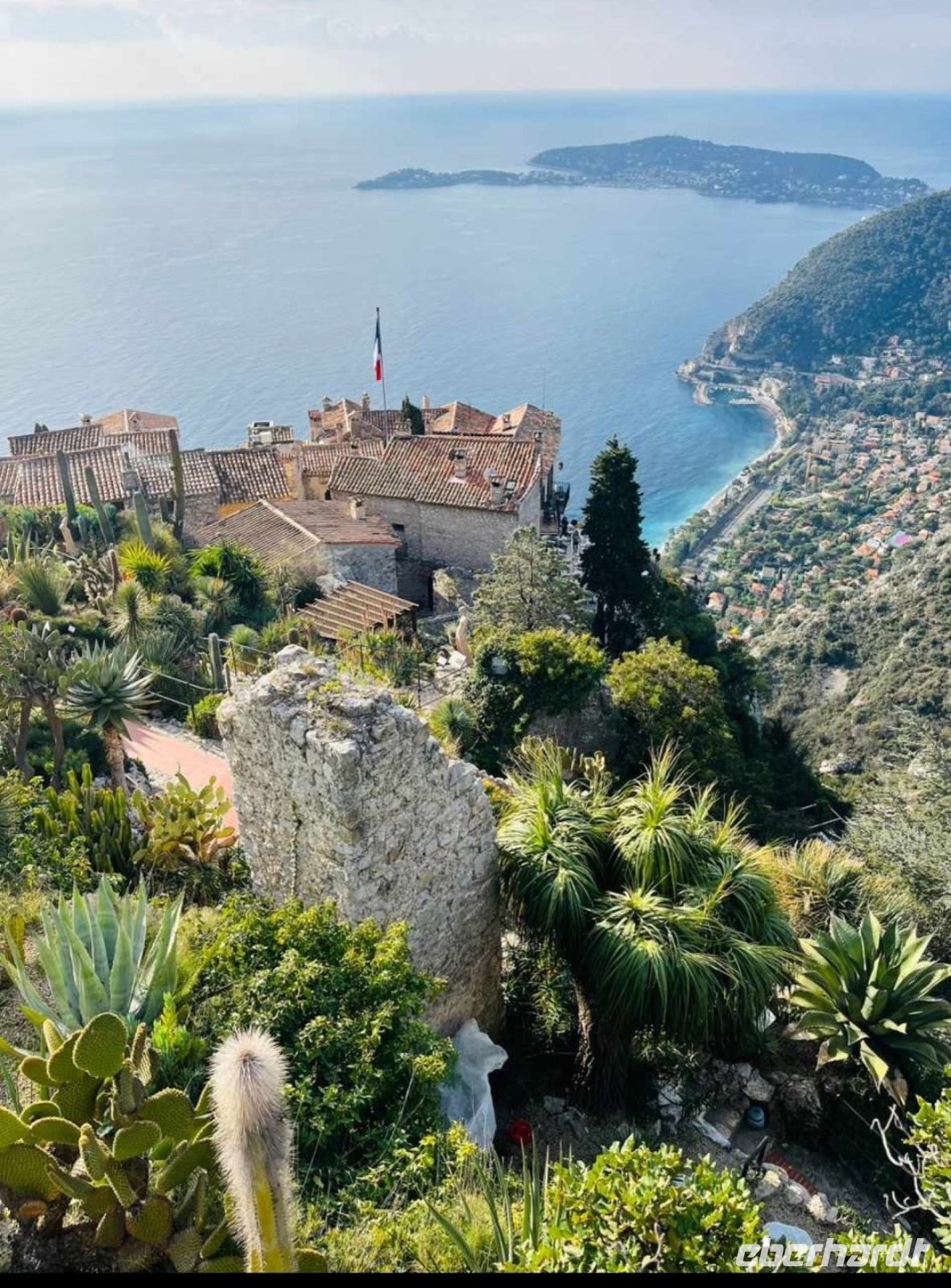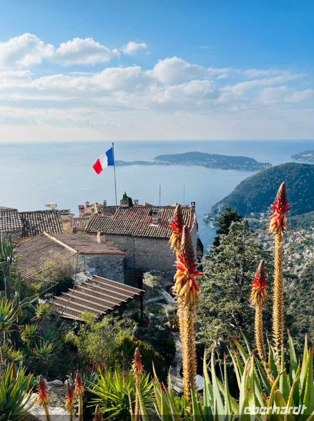 Heute war der große Tag, auf den wir uns schon so lange gefreut hatten. Heute stand das große Internationale Zirkusfestival in Monte-Carlo auf unserem Programm. Doch zuerst fuhren wir wieder in die Berge, ins Hinterland von Nizza. Die wunderschöne Küstenstraße führt uns hinauf in die hier bis zu 700 Meter hohen Seealpen. Bei unserem letzten Fotostopp sahen wir auch schon das malerisch auf einem Hügel liegende Bergdorf Èze, zu dessen Füßen sich die 1968 eingeweihte Laborfabrik der Parfümerie Fragonard befindet. Die ockergelbe Fabrik leuchtete in der Sonne, tief unter uns lag das silbrig glänzende Meer und hinter uns die kargen Berge. Unsere zweite Gruppe, die extra eine Stunde früher gestartet war, machte sich an den beschwerlichen steilen Aufstieg zum Kakteen- und Sukkulentengarten hoch über dem Dorf Èze und wurde von einer erstaunlichen Vegetation belohnt.
