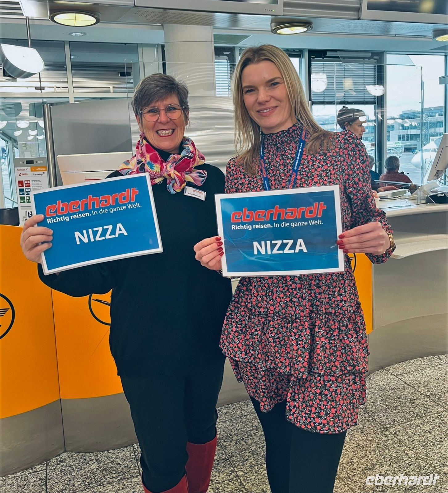 Gut gelaunt und voller Vorfreude auf die bevorstehende Reise, erwarteten die beiden Reiseleiterinnen Vicky Kern und Gabriele Sauer von Eberhardt Travel ihre Gäste am Flughafen in Frankfurt. Für manche unserer Reiseteilnehmer, die schon eine längere Anreise mit dem Auto, der Bahn oder einem Anschlussflug hatten, war es eine kurze Nacht und so verbrachten wir die Wartezeit am Gate ruhig und entspannt - glücklicherweise war erstaunlich wenig Betrieb am Metropol Flughafen Frankfurt. Pünktlich zur Mittagsstunde startete unser Flugzeug in den grauen Himmel über Frankfurt und knapp 100 Minuten später kletterten wir in Nizza bei herrlichem Sonnenschein aus dem Flieger.