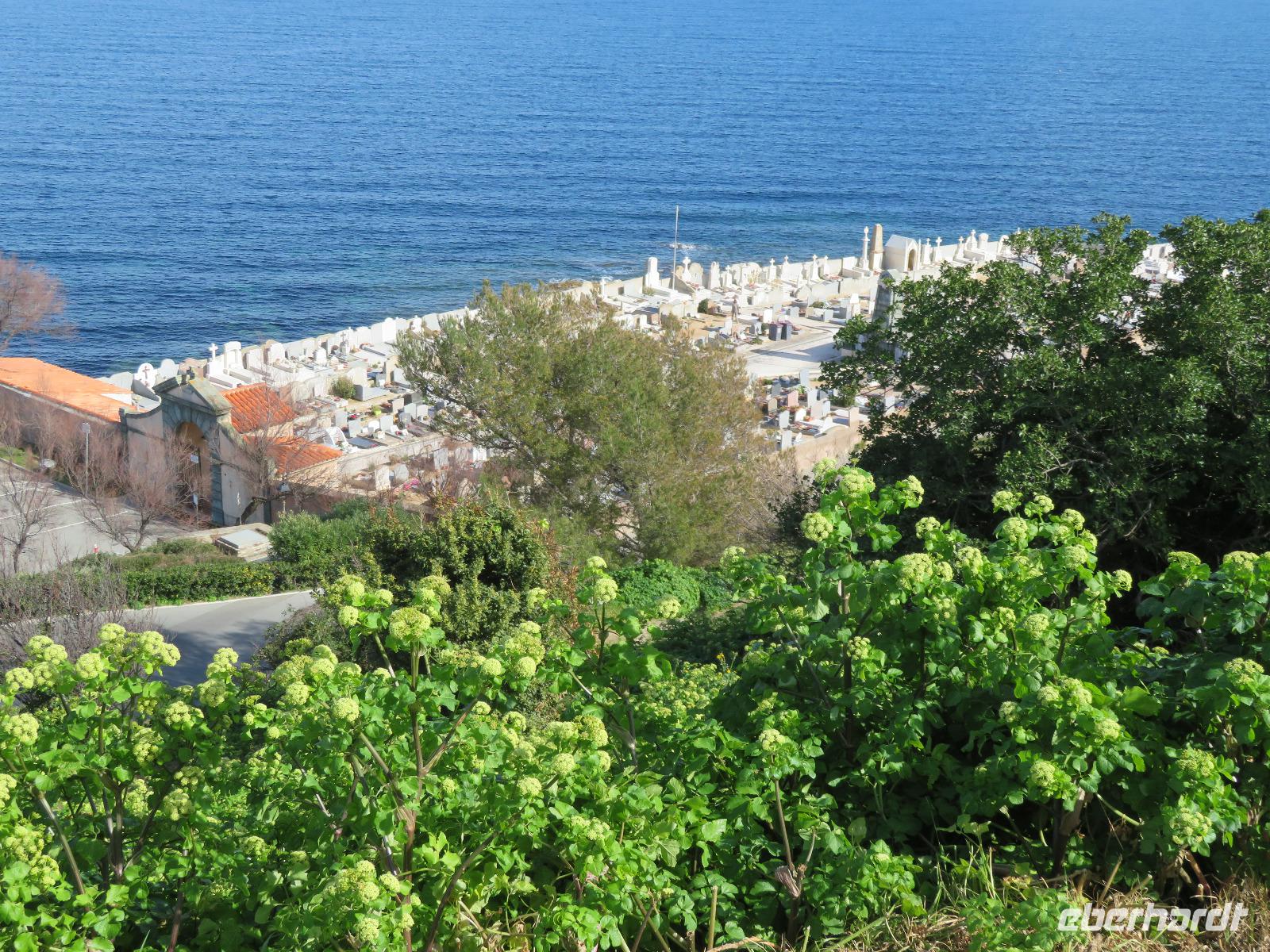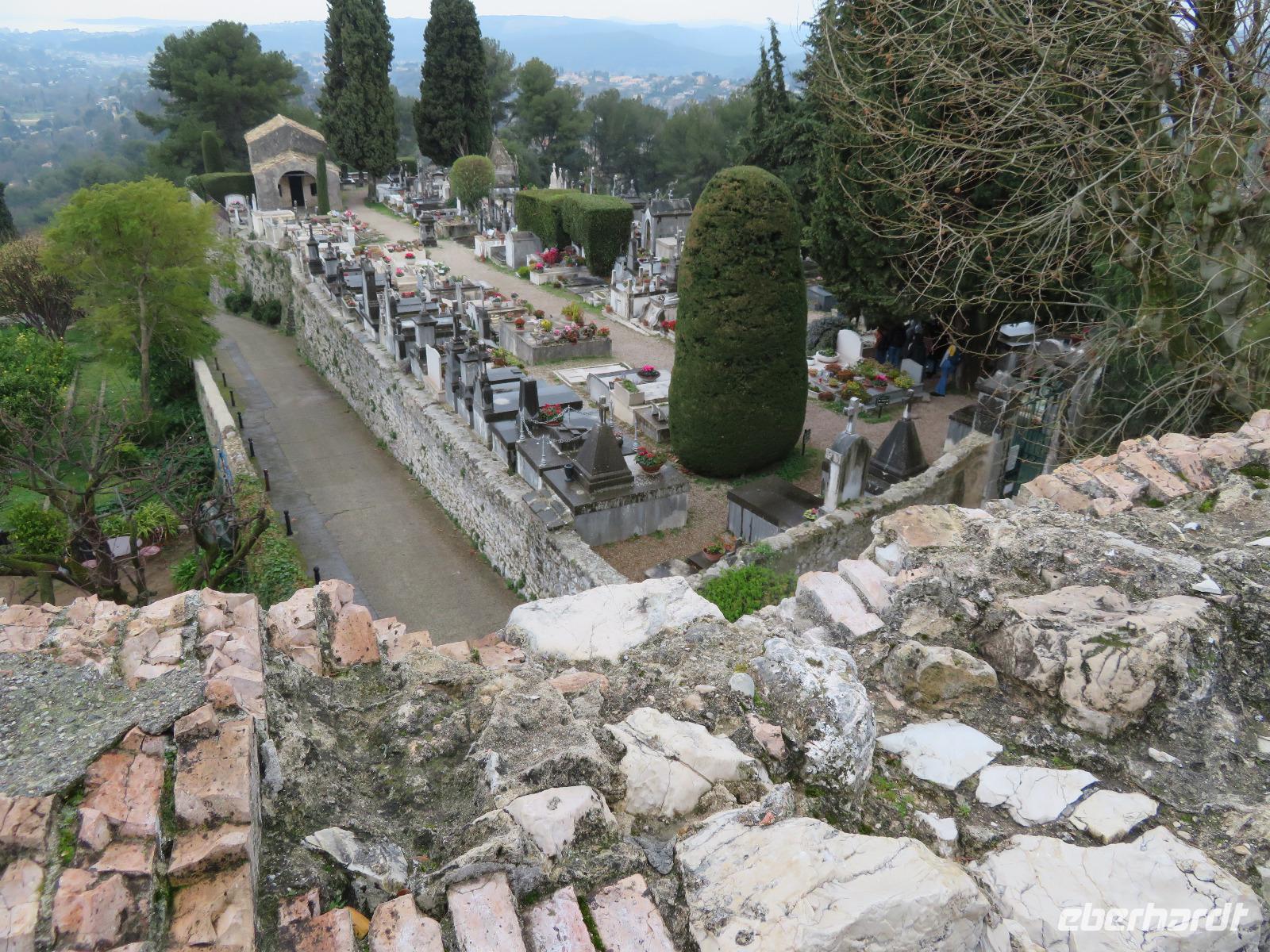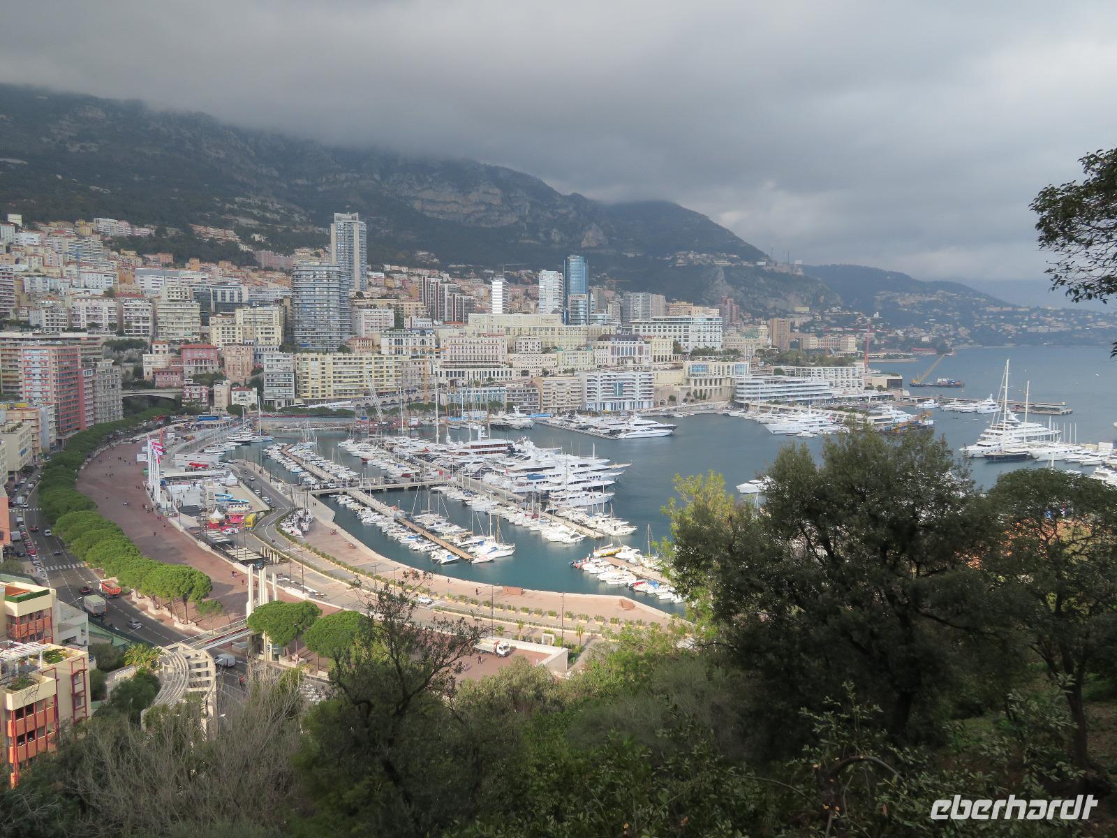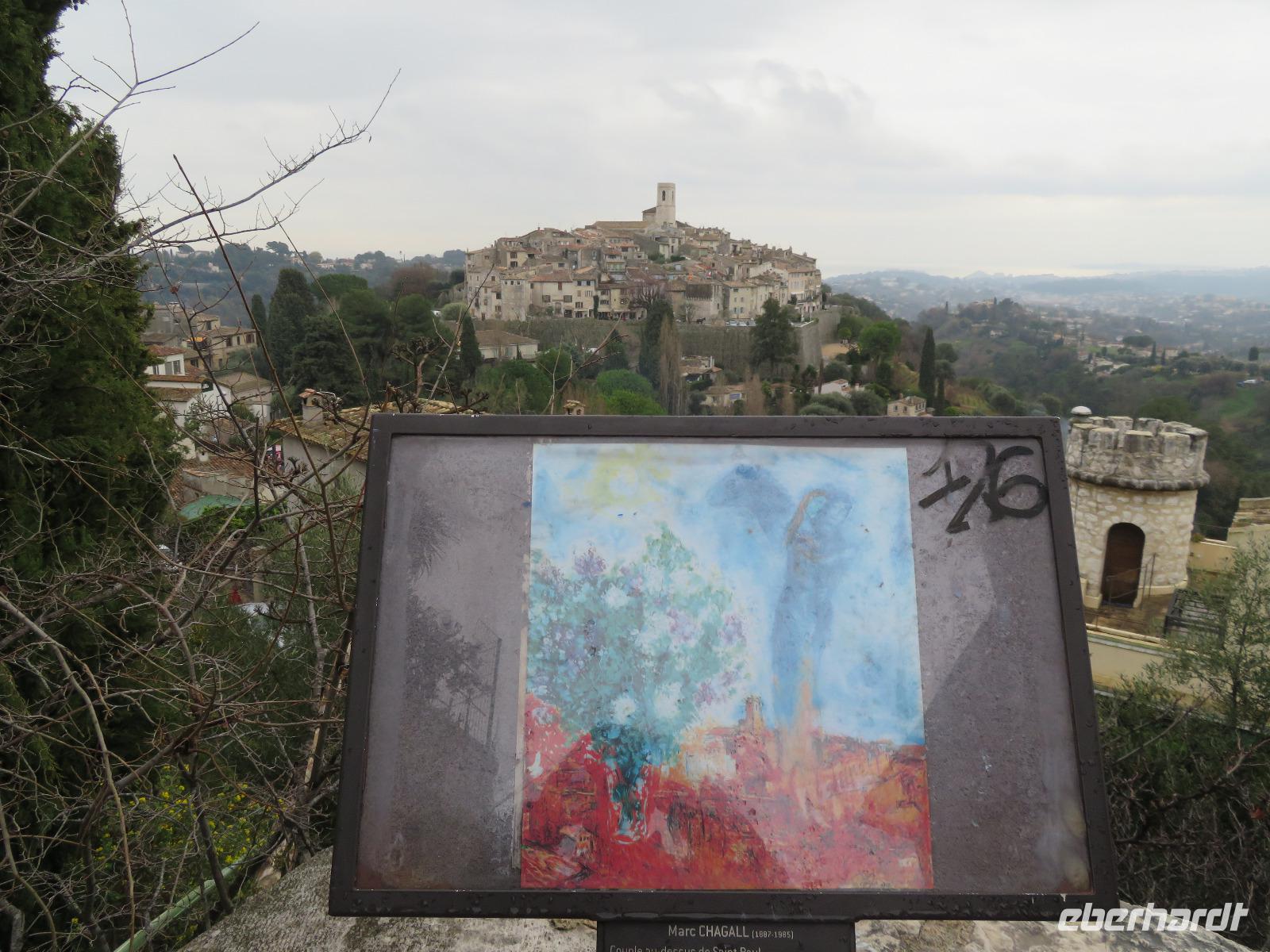 Für die Jahreszeit typisch benötigten wir nur vierzig Minuten mit dem Bus für die zwanzig Kilometer bis St. Paul. Die festungsartig umbaute Altstadt des Örtchens lag in leicht niesligem Wolkendunst. Enge Gassen durchziehen das Örtchen auf dem Hügel mit einer Kirche, deren romanischer Ursprung wohl im 13. Jahrhundert lag. Verkaufsaustellungen von Künstlern prägen das auf den Tourismus ausgerichtete Örtchen. Nach einem Bummel durch die Gassen erreichten wir das Grab von Marc Chagall unterhalb der Aussichtsbastion: Zeit für einen Blick auf ein bewegtes Leben, des in Witebsk geborenen Künstlers. Wer einen fünfzehnminütigen Weg an drei kleinen Kapellen und den folgenden Aufstieg nicht scheut, sollte zur Fondation Maeght aufsteigen, einem 1964 eingeweihten Museum der zeitgenössischen Kunst der zweiten Hälfte des 20. Jahrhunderts in Gebäuden der architektonischen Nachkriegsmoderne mit Bauhaus-Brasilia-Flair. Neben den Klassikern der Museumsgründerzeit - u.a. Miro und Chagall - war in diesem Jahr eine Sonderausstellung mit Werken des israelischen Malers Levy zu sehen. Die meisten Gästen blieben jedoch im kleinen Örtchen. Am Nachmittag dann: die Plattenbausiedlung für Multimillionäre - Fürstentum Monaco. Ja natürlich, ein wenig Altstadtgassen, Fürstenpalast, Jachthafen, neoromanische Kathedrale, Blick auf Häusermeer und die Formel 1- Strecke. Diese fuhren wir dann auch mit dem Bus in angemessener Geschwindigkeit Richtung Monte Carlo. Dort ein kleiner Aufstieg zum Casino - bauliches Gardemaß der Belle Epoque. Die wenige Sonne des Nachmittags hatte uns längst verlassen und mitunter heftiger Wind wehte, als wir die mittlere Corniche-Straße nach Nizza zurückfuhren.