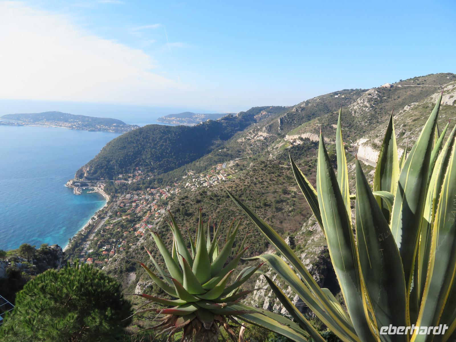 Von der Corniche-Straße zwischen Nizza und Menton in mittlerer Höhe hatten wir prächtige Ausblicke auf die Hügelhänge im Norden und das Mittelmeer. Oberhalb von Villefranche und dem Cap machten wir einen Fotostopp. Überpünktlich fanden wir uns bei Fragonard in Eze ein. Bei einer kurzen Führung in deutscher Sprache erfuhren wir mehr über die mannigfaltigen Pflanzen, die zu Essenzen für Kosmetika verarbeitet werden, deren Anteil an den handelsüblichen Erzeugnissen und machten selbst Geruchsproben, um die Pflanzen zu bestimmen, was vielleicht hälftig gelang. Danach nochmals Duftproben und die Animierung zu Kaufentscheidungen. Am späten Vormittag stiegen wir - an einer strahlend gelben Mimosenblüte vorbei - nach Eze Village und weiter hinauf zum Burgfelsen. Durch schmale Gässchen erreichten wir den Garten mit exotischen Pflanzen - und hier nicht hineinzugehen, wäre wohl doch ein Verlust gewesen: Sukkulentenpracht am felsigen Hang mit Blick auf das azurblaue Meer unter uns. Von Eze ging es mit dem Bus die Küstenstraße weiter Richtung Menton, dem letzten / ersten französischen Ort vor der Grenze zu Italien. In Menton angekommen, hatten wir doch einen Kilometer zu laufen, um an den Eingang des Festgeländes an der Tourismusinformation zu gelangen. Das Hauptziel unseres Besuches in Menton war erreicht: das Zitronenfest. Neben Umzügen ist es bekannt für eine Vielzahl von Figuren, die auf Drahtgeflechten mit Zitronen und Orangen gestaltet werden Es sind wohl eintausend Tonnen Früchte die dabei verarbeitet werden. Die Thematik diesen Jahres war „Die Feste der Welt", folglich ganz viele Darstellungen von Figuren, die bedeutende Feste in den Ländern der Erde symboliiseren; darrunter natürlich auch das Oktoberfest. Bei warmen und sonnigem Wetter hatte jeder dann noch ausreichend Zeit individuell durch die Altstadt zu bummeln oder am Meer zu sitzen. Rechtzeitig zum Abendessen waren wir - jetzt über die A8 fahrend - wieder in Nizza.