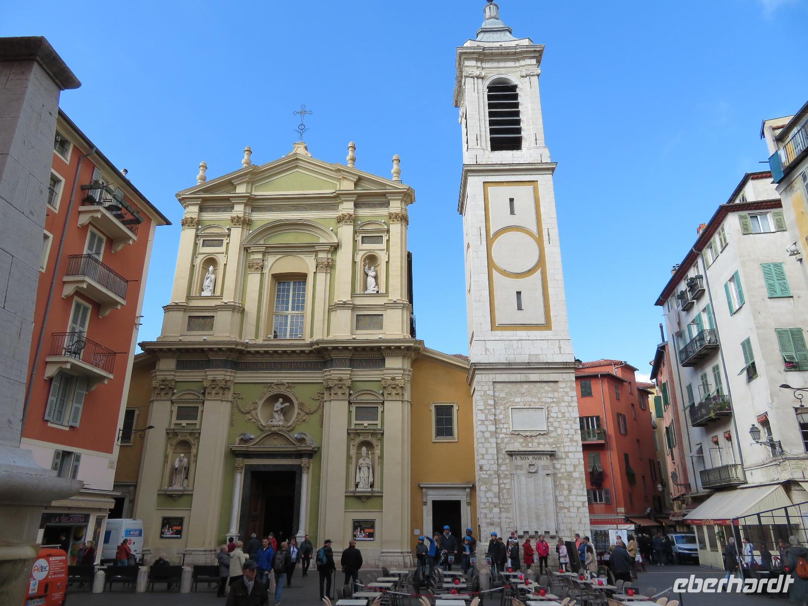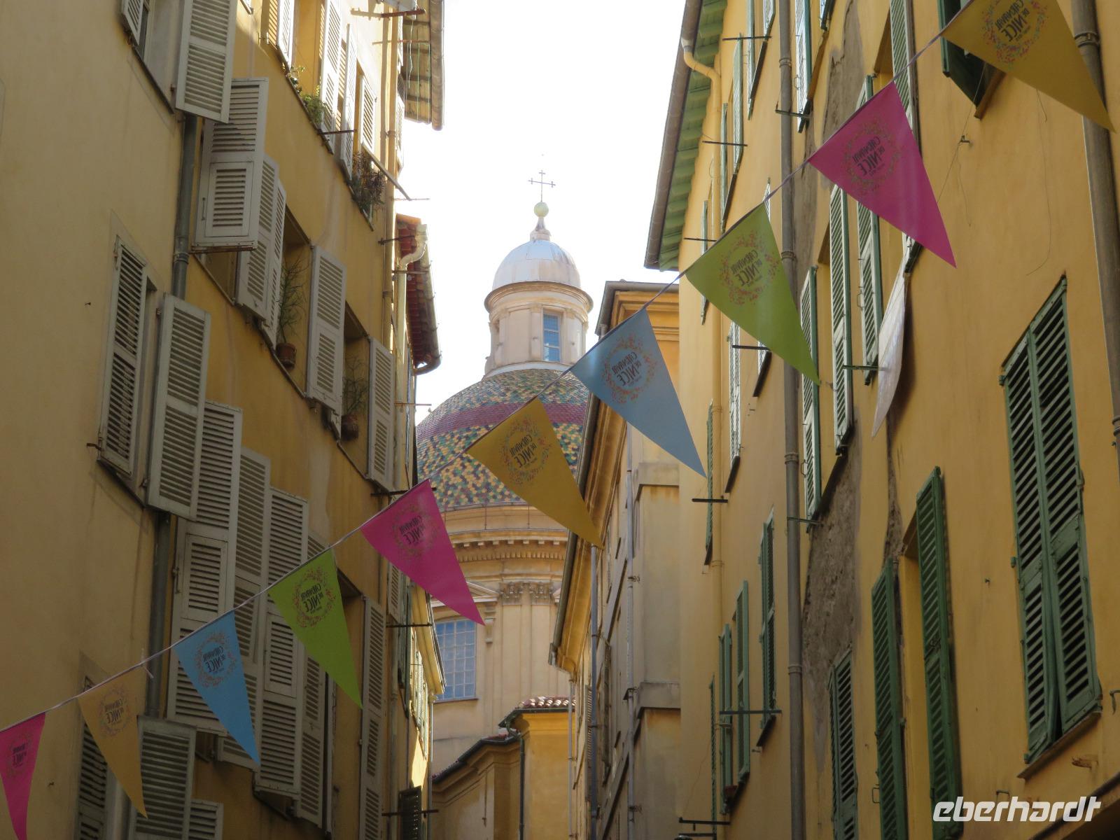 Die Stadtbesichtigung in Nizza führte uns zunächst mit dem Bus in den Stadtteil Cimiez. Bereits die Römer hatten hier eine Stadtanlage mit Amphitheater errichtet. In der Belle Epoque wurden große Hotels errichtet, um Adligen und Großindustriellen aus ganz Europa einen Sonnenplatz am Hang über Nizza zu gewähren. Henry Matisse und Marc Chagall lebten hier und hinterließen Werke, die in den ihnen gewidmeten Museen gezeigt werden. Wir bummelten durch die römische Arena und den Park voller Olivenbäume am Matisse-Museum und dem ehemaligen Franziskanerkloster. Die Museumsbesuche bei Matisse oder Chagall sind eher etwas für Spätflieger am letzten Reisetag. Unser örtlicher Reiseleiter Richard führte uns dann in die Altstadt von Nizza mit engen Gassen zwischen Bauten aus dem 15. Jahrhundert und einigen barocken Kirchen - deutliches architektonisches Zeichen dafür, dass Nizza eine lange italienische Periode hinter sich hat.