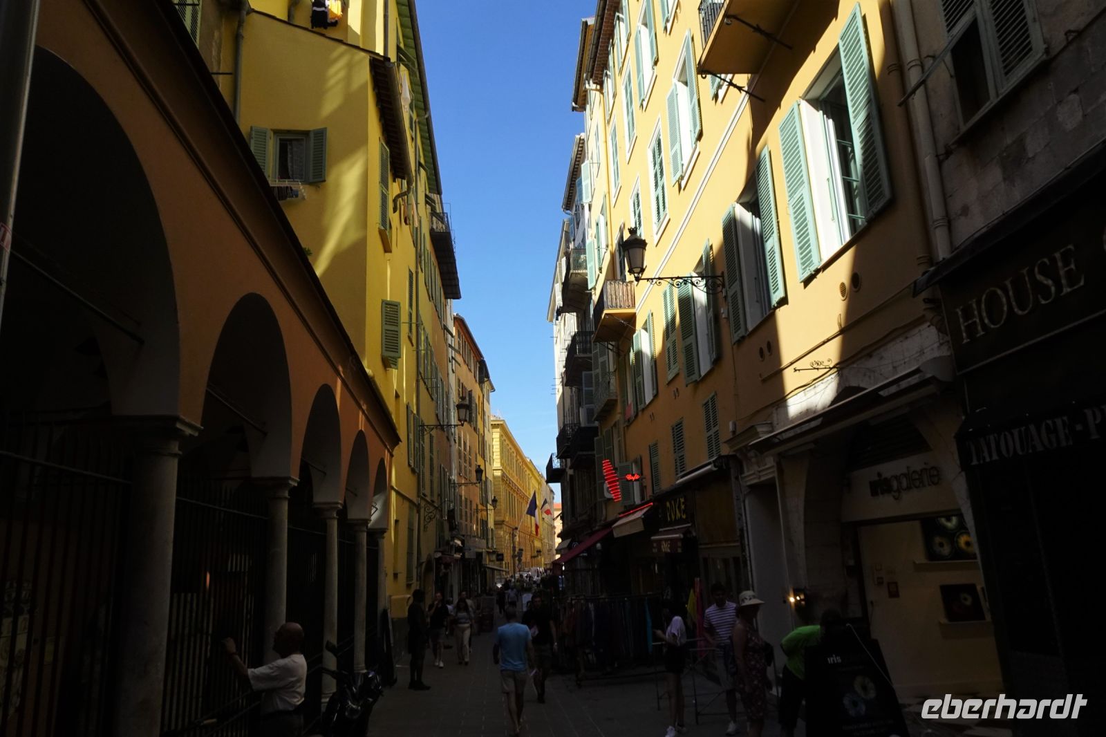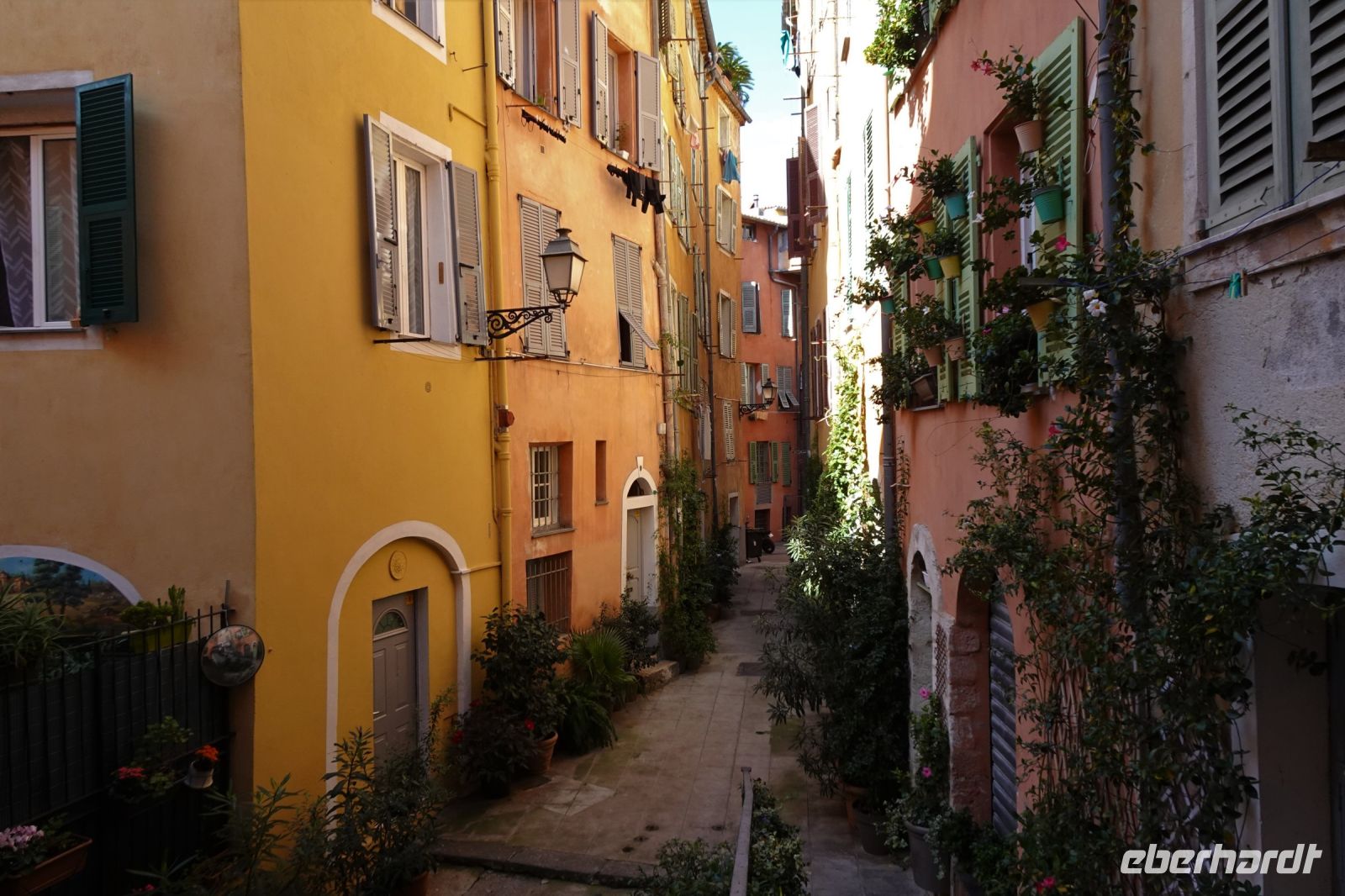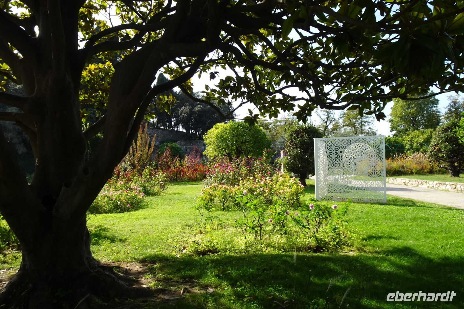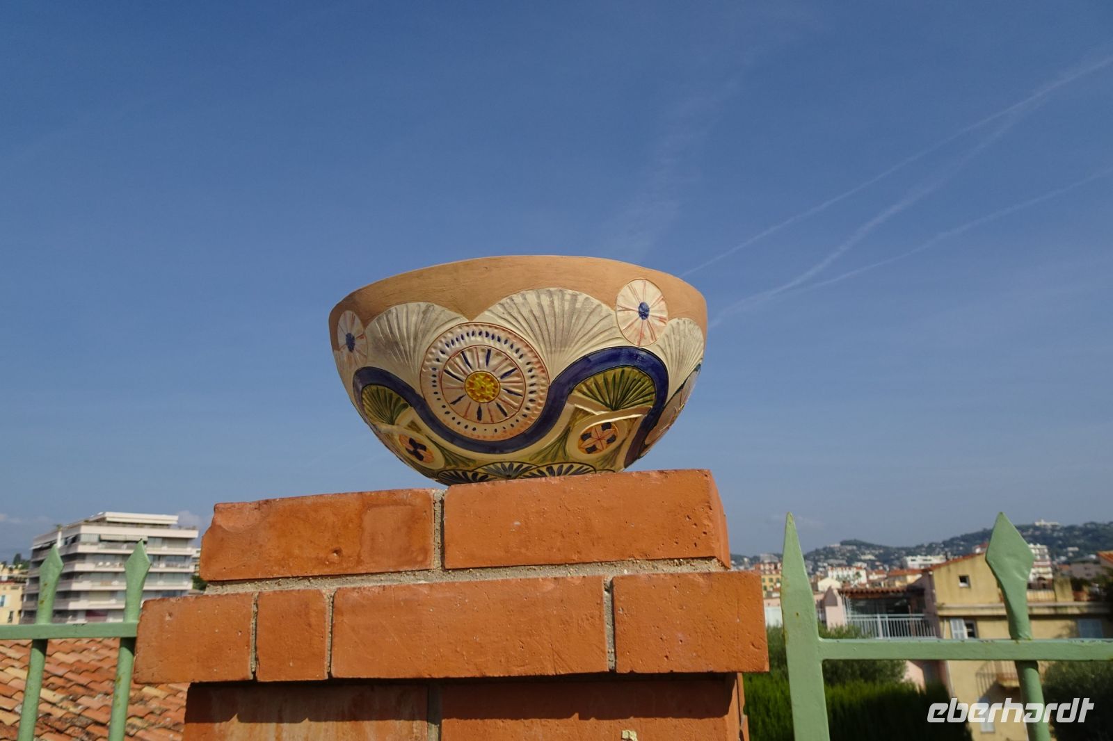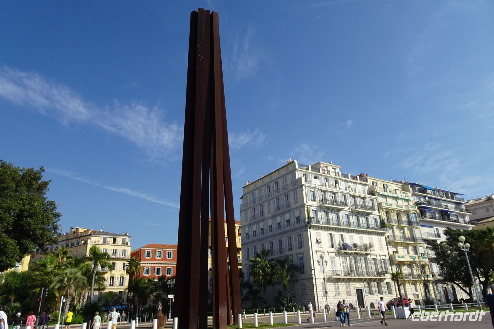 Bei strahlendem Sonnenschein und nach einem leckeren vielfältigen Frühstück mit knusprigem Baguette, verführerisch duftenden Croissants, Schinken, Käse, frischem Obstsalat sowie leckeren Marmeladen machten wir uns mit unserer Gästeführerin Marie-Pierre auf, um die Stadt Nizza zu Fuß zu erkunden. Unser erster Weg führte uns natürlich an das azurblaue Meer. Gemütlich bummelten wir entlang der legendären Promenade des Anglais zum Hotel Negresco, das uns einen neugierigen Blick ins Innere gestattete. Vor dem renommierten 1912 eröffneten Luxushotel der Belle Époque stehen heute wie vor 100 Jahren die dienstbaren Helfer im Livrée bereit, die Wünsche ihrer exquisiten Kundschaft zu erfüllen. Tradition verpflichtet! Berühmtheiten aus Adel, Wirtschaft, Showbiz, und Jetset - Stars und Sternchen gaben und geben sich in diesem stilvoll dekadenten Ambiente die Klinke in die Hand. Überall stehen die überdimensionalen Kunstwerke von Richard Orlinski. Ein riesiger roter Gorilla begrüßte uns schon am Flughafen, ein blaues Pferd befindet sich vor der Kirche, ein schneeweißer Eisbär sitzt an der Promenade und immer wieder begegnet man dem Gorilla in leuchtenden Primärfarben. Überhaupt ist Nizza eine Stadt voller kleiner und großer Kunstwerke. Miles Davis, eine Skulptur von Niki de Saint Phalle, die gigantische Stahlskulptur von Bernard Venet, der blaue Stuhl von Sabine Géraudie, und nicht zuletzt die Freiheitsstatue machen aus der Promenade ein veritables Freilichtmuseum au bord de la mer. Reichlich ein Stündchen später erreichten wir die pittoreske Innenstadt von Nizza. Die Straßenschilder sind in französischer und provenzalischer Sprache geschrieben. Die Häuser sind bunt bemalt und in den engen Gassen herrscht reges Treiben. Die Plätze mit ihren Arkaden sowie die barocken Kirchen erinnern an oberitalienische Städte. Wir bewunderten den bunten Markt mit seinem frischen Angebot an Gemüse und Südfrüchten, Gewürzen und duftenden Lavendelprodukten. Pünktlich um 12:00 Uhr Mittag erschallte ein Kanonenschlag von der Kirche Sainte Rita, der auch für uns die nahe Mittagspause ankündigte. Die vielen kleinen Restaurants lockten uns mit ihren verführerischen Düften. Wenige Schritte waren es bis zum Meer, das mit seiner tiefblauen Farbe den Namen der Küste alle Ehre machte. Wer noch Lust zu laufen hatte, stieg hinauf auf den Schlossberg, vorbei am jüdischen Friedhof bis zum Wasserfall, um von oben die herrliche Aussicht über die gesamte Baie des Anges, die Engelsbucht, und die Dächer von Nizza zu genießen. Am Nachmittag fuhren wir mit dem städtischen Bus auf den Mont gros hinauf, in den mondänen Ortsteil Cimiez. Hier liegen die erstaunlich gut erhaltenen Überreste der römischen Siedlung Cemelenum, der Hauptstadt der einstigen römischen Provinz Alpes Maritimae. Gleich daneben steht das legendäre Grandhotel Excelsior Regina, das, später zu luxuriösen Wohnungen umgewandelt, einst gekrönte Häupter, wie die britische Königin Victoria, Sissi, die Kaiserin Elisabeth von Österreich und Eugénie, die letzte Monarchin Frankreichs, beherbergte. Gemütlich bummelten wir durch die herrliche Parkanlage in der eifrig Petanque gespielt wurde. Das Klacken der Boule (Kugeln) zwischen den knorrigen Olivenbäumen begleitete unseren Spaziergang zum Franziskanerkloster Cimiez. Im Klostergarten blühten zwischen Orangenbäumen und Glanzmagnolien noch Wandelröschen, üppige Teerosen, großblütige Thunbergien und Klettertrompeten. Für unsere Rückfahrt mit dem öffentlichen Nahverkehr stärkten wir uns an einem Ständchen mit Kaffee und frischen Getränken. Zurück im Hotel blieb uns noch etwas Zeit, bevor wir uns wieder aufmachten, um zum Abendessen ins Restaurant Gaglio am Rande der Altstadt zu gehen. Und wieder ließen wir uns die typischen Spezialitäten der Region und den köstlichen Wein des Südens der Provence schmecken. Auf dem Rückweg bewunderten wir die große Apollostatue auf der Place Masséna und die hoch über dem Platz sitzenden leuchtenden Statuen des spanischen Künstlers Jaume Plensa, die ganz in sich versunken einen inneren Monolog zu führen scheinen.