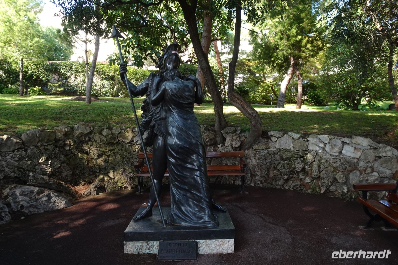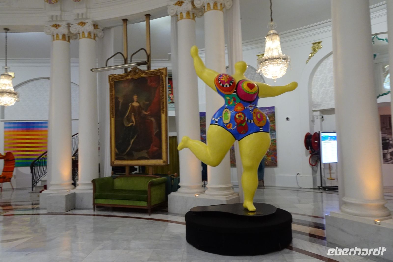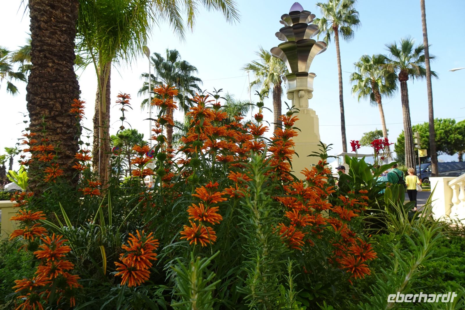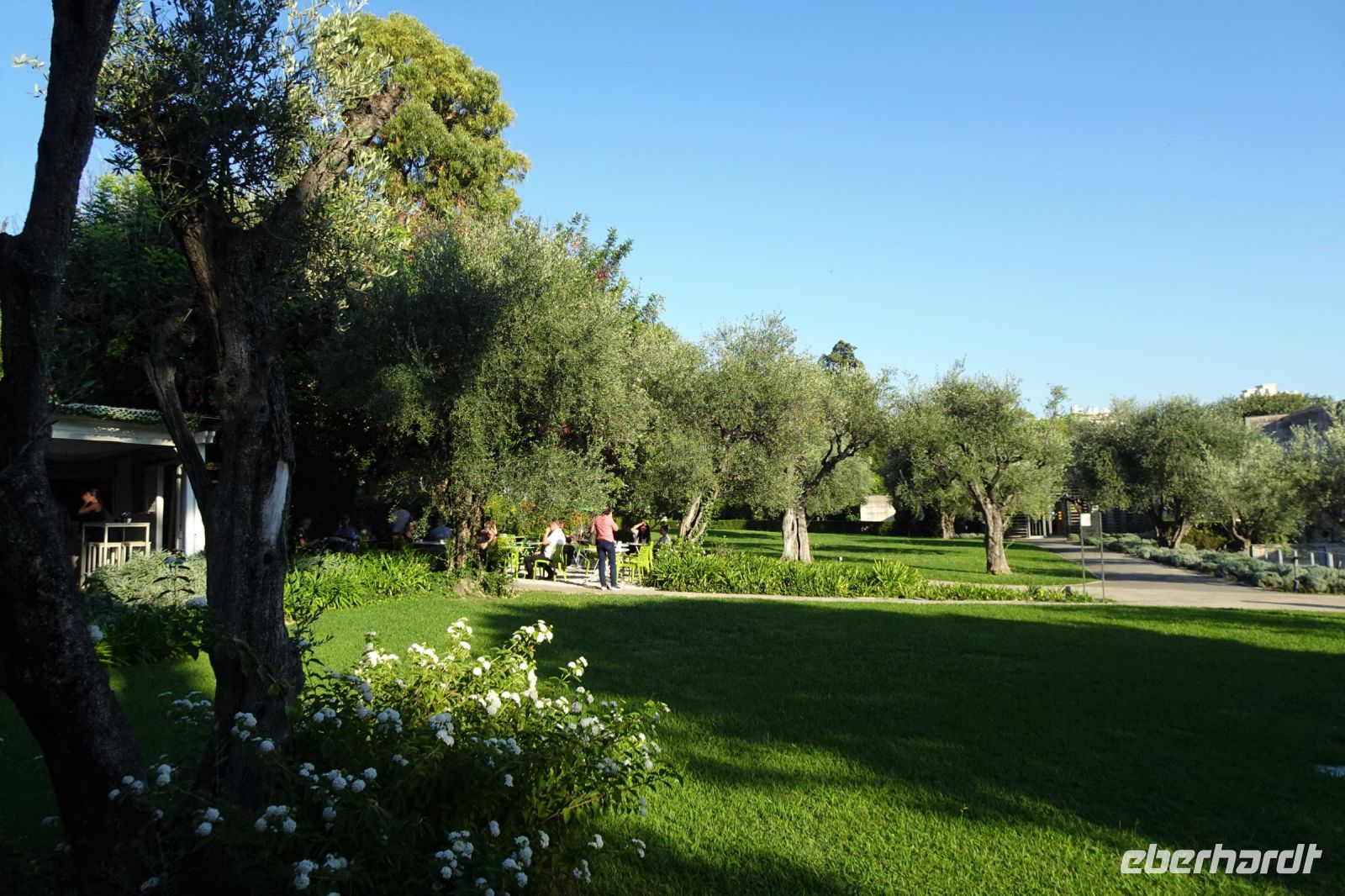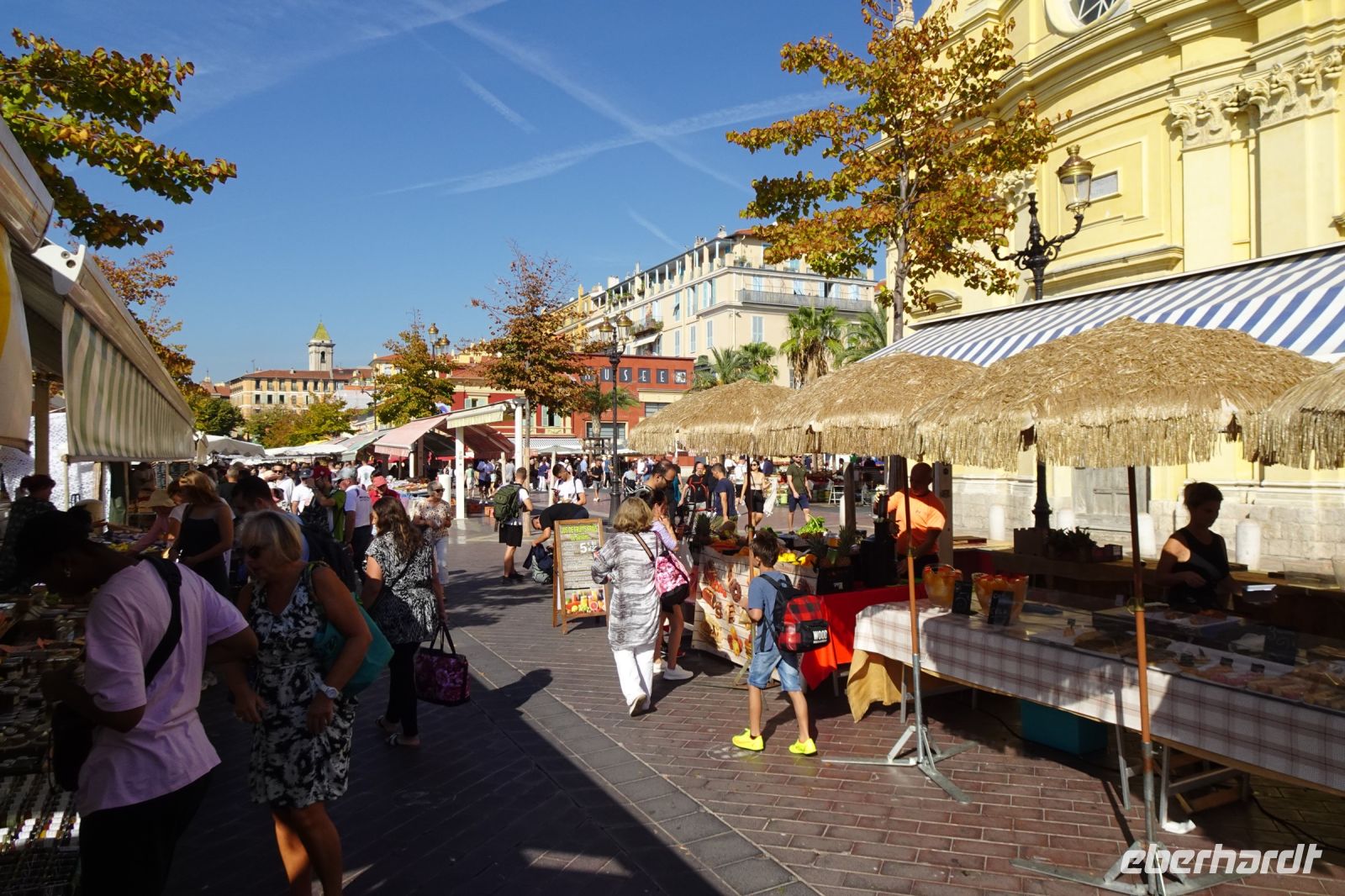 Bei strahlendem Sonnenschein und nach einem leckeren vielfältigen Frühstück mit knusprigem Baguette, verführerisch duftenden Croissants, Schinken, Käse, frischem Obstsalat sowie leckeren Marmeladen machten wir uns mit unserer Gästeführerin Marie-Pierre auf, um die Stadt Nizza zu Fuß zu erkunden. Unser erster Weg führte uns natürlich an das azurblaue Meer. Gemütlich bummelten wir entlang der legendären Promenade des Anglais zum Hotel Negresco, das uns einen neugierigen Blick ins Innere gestattete. Vor dem renommierten 1912 eröffneten Luxushotel der Belle Époque stehen heute wie vor 100 Jahren die dienstbaren Helfer im Livrée bereit, die Wünsche ihrer exquisiten Kundschaft zu erfüllen. Tradition verpflichtet! Berühmtheiten aus Adel, Wirtschaft, Showbiz, und Jetset - Stars und Sternchen gaben und geben sich in diesem stilvoll dekadenten Ambiente die Klinke in die Hand. Überall stehen die überdimensionalen Kunstwerke von Richard Orlinski. Ein riesiger roter Gorilla begrüßte uns schon am Flughafen, ein blaues Pferd befindet sich vor der Kirche, ein schneeweißer Eisbär sitzt an der Promenade und immer wieder begegnet man dem Gorilla in leuchtenden Primärfarben. Überhaupt ist Nizza eine Stadt voller kleiner und großer Kunstwerke. Miles Davis, eine Skulptur von Niki de Saint Phalle, die gigantische Stahlskulptur von Bernard Venet, der blaue Stuhl von Sabine Géraudie, und nicht zuletzt die Freiheitsstatue machen aus der Promenade ein veritables Freilichtmuseum au bord de la mer. Reichlich ein Stündchen später erreichten wir die pittoreske Innenstadt von Nizza. Die Straßenschilder sind in französischer und provenzalischer Sprache geschrieben. Die Häuser sind bunt bemalt und in den engen Gassen herrscht reges Treiben. Die Plätze mit ihren Arkaden sowie die barocken Kirchen erinnern an oberitalienische Städte. Wir bewunderten den bunten Markt mit seinem frischen Angebot an Gemüse und Südfrüchten, Gewürzen und duftenden Lavendelprodukten. Pünktlich um 12:00 Uhr Mittag erschallte ein Kanonenschlag von der Kirche Sainte Rita, der auch für uns die nahe Mittagspause ankündigte. Die vielen kleinen Restaurants lockten uns mit ihren verführerischen Düften. Wenige Schritte waren es bis zum Meer, das mit seiner tiefblauen Farbe den Namen der Küste alle Ehre machte. Wer noch Lust zu laufen hatte, stieg hinauf auf den Schlossberg, vorbei am jüdischen Friedhof bis zum Wasserfall, um von oben die herrliche Aussicht über die gesamte Baie des Anges, die Engelsbucht, und die Dächer von Nizza zu genießen. Am Nachmittag fuhren wir mit dem städtischen Bus auf den Mont gros hinauf, in den mondänen Ortsteil Cimiez. Hier liegen die erstaunlich gut erhaltenen Überreste der römischen Siedlung Cemelenum, der Hauptstadt der einstigen römischen Provinz Alpes Maritimae. Gleich daneben steht das legendäre Grandhotel Excelsior Regina, das, später zu luxuriösen Wohnungen umgewandelt, einst gekrönte Häupter, wie die britische Königin Victoria, Sissi, die Kaiserin Elisabeth von Österreich und Eugénie, die letzte Monarchin Frankreichs, beherbergte. Gemütlich bummelten wir durch die herrliche Parkanlage in der eifrig Petanque gespielt wurde. Das Klacken der Boule (Kugeln) zwischen den knorrigen Olivenbäumen begleitete unseren Spaziergang zum Franziskanerkloster Cimiez. Im Klostergarten blühten zwischen Orangenbäumen und Glanzmagnolien noch Wandelröschen, üppige Teerosen, großblütige Thunbergien und Klettertrompeten. Für unsere Rückfahrt mit dem öffentlichen Nahverkehr stärkten wir uns an einem Ständchen mit Kaffee und frischen Getränken. Zurück im Hotel blieb uns noch etwas Zeit, bevor wir uns wieder aufmachten, um zum Abendessen ins Restaurant Gaglio am Rande der Altstadt zu gehen. Und wieder ließen wir uns die typischen Spezialitäten der Region und den köstlichen Wein des Südens der Provence schmecken. Auf dem Rückweg bewunderten wir die große Apollostatue auf der Place Masséna und die hoch über dem Platz sitzenden leuchtenden Statuen des spanischen Künstlers Jaume Plensa, die ganz in sich versunken einen inneren Monolog zu führen scheinen.