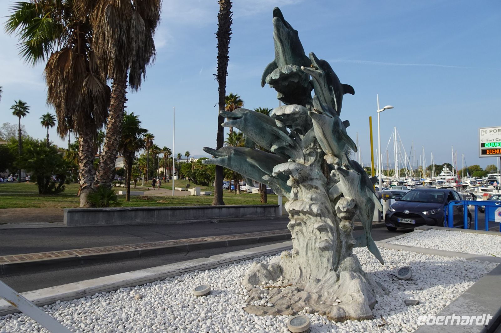 Wieder stand die Sonne am blauen Himmel, als wir uns zu unserem Ausflug ins gut 110 Kilometer entfernte St. Tropez aufmachten. Unser Chauffeur Jean-Pascal wählte die Straße durch das waldreiche Hinterland, und so fuhren wir durch die Ausläufer des Esterelgebirges und vorbei an Fréjus, der Stadt, die ihren Namen von Gaius Julius Caesar höchst persönlich erhalten hat: aus Forum Julii wurde mit der Zeit Fréjus. Bei einem Zwischenstopp am Meer, das in der Morgensonne glitzerte, verspürten wir, warum es (nicht nur!) die impressionistischen Maler immer wieder hierher gezogen hat. Knapp zwei Stunden später erreichten wir St. Maxime in der Bucht von St. Tropez. Mit der Fähre setzten wir nach St. Tropez über, das wir eine knappe Stunde später erreichten. Auf dem Meer herrschte reges Treiben Vom 29. September bis zum 08. Oktober 2023 fanden die Segelregatten von St. Tropez, die St. Tropez Voiles, mit fast 250 klassischen und modernen Segelbooten sowie Maxi Yachten statt. Die Segel knatterten im Wind und ein Hornist begleitete die Ausfahrt seiner Mannschaft aus dem Hafen mit einer Siegeshymne. Die Fähre schlängelte sich durch die an der Regatta teilnehmenden Segelschiffe und die vor St. Tropez ankernden Riesenyachten. Sogar das größte Segelschiff, der Fünfmaster `Royal Clipper´, lag vor der Küste vor Anker. Die verwinkelten Gassen des ehemaligen Fischerdorfes laden zum Bummeln ein, ein kleiner Fischmarkt mit buntem Meeresgetier und ein Weinhändler locken mit ihrem Angebot. Ein paar Schritte weiter sitzt ein einsamer Kanarienvogel in seinem Käfig vor einem Klamottenladen. Die Sonne erreicht kaum den Boden der engen Gassen, doch immer wieder hat man herrliche Ausblicke auf das Meer. Ein kleiner Stadtbummel führte uns bis zum großen bunten Jahrmarkt an der Place des Lices, an dem auch das berühmte Café des Arts liegt. Dort fand 1971 die legendäre Hochzeitsfeier von Mick und Bianca Jagger statt. Doch unser Weg führte uns zurück in den Hafen, der heute ganz in der Hand der Segler war. Ob im Restaurant Sénéquier oder einem anderen der noblen Gaststätten am Quai, an einem Marktstand zum Austern schlürfen oder beim Shopping in den Nobelboutiquen, jeder fand in der Mittagspause seinen Platz. Am frühen Nachmittag trafen wir uns wieder und spazierten zu der allseits bekannten Gendarmerie National, in der Louis de Funès, der Gendarm von St. Tropez, sein strenges Regiment führte. Seine Filme werden uns immer unvergessen bleiben! Ein kleines Museum hält die Erinnerung an diesen großen Schauspieler und an die Welt der sechziger Jahre an der Côte d´Azur wach. Auf dem Platz vor dem Gebäude war eine Bilderausstellung aufgebaut, die die Leinwandgrößen vergangener Zeiten ehrte. Mehr als siebzig Filme wurden in der Stadt gedreht, darunter auch der Film: „und Gott schuf die Frau“ mit Brigitte Bardot. Zu Ehren ihres dreiundachtzigsten Geburtstags wurde auf diesem Platz eine 700 Kilo schwere, zweieinhalb Meter hohe vergoldete Bronzeskulptur aufgestellt, die die junge Leinwandkünstlerin nackt in einer Muschel sitzend zeigt. Brigitte Bardot durfte im September ihren neunundachtzigsten Geburtstag feiern. Unser Busfahrer, der heute in St. Tropez keine Chance auf einen Parkplatz hatte, pickte uns an einer kleinen Seitenstraße auf und wir fuhren gemütlich entlang des Meeres durch die malerische Landschaft, vorbei an stillen Buchten, kleinen Stränden und streng bewachten herrschaftlichen Villenanlagen wieder zurück nach Nizza. Unterwegs entdeckten wir ein für uns passendes kleines Stückchen Strand für unseren Abschiedsumtrunk: auf den charakteristischen roten Felsen standen Gläser mit leckerem Orangenlikör aus Menton und Calissons, eine süße Spezialität der Region, bereit. Hinter uns breitete sich das mit weißen Segeln getupfte blaue Meer aus: Ein wunderschöner Ort, um sich von der Côte d´Azur zu verabschieden!