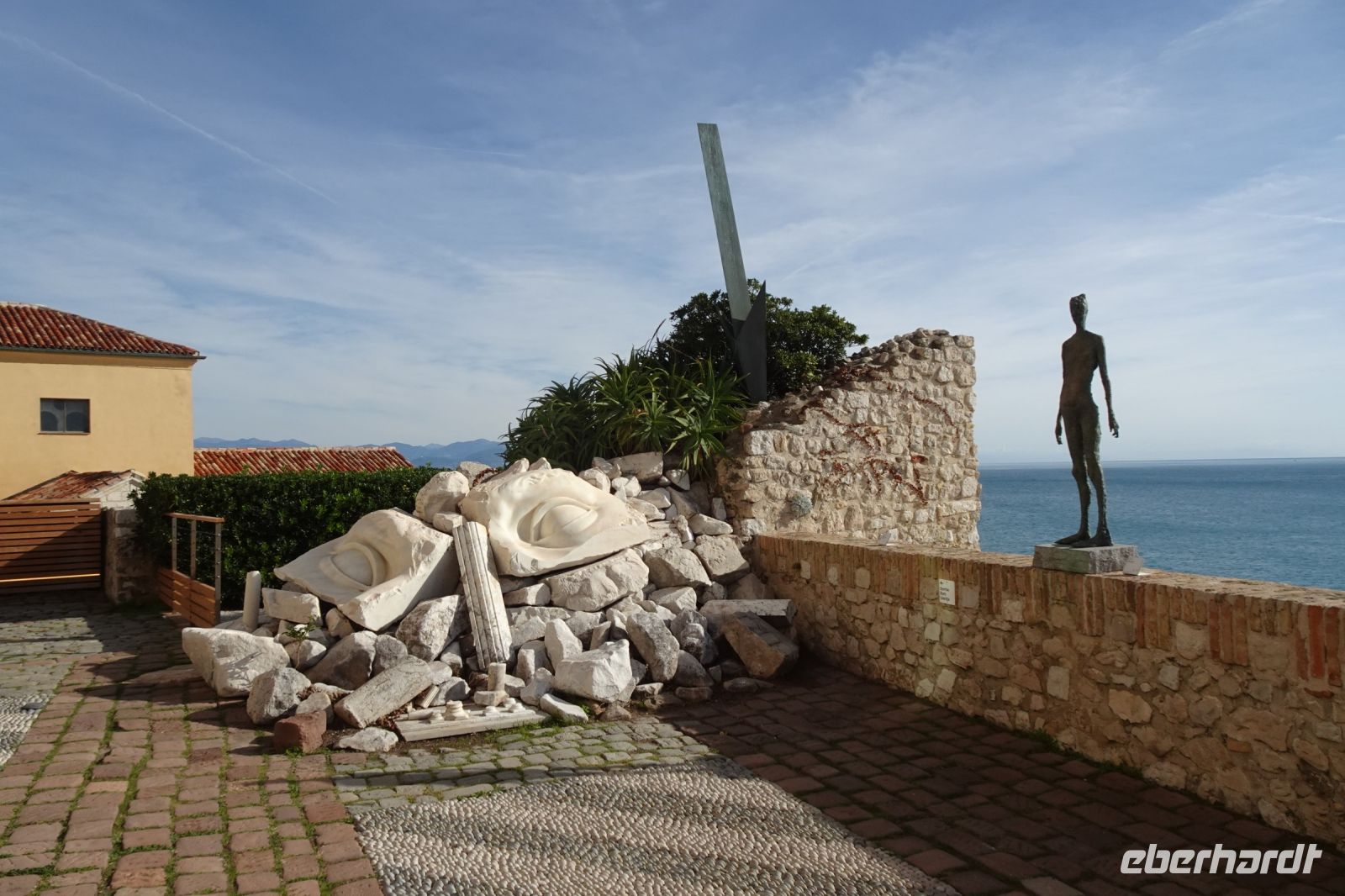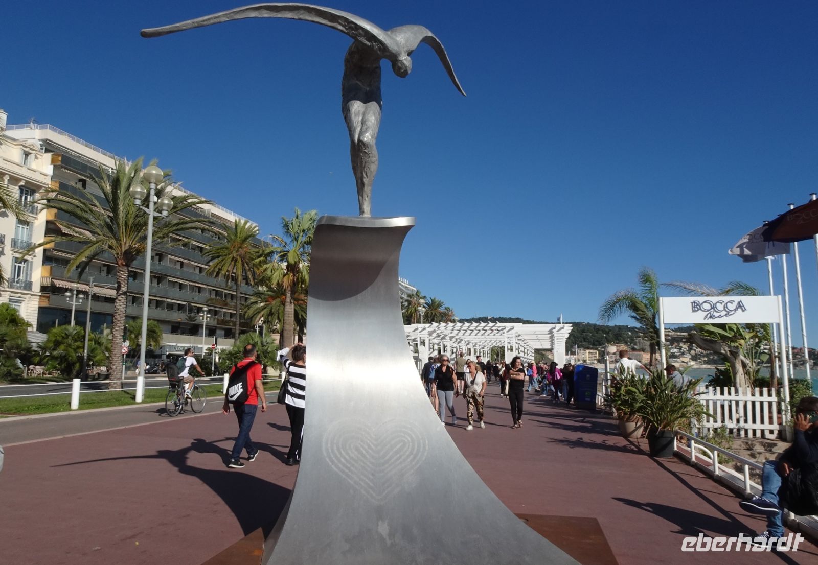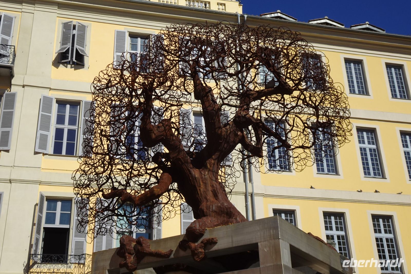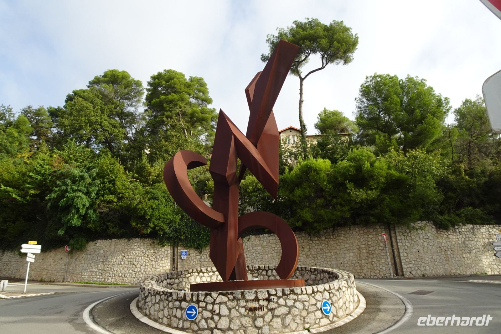 Heute stand der große Ausflugstag entlang der Küste von Antibes bis Cannes und auf dem Programm. Zuerst fuhren wir in das ca. 20 Kilometer entfernte ehemalige Fischerdorf Antibes. Von verträumter Seemannsidylle ist dort jedoch nichts mehr zu verspüren. Kein Mensch flickt hier noch mit rissigen Händen seine Fischernetze am Ufer. Im Hafenbecken von Antibes schaukeln riesige Motoryachten auf den Wellen. Überall wird gearbeitet, poliert, geputzt,und aufgehübscht, der Süden Frankreichs bereitet sich auf die bevorstehende Wintersaison vor. Gleich hinter der gewaltigen Stadtmauer geht es hinauf zum Château Grimaldi. In der trutzigen Burganlage aus dem zwölften Jahrhundert befindet sich heute ein Kunstmuseum mit Werken von Pablo Picasso und anderen zeitgenössischen Kunstschaffenden, wie Germaine Richier, Arman oder Mirò. Nach dem zweiten Weltkrieg hatte Picasso hier sein Atelier. Unterhalb der Burgmauer am Meer steht eine Stele von B. Pagès, La colonne à la mer, mit der der Künstler an den 200. Jahrestag der französischen Revolution erinnert. Zurück am Hafen spazierten wir über die Mole, um noch ein anderes modernes Kunstwerk zu betrachten: Le nomade von J.Plensa. Unsere anschließende Rundfahrt führte uns weiter nach Cannes, der Stadt an der Küste, die sich ganz den internationalen Filmfestspielen verschrieben hat. Als vor 200 Jahren Lord Brougham mit seiner Familie Cannes als heilklimatischen Wohnort auserkoren hatte, konnte noch niemand den unglaublichen Aufstieg des Dorfes erahnen. In der Belle Époque entstanden an der Croisette große Luxushotels, in deren Schatten heute sämtliche Mode- und Schmucklabel ihre edlen Boutiquen unterhalten. Das moderne Palais de Festival et des Congrès ist mit dem Casino zusammengebaut und nicht mehr von der Croisette wegzudenken. Die berühmte Treppe mit dem legendären „roten Teppich“, der heute tatsächlich rot war, bot sich für ein kleines Fotoshooting an. Doch Cannes besteht nicht nur aus Glamour der Stars und Sternchen, nein, Cannes hat sich viel von seinem ursprünglichen Charme bewahrt, wovon wir uns bei einem Spaziergang durch das alte Viertel Le Suquet und auf den Mont Chevalier bis zur Burganlage Le Castre, überzeugen konnten. Im Anschluss an unseren wunderschönen Ausflug kehrten wir im Restaurant Le Grand Balcon ein. Das gastliche Lokal liegt gleich neben der Oper von Nizza. In fröhlicher Runde ließen wir uns wieder von leckeren provenzalischen Spezialitäten verwöhnen.