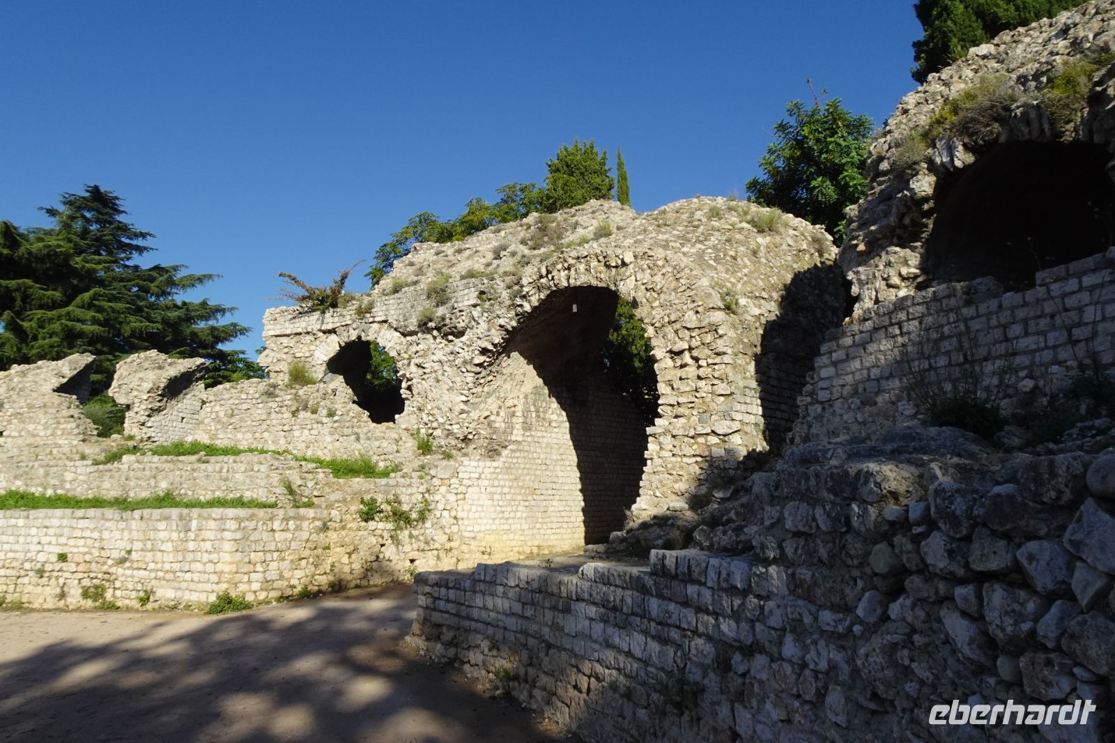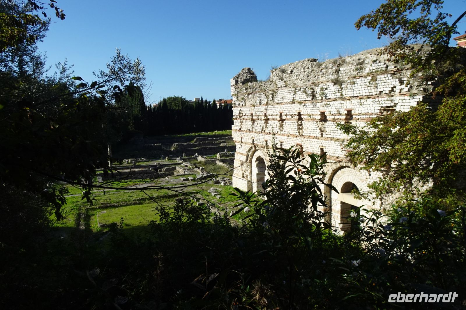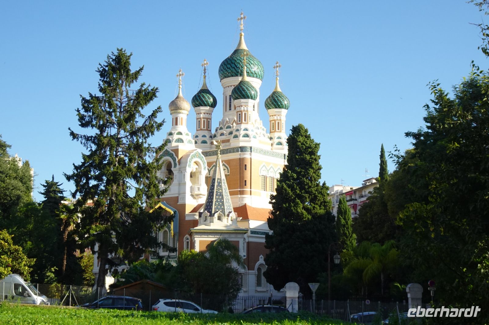 Bei strahlendem Sonnenschein und nach einem leckeren vielfältigen Frühstück mit knusprigem Baguette, verführerisch duftenden Croissants, Schinken, Käse, frischem Obstsalat sowie leckeren Marmeladen machten wir uns mit dem Bus auf den Weg, Nizza zu erkunden. Zuerst fuhren wir mit dem Bus auf den Mont Boron hinauf, um das Panorama über Nizza, die Bucht und den alten Hafen zu genießen. Anschließend besuchten wir die russische Kirche, die Kathedrale St. Nicolas. Die 1912 geweihte Kirche war damals die größte orthodoxe Kirche außerhalb des Zarenreiches. Unsere Rundfahrt ging weiter in den mondänen Ortsteil Cimiez. Hier liegen die erstaunlich gut erhaltenen Überreste der römischen Siedlung Cemelenum, der Hauptstadt der einstigen römischen Provinz Alpes Maritimae. Gleich neben der römischen Arena steht das legendäre Grandhotel Excelsior Regina, das, später zu luxuriösen Wohnungen umgewandelt, einst gekrönte Häupter, wie die britische Königin Victoria, Sissi, die Kaiserin Elisabeth von Österreich und Eugénie, die letzte Monarchin Frankreichs, beherbergte. Gemütlich bummelten wir durch die herrliche Parkanlage mit den knorrigen Olivenbäumen zum Franziskanerkloster Cimiez. Im Klostergarten blühten zwischen Orangenbäumen und Glanzmagnolien noch Wandelröschen, üppige Teerosen, großblütige Thunbergien und Klettertrompeten. Nach der Besichtigung der Klosterkirche besuchten wir noch die Grabstätte des Malers Henri Matisse, dessen letzte Ruhestätte sich auf dem Friedhof von Cimiez, unweit seines Ateliers, befindet. Nach einem leckeren Mittagessen in einem kleinen Lokal in der Innenstadt streiften wir durch die pittoresken Gassen und stiegen auf den Schlossberg hinauf bis zum Wasserfall, hoch über den Dächern der Stadt. Zurück im Hotel blieb uns noch etwas Zeit, bevor wir uns wieder aufmachten, um zum Abendessen ins Restaurant Bozzi in der Altstadt zu gehen. Wieder ließen wir uns die typischen Spezialitäten der Region und den köstlichen Wein des Südens der Provence schmecken. Auf dem Rückweg bewunderten wir die große Apollostatue auf der Place Masséna und die hoch über dem Platz sitzenden leuchtenden Statuen des spanischen Künstlers Jaume Plensa, die ganz in sich versunken einen inneren Monolog zu führen scheinen.
