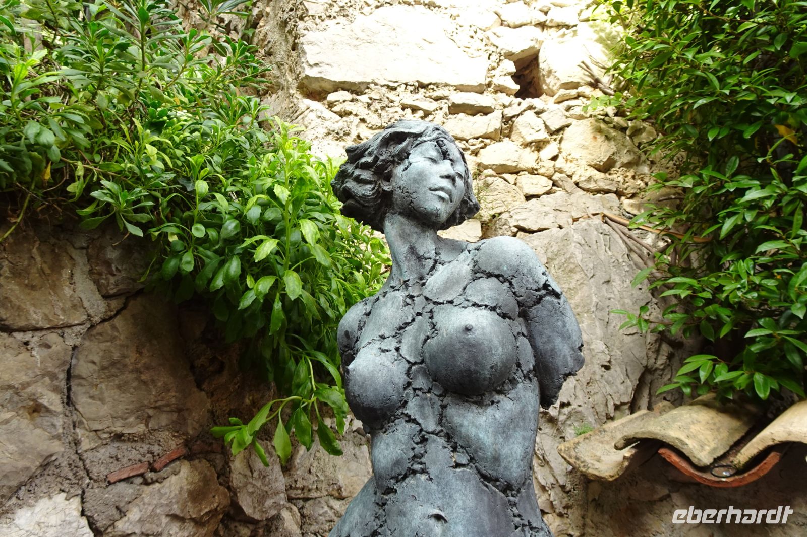 Am nächsten Morgen ging es mit dem Bus zuerst nach Èze, einem kleinen Städtchen im Hinterland von Nizza. Die wunderschöne Küstenstraße führt uns hinauf in die hier bis zu 700 m hohen Kalkalpen. Bei einem Fotostopp sahen wir auch schon das malerisch auf einem Hügel liegende Bergdorf Èze, zu dessen Füßen sich die 1968 eröffnete Laborfabrik der Parfümerie Fragonard befindet. Unterwegs erfuhren wir viel Wissenswertes über Land und Leute, die Geschichte und Vegetation der Region, deren Besonderheiten wir nach unserer Führung bei Fragonard im berühmten Felsengarten von Èze Village näher kennen lernen durften. Zu Füßen des Ortes befindet sich die ockergelbe Parfümfabrik von Fragonard. Nach einer freundlichen Begrüßung wurden wir dort in die Geheimnisse der Parfümproduktion eingeweiht. Wer konnte wissen, dass für 1 Liter Essenz bis zu 1000 kg Blüten nötig sind? Ein kleines Duftmemory führte uns vor Augen, was die Parfümeure leisten: wir scheiterten schon bei der Unterscheidung von acht verschiedenen Duftnoten, eine echte "Nase", von denen es weltweit nur zweiundfünfzig gibt, ist in der Lage bis zu 2000 Düfte zu unterscheiden. Ehrfürchtig standen wir vor der sogenannten Orgel, an der neue Duftkreationen komponiert werden. Bei einer interessanten Führung wurde uns die vielfältige Produktpalette und deren aufwändige Herstellung fachkundig erklärt. Im angeschlossenen Verkaufsraum durften wir die Produkte testen und so fanden einige schön verpackte Päckchen als Souvenir oder Mitbringsel den Weg zurück zum Bus. Der Ort Èze Village schmiegt sich an einen kahlen Felsen der Kalkalpen. Er wird von einemimposanten Kirchturm überragt und hat seine ursprüngliche provenzalische Architektur mit den steilen, engen Gassen und den um den Berg angeordneten Gebäuden mit ihren charakteristischen Dächern bis heute bewahrt. Bekanntheit erlangte der Ort auch durch seinen Kakteen- und Sukkulentengarten, der sich um die mittelalterliche Burganlage erstreckt. Der Garten wurde bereits kurz nach dem zweiten Weltkrieg eröffnet und seither kontinuierlich erweitert. Wer den steilen Weg nach oben nicht scheut, wird mit einer grandiosen Aussicht und einer erstaunlichen Vegetationsvielfalt belohnt. Barbara, Margot, Marina und Chloé, so heißen die hübschen jungen Frauen, die der Künstler Jean-Philippe Richard geschaffen hat. Sie beleben mit ihrer Anwesenheit und ihren Geheimnissen das Terrain und fast möchte man mit ihnen tauschen. Blumig nach Flieder duftend machten wir uns auf die Weiterfahrt nach Menton, einer Kleinstadt, die direkt an der Grenze zu Italien liegt. Wir erreichten unser Ziel über die Küstenstraße, die uns atemberaubende Blicke auf die beeindruckende Architektur des Zwergstaates Monaco bot. Das gerade mal 2 km² große Land bietet Platz für fast 40.000 Menschen und 700 Luxusyachten! Das Städtchen Menton mit seiner bezaubernden Altstadt und dem idyllischen Hafen empfing uns wolkenverhangen. Ein frischer Wind blies uns um die Nase, als wir durch die verwinkelten und steilen Gassen zur Basilika Saint-Michel Archange spazierten. Die leuchtend gelbe Kirche mit ihrem markanten Turm ist die größte Barockkirche Südfrankreichs. Sie wurde in der ersten Hälfte des siebzehnten Jahrhunderts errichtet. Die Innenräume sind prunkvoll mit Marmor und Gold ausgestattet. Doch leider waren ihre Pforten verschlossen. So begnügten wir uns mit der Besichtigung des Vorplatzes mit seinem Natursteinmosaik, der zu Beginn der achtziger Jahre Kulisse im James Bond Film „Sag niemals nie“ war. Es war übrigens der letzte Film mit Sean Connery als Agent 007 in der Hauptrolle. Im Laufe der Jahrhunderte wurden die Häuser der Stadt eng aneinandergebaut und nach und nach aufgestockt. Die privilegierte Lage Mentons mit ihrem einzigartigen subtropischen Mikroklima lockt seit 150 Jahren wohlhabende Überwinternde hier her, die der Kälte ihrer Heimatländer zu entfliehen trachten. Menton ist auch berühmt für seine Zitronen - jedes Jahr im Februar findet seit neunzig Jahren das berühmte Zitronenfest statt und der Jardin du Palais Carnolès beherbergt Frankreichs nationale Zitrusfrüchtesammlung mit über 100 unterschiedlichen Arten. Gemütlich bummelten wir durch die Gassen und bestaunten die vielfältige Verwendungsmöglichkeit der Zitrone. In der Hafenbastion, einer kleinen Festung aus dem siebzehnten Jahrhundert, befindet sich das Jean Cocteau Museum, das vom Künstler selbst geplant und gestaltet wurde. Cocteau war einer der prägenden Köpfe des zwanzigsten Jahrhunderts, der mit seiner Dichtung, seiner Malerei und mit seinen Filmen wegweisende künstlerische Akzente setzte. In einer kleinen franco-Italienischen Bar stärkten wir uns mit einem italienischen Café Latte und leckeren Panini für die Rückfahrt.
