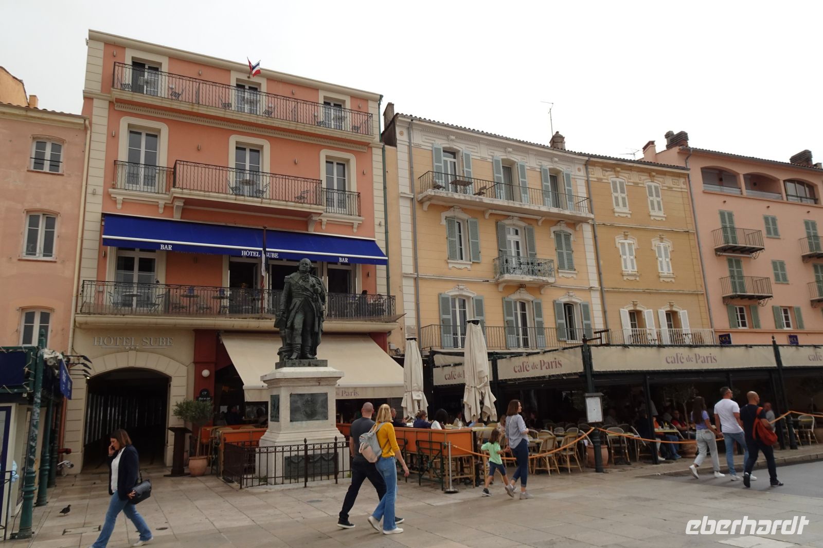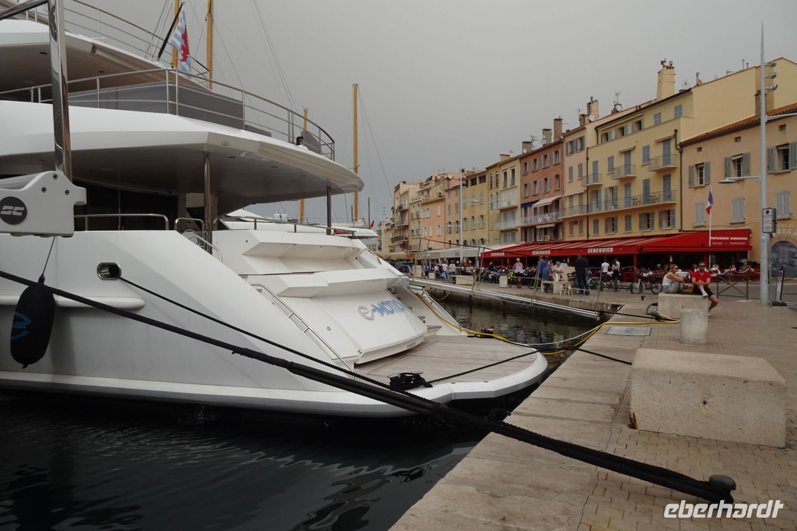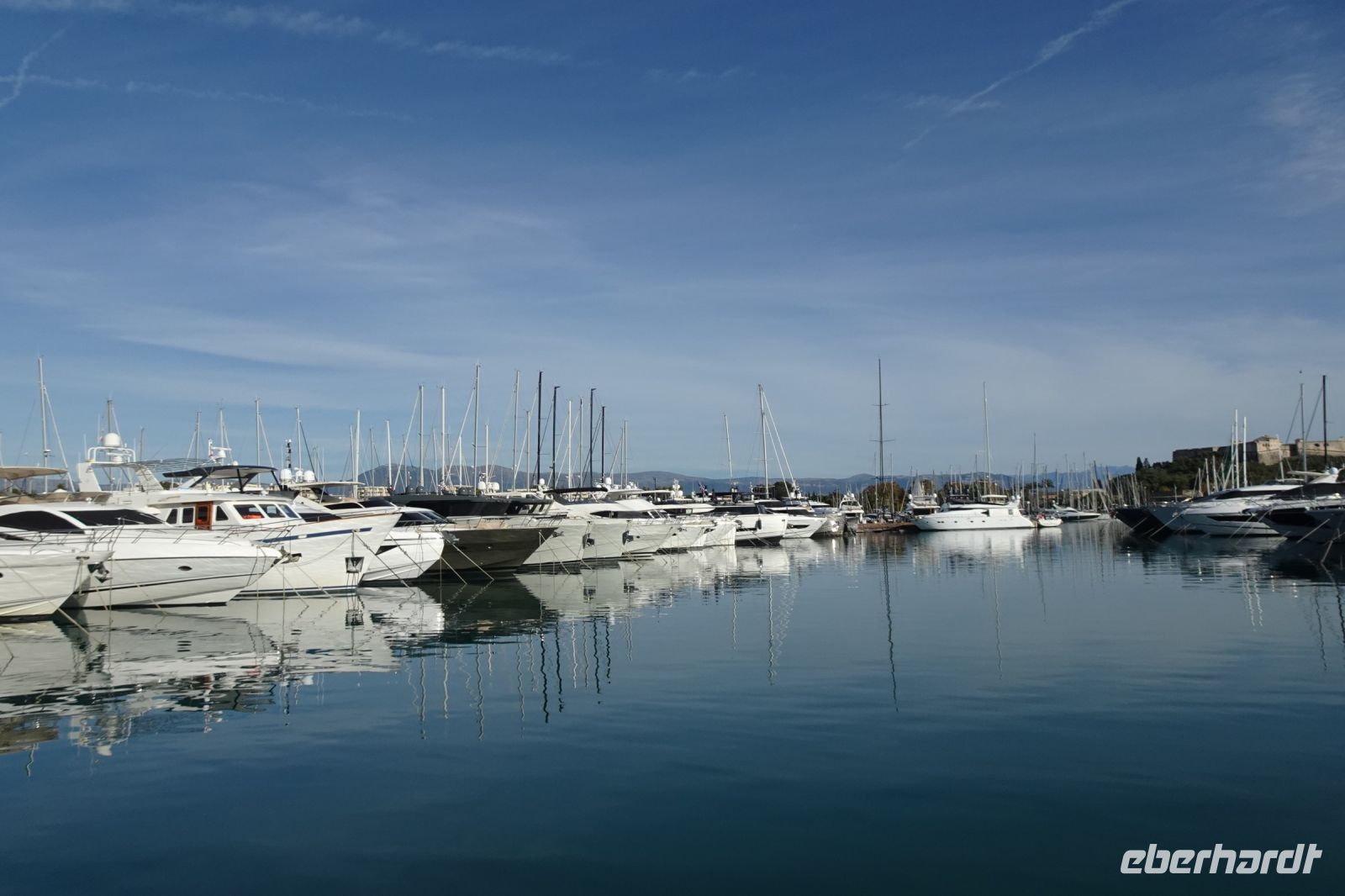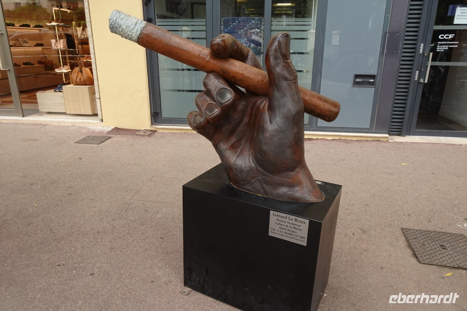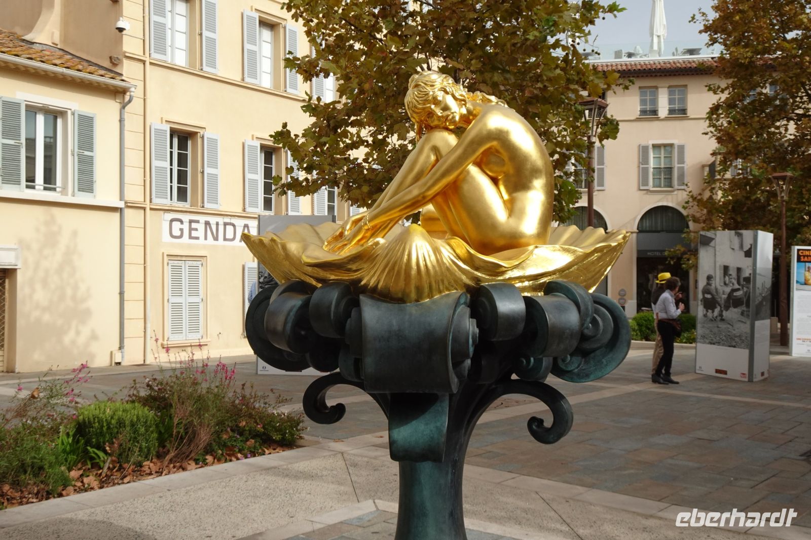 Wieder stand die Sonne am blauen Himmel, als wir uns zu unserem Ausflug ins gut 110 Kilometer entfernte St. Tropez aufmachten. Knapp zwei Stunden später erreichten wir die Bucht von St. Tropez. Die verwinkelten Gassen des ehemaligen Fischerdorfes laden zum Bummeln ein, ein kleiner Fischmarkt mit buntem Meeresgetier und Weinhändler locken mit ihrem Angebot. Die Sonne erreicht kaum den Boden der engen Gassen, doch immer wieder hat man herrliche Ausblicke auf das Meer. Ein kleiner Stadtbummel führte uns bis zu der Place des Lices, an dem das berühmte Café des Arts liegt. Dort fand 1971 die legendäre Hochzeitsfeier von Mick und Bianca Jagger statt. Unser Weg führte uns weiter zu der allseits bekannten Gendarmerie National, in der Louis de Funès als Gendarm von St. Tropez sein strenges Regiment führte. Seine Filme werden uns immer unvergessen bleiben! Ein kleines Museum hält die Erinnerung an diesen großen Schauspieler und an die Welt der sechziger Jahre an der Côte d´Azur wach. Auf dem Platz vor dem Gebäude war eine Bilderausstellung aufgebaut, die die Leinwandgrößen vergangener Zeiten ehrte. Mehr als siebzig Filme wurden in der Stadt gedreht, darunter auch der Film: „und Gott schuf die Frau“ mit Brigitte Bardot. Zu Ehren ihres dreiundachtzigsten Geburtstags wurde auf diesem Platz eine 700 Kilo schwere, zweieinhalb Meter hohe vergoldete Bronzeskulptur aufgestellt, die die junge Leinwandkünstlerin nackt in einer Muschel sitzend zeigt. Brigitte Bardot durfte im September ihren neunzigsten Geburtstag feiern! Im Hafen schaukelten die prächtige Yachten und ihre Besitzer schmauchten dicke Zigarren im legendären Restaurant Le Sénequier. Wir begaben uns auf ein Ausflugsboot und fuhren über den Golf von St. Tropez nach St. Maxime und auf eine Entdeckertour in die Bucht der Canoubiers. Aus der Ferne betrachteten wir die prachtvollen Villenanlagen von Brigitte Bardot, Jean Paul Belmondo, Herbert von Karajan, Mohamed al Fayed, dem Generaldirektor von LVMH, dem Erfinder von Carwash und anderer Reicher und Superreicher aus Wirtschaft, Politik und Showbiz. Schon auf der Rückfahrt begann es zu tröpfeln. Alle Straßen in Nizza waren verstopft, weil niemand nass weden wollte. So entschied sich unser Fahrer doch für einen Umweg vorbei an dem 2013 erbauten modernen Fußball und Rugby Stadion. Das Bauwerk des Architekten Jean Michel Wilmotte ähnelt dem Stadion, das 2008 für die Olympischen Spiele in Peking errichtet wurde. Es bietet Platz für 35.624 Zuschauer. Eine eigens dafür angelegte S-Bahnlinie hält direkt vor dem Eingang!