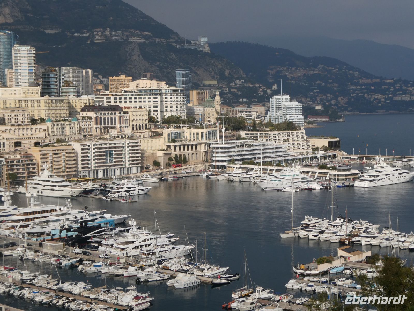 Wir schauen uns die kleine stündlich stattfindende kleine Wachablösung an und betrachten dann vom Aussichtpunkt auf Monte Carlo einen Teil der berühmten Formel 1 Rennstrecke. Hannelore erklärt uns alles ganz genau. Der alte Bau des Spielcasinos ist zwischen den Hochhäusern kaum zu entdecken.
