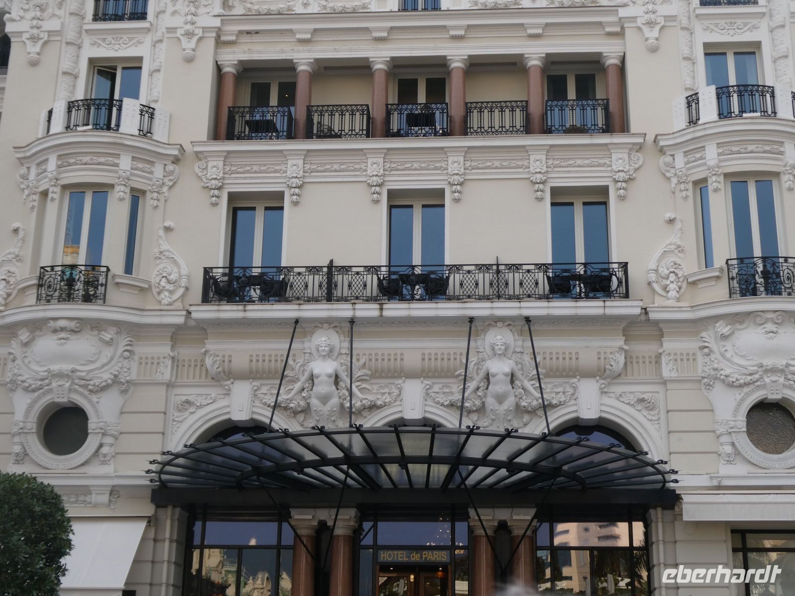 Wir erblicken das Opernhaus von Monte Carlo und sehen vor dem Luxushotel