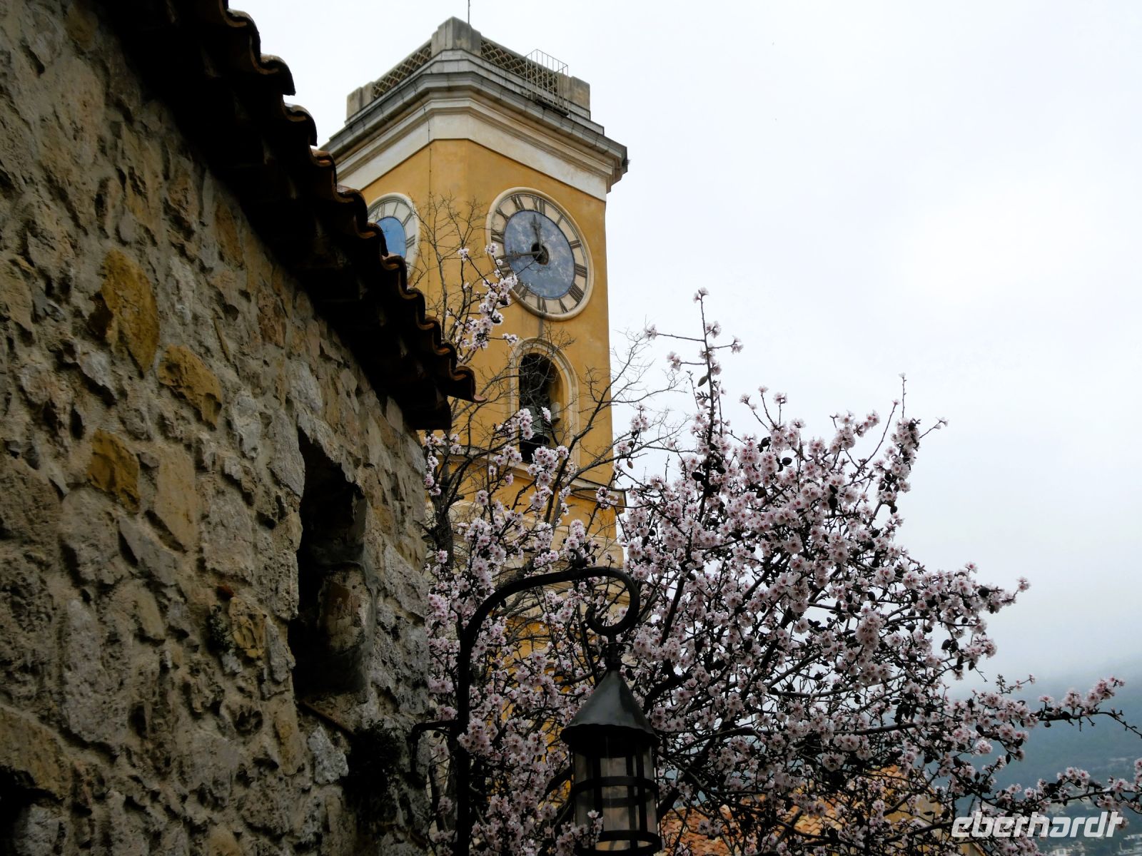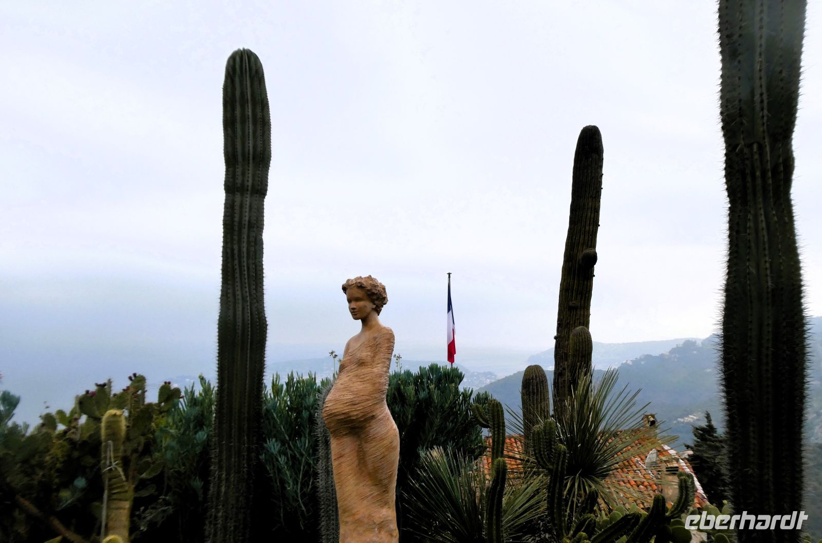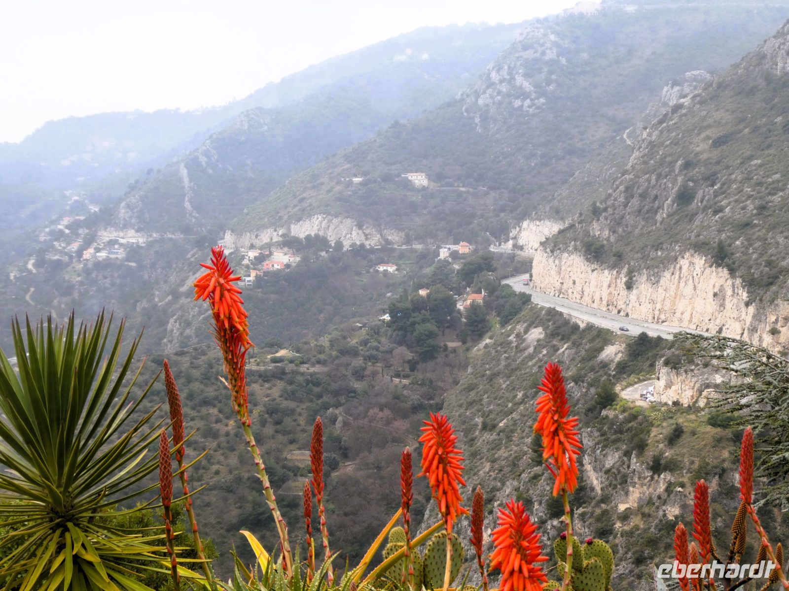 Es wäre schade diesen Ort zu besuchen ohne die Altstadt zu sehen. Es gibt eine kleine Eberhardt-Überraschung. Wir werden von Gina unserer Reiseleiterin zum Besuch des "Jardin Exotique" eingeladen. Es handelt sich um einen Sukkulenten Garten welcher in luftiger Höhe an den Felsen der Altstadt angelegt wurde. Erst einmal aber müssen wir ein wenig in die Höhe steigen. Sehr idyllisch wirkt dieser Ort und wir erreichen bald über Treppen den Eingang zum Garten. Ab hier geht jeder seine eigenen Wege, nach Fitness und Interesse. Es gibt wunderbare Ausblicke und die Sonne lässt sich auch ein wenig blicken. Wir können auf den alten Ort und die Kirche schauen.