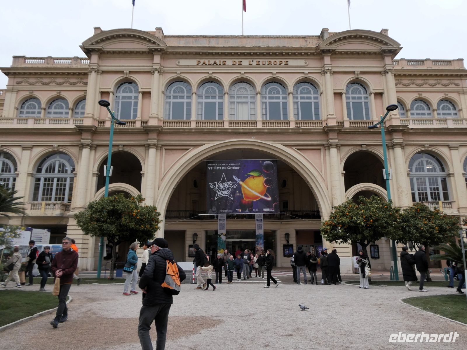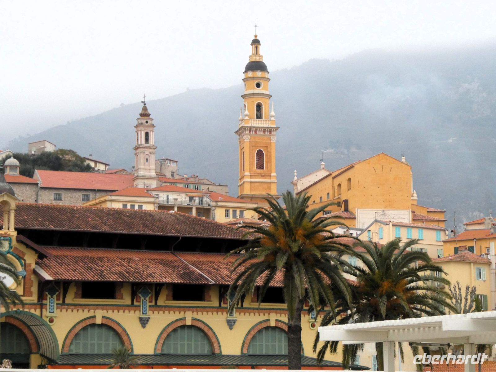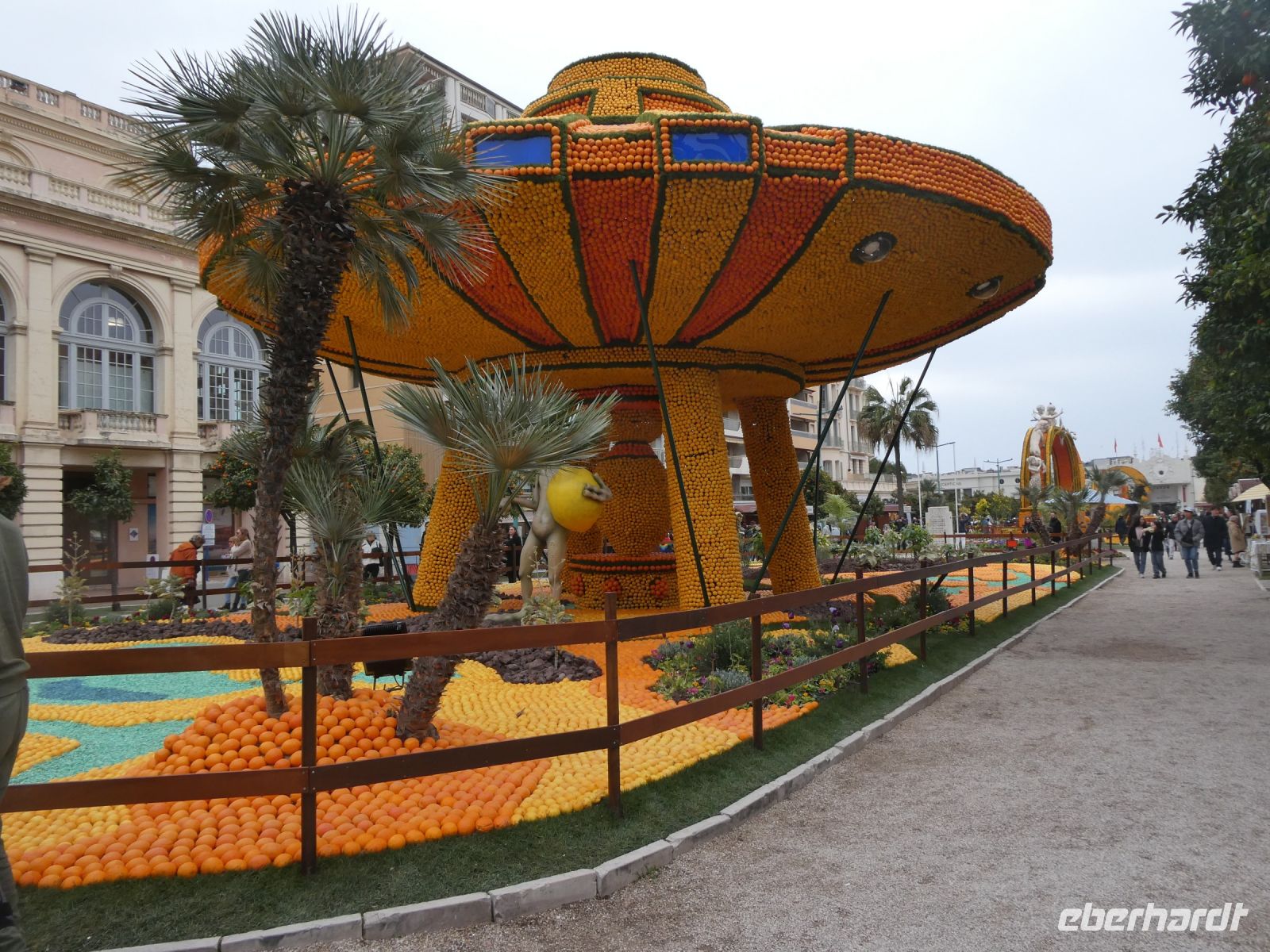 Wir haben trotzdem noch genügend Zeit für Menton, welches ja eigentlich zu den wärmsten Orten der Küste gehört, was aber heute nicht so der Fall ist. Trotzdem lassen wir uns nicht davon abhalten, das "Zitronenspektakel" anzuschauen. Es gibt heute keinen Umzug aber die Riesenskulpturen aus Zitrusfrüchten warten am Palais des Festivals von Menton. Da die Interessen in der Gruppe ein weehr auseinandergehen auch was die Reihenfolge der Erkundungen betrifft, bewegen wir uns heute individuell. Wir bekommen eine Erläuterung und nach Öffnung des Fremdenverkehrsamtes auch eine Karte von Menton und starten die Besichtigung.