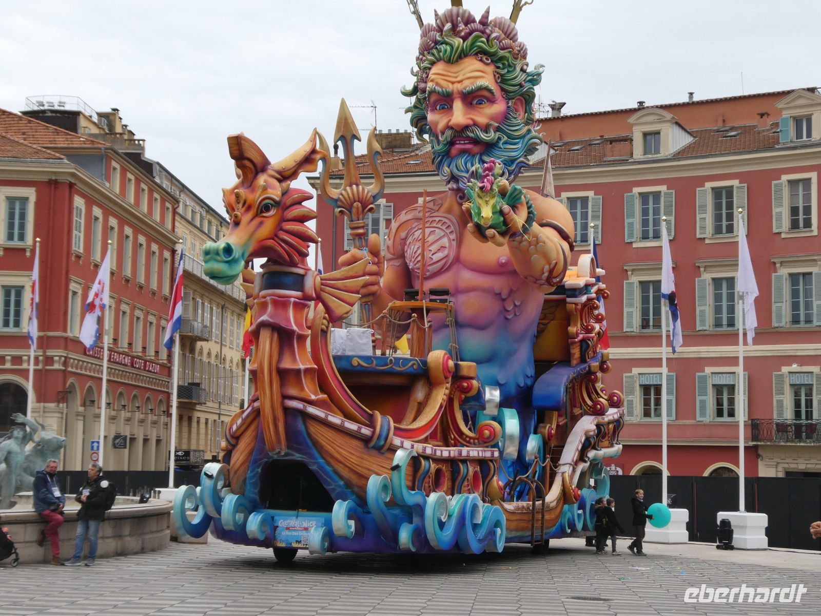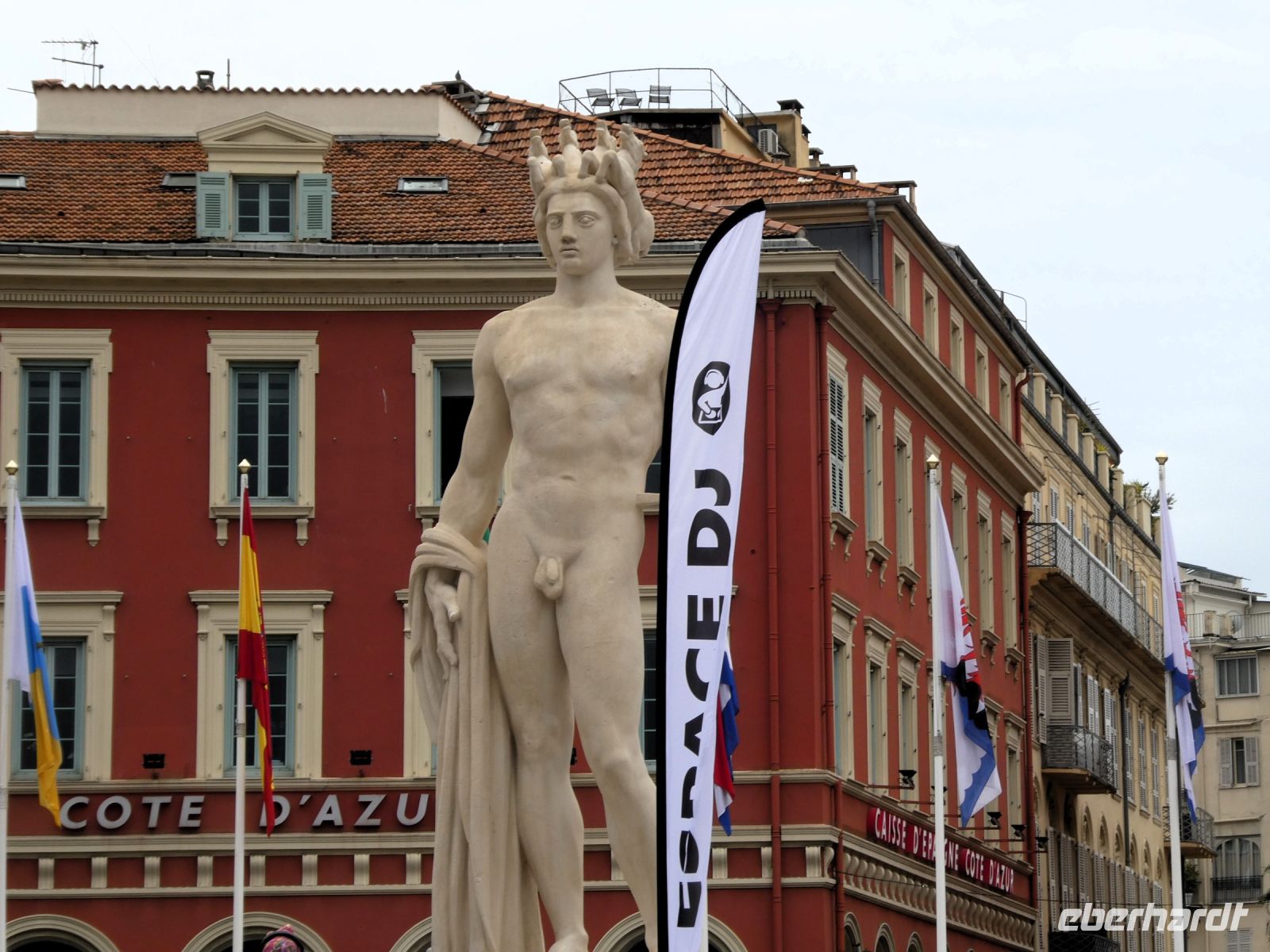 Wir erreichen den Place Masséna mit der "Fontaine du Soleil" und der Apollostatue. Karin bringt uns zum Ort des Karnevalgeschehens damit wir nachher unseren Eingang finden. Es gibt für uns reservierte Plätze auf den Tribünen.