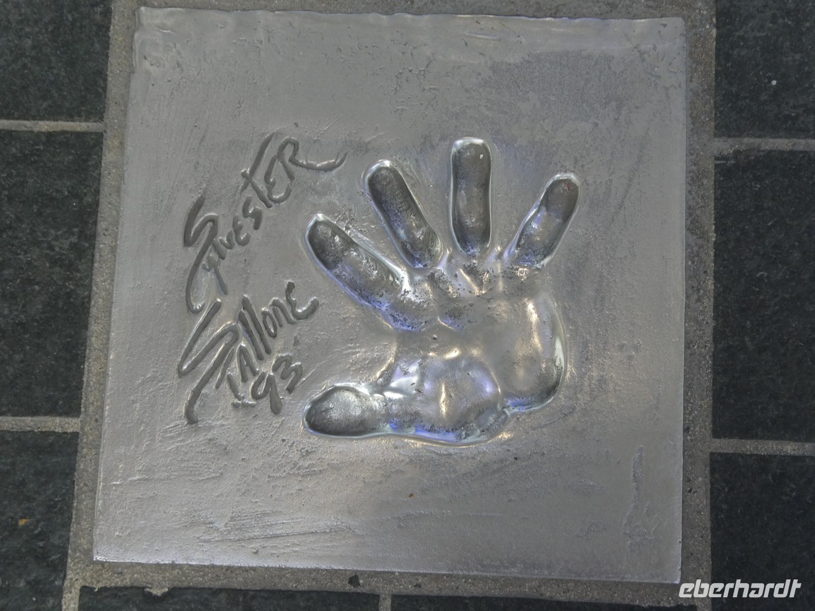 Wir spazieren zum Festspielhaus, vergleichen die Handabdrücke der verschiedenen Stars mit unseren Händen und staunen über die von Sylvester Stallone. Jeder kann sich einen Boxhieb von ihm vorstellen. Rambo lässt grüßen! Er hat viele der Stunts selber gedreht und schon zahlreiche Operationen hinter sich.