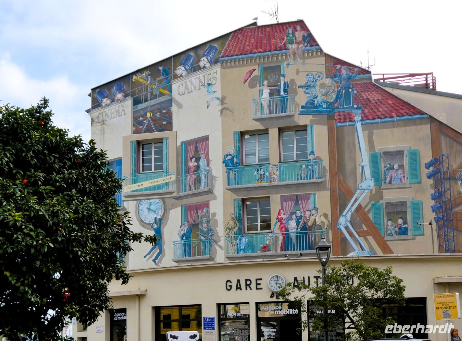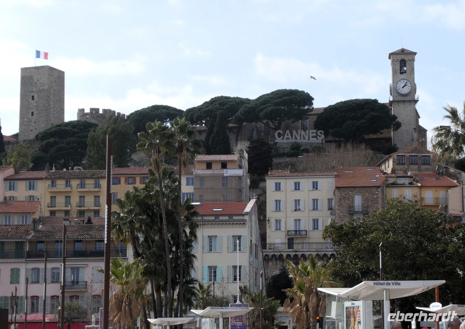 Unser Fahrer bewährt sich auch hier, denn er macht eine Fahrt über die berühmte Croissette die eine Kopie des Boulevards von Nizza ist und lässt uns in der Nähe des Rathauses von Cannes aussteigen. Eigentlich ist es neuerdings verboten über die Croissette zu fahren aber es ist im Moment nicht so viel los und unser Fahrer traut sich was. Hier wird er uns später auch wieder abholen.