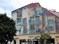 Menton, welches ja wegen seines Klimas ein Kurort für reiche Russen, Briten und andere Nationalitäten war zeigt auch heute noch eine Mischung aus Belle Époque, orientalisierten Elementen und Italien. Hier gab es auch Tuberkulose-Kliniken, da die Krankheit im 19.Jahrhundert noch sehr weit verbreitet war. Auch ist der Ort von Jean Cocteau, einem französischen Schriftsteller, Filmregisseur und Maler. Er gestaltete den Hochzeitssaal im Rathaus von Menton, den man besichtigen kann. Es gibt in Menton auch ein Cocteau Museum, welches heute leider geschlossen hat. Der Hochzeitssaal der beeindruckt war zur damaligen Zeit sehr umstritten. Auch Cocteaus Lebenswandel passte so manchen nicht, er war zeitweise Opiumsüchtig und hatte Affären mit Männern und Frauen. Man sagt Edith Piaf, mit der er befreundet war, war seine große Liebe.