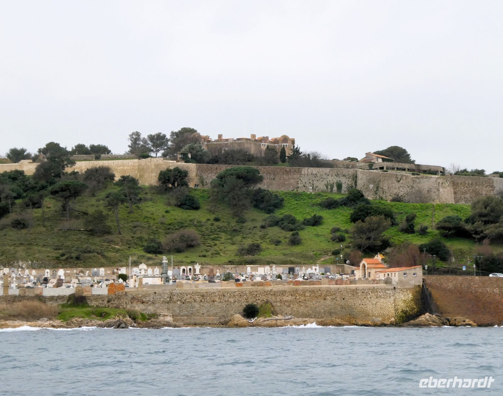 Vom Parkplatz können wir eine Blick auf das "Fort Carré" werfen. Es stammt aus dem 16.Jahrhundert und wurde von dem Festungsbaumeister Vauban zur Zeit von Ludwig XIV. runderneuert. Man kann es heutzutage besichtigen. Wir aber spazieren entlang des Hafens der auch als "Milliardärshafen", wegen der großen Luxusyachten die hier liegen, bekannt ist.