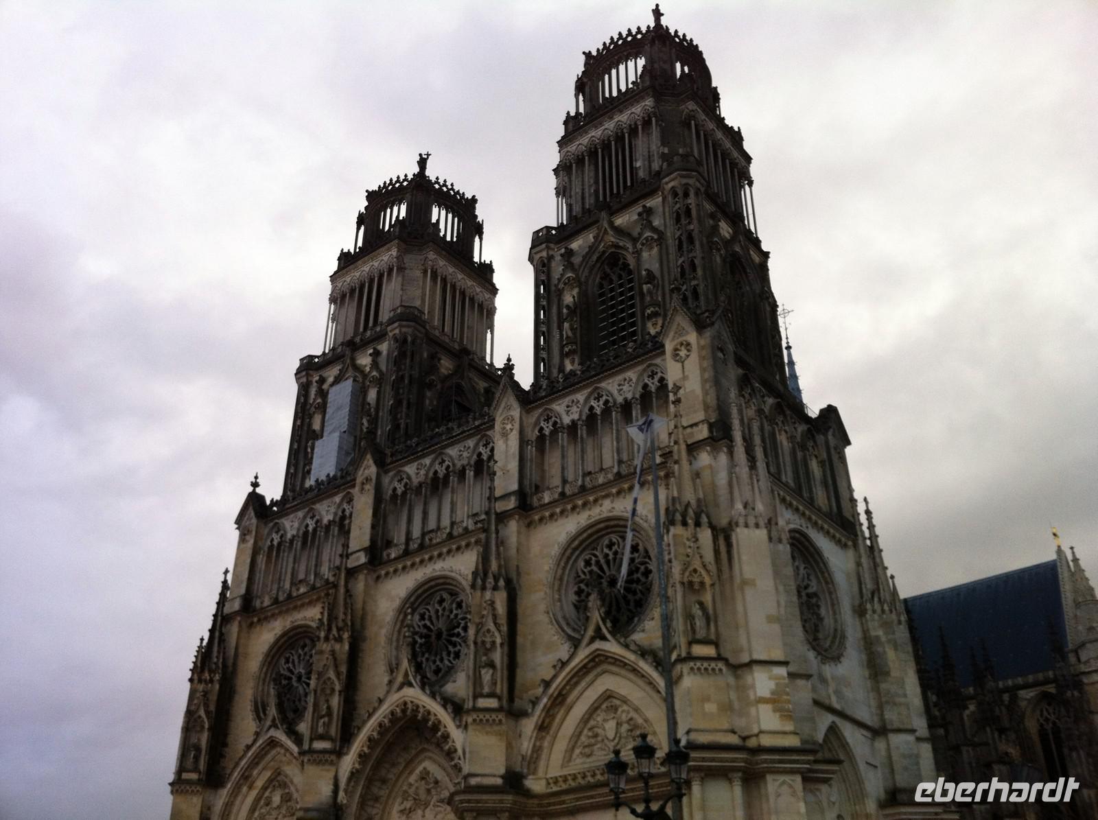 Bei wolkenverhangenem Himmel steigen wir in den Bus und fahren bei zunächst herbstlichem Wetter über Sens und Montargis in Richtung Gien. Nach Verlassen der Autobahn geht unsere Route bald auf einer kleiner Landstraße entlang des Loiredammes weiter und hin und wieder taucht endlich die Wasserfläche des längsten Flusses von Frankreich hinter dichtem Laubwald auf. Wir sind am Ziel! Der Bus kann in Sully-sûr-Loire direkt vor dem Schloss von mit seinen dicken runden Türmen aus großformatigen Kalksteinen parken. Während die Räder entladen werden, ist Gelegenheit zu einem Spaziergang in den kleinen Ort. Im „Office de Tourisme" gibt es anschauliche Übersichtskarten vom Loire-Radweg und unseren Zielen der nächsten Tage. Für das leibliche Wohl können wir in einem kleinen Supermarkt sorgen. Nach kleineren Startschwierigkeiten radelt die Gruppe bei stetig schönerem Wetter los. Allerdings drohen noch immer grauen Wolken am Himmel und zu diesem Zeitpunkt der Reise ahnt keiner, dass wir bis zum letzten Tag auf den Rädern herrlichstes Spätsommerwetter haben werden! Der Radweg verläuft parallel zum Fluss und seinem Damm durch landwirtschaftlich genutzte Flächen. Etwas abseits vom Radweg liegt die Benediktinerabtei Fleury von St. Benoît-sûr-Loire. Besonders im Mittelalter war die vom heiligen Odo gegründete Klosterschule berühmt. Heute lebt hier nur noch ein kleine Klostergemeinschaft. Wer möchte kann die eindrucksvolle Kirche mit dem hohen gotischen Hauptschiff besichtigen. Auf der anschließenden Strecke sehen wir aus der Ferne die Dächer einer zweiten Abtei: Germigny-des-Prés. Wir radeln jedoch weiter, da für den Abend noch die Besichtigung von Orléans auf dem Programm steht. Die Stadt der Jeanne d'Arc, der Jungfrau von Orléans empfängt uns zwar mit einem kurzen Regenguss und einer geschlossenen Kathedrale, aber der Spaziergang durch das mittelalterliche Viertel zwischen Place du Martoi, Cathédrale Sainte-Croix und Loire-Ufer mit seinen eindrucksvollen baulichen Zeugnissen aus sechs Jahrhunderten und der sehr gepflegte Zustand der Straßen und Bauten entschädigt uns schnell für die für nasse Jacken und Hosenbeine.