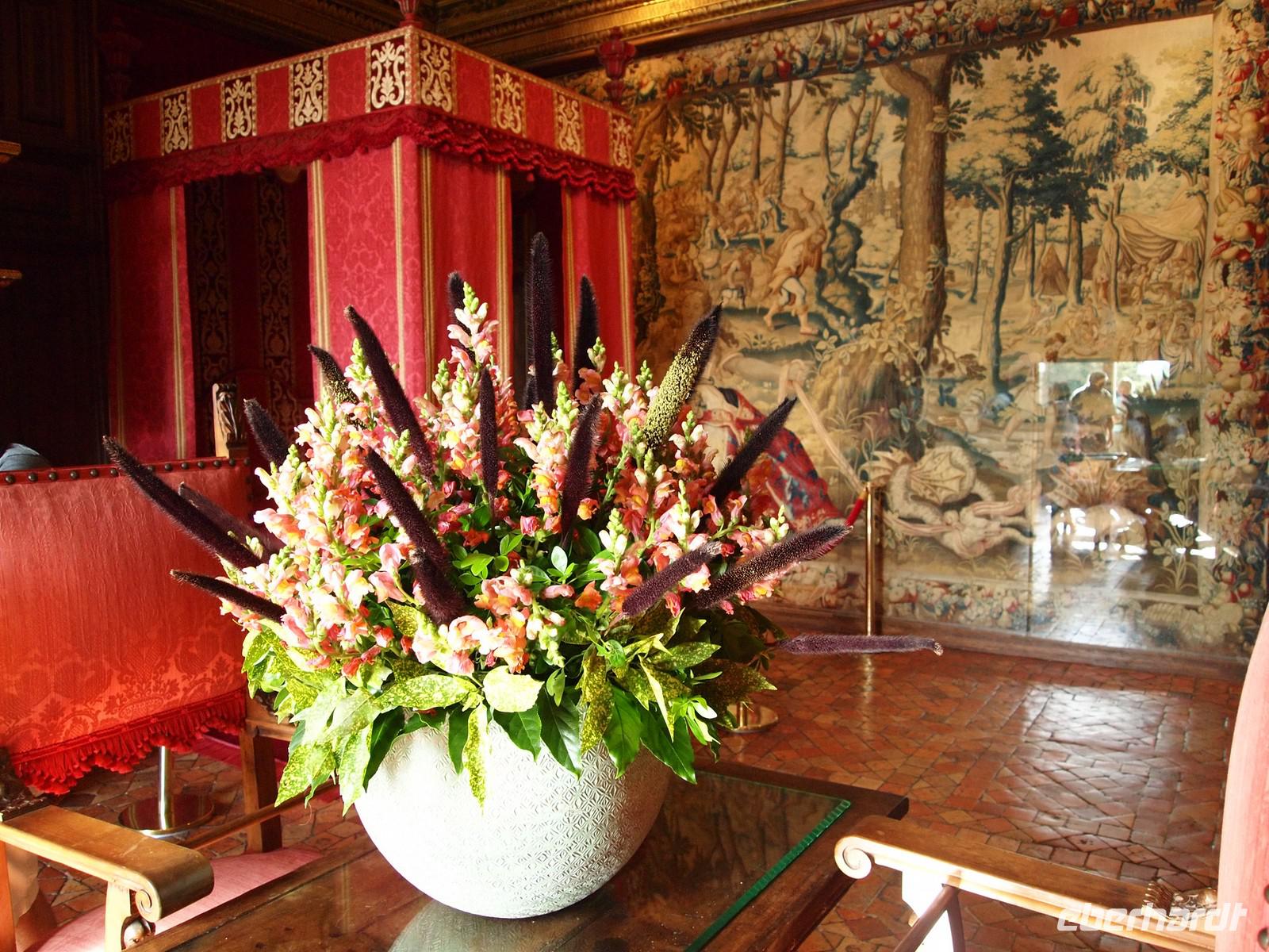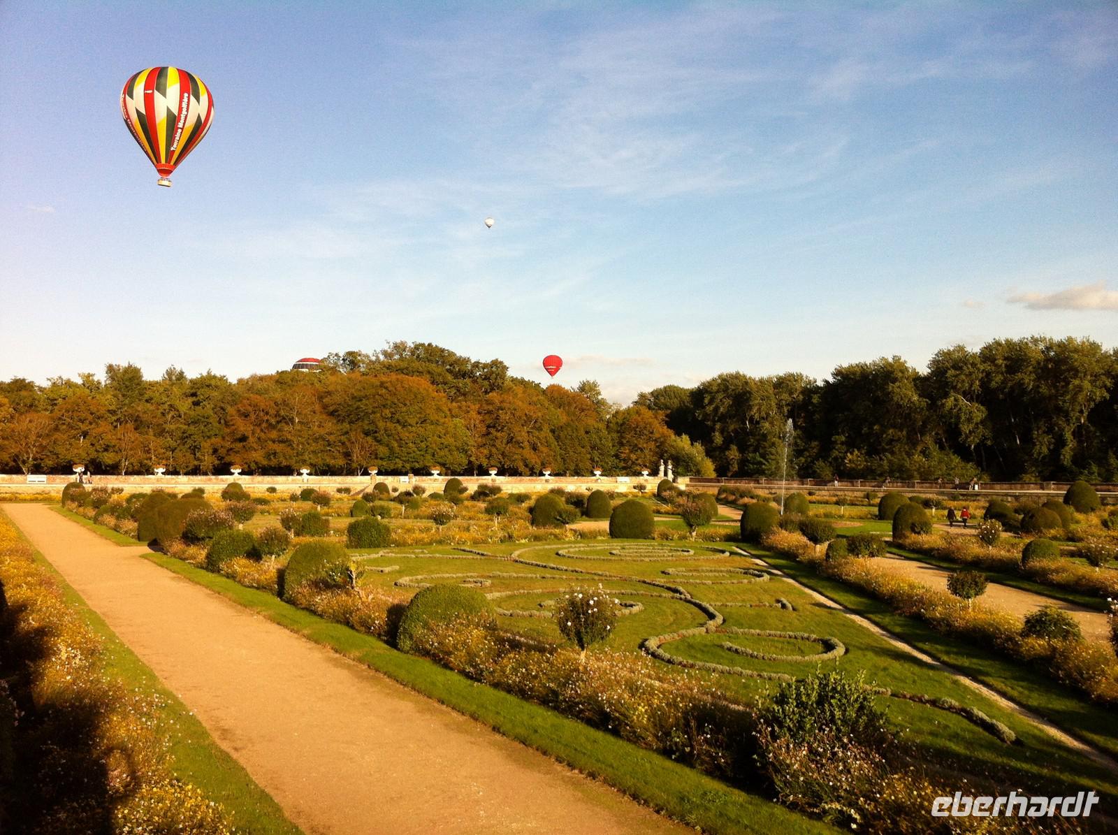 Der Wettkampf zwischen Morgensonne und Nebelschwaden über der Loire und den angrenzenden Auenwäldern beschert uns heute ein faszinierendes Naturschauspiel während der Busfahrt von Tours nach Chaumont. Schließlich gewinnt die Sonne den Wettkampf und wir bekommen das in schönster Lage oberhalb des Ortes gelegene Renaissanceschloss doch noch vor die Linse! Der Radweg verläuft nur ein kurzes Stück entlang des Flusses, dann müssen wir in die kleinen Gänge schalten und etwas kräftiger in die Pedalen treten: Es geht nun durch Weinberge und kleine Dörfer zwanzig Kilometer bis Amboise. Die Trauben sind reif und mancherorts sehen wir die Winzer bei der Weinlese. Teilweise kommen Erntemaschinen zum Einsatz, aber die besten Trauben werden von Hand gelesen. Amboise erreichen wir auf dem Hochplateau und können einen wunderschönen Blick über die Schieferdächer der Stadt genießen. In Haarnadelkurven geht es steil bergab, vorbei am Clos-Lucé, dem Alterssitz von Leonardo da Vinci, zum Zentrum des lebhaften Städtchens. Es ist Mittagszeit und es gibt viel zu sehen! Ohne lange Diskussionen erklären sich alle bereit, zugunsten einer dem schönen Ort angemessenen Besichtigung (und Pedalenpause!) auf die Weiterfahrt mit den Rädern zu verzichten. Nach dem Genuss von Schlossbau-, Weinausbau- und Koch-Kunst geht es mit dem Bus zum etwa 15 Kilometer entfernten Schloss Chenonceau, dem unbestrittenen Star unter den Schlössern der Loire - welches übrigens gar nicht an der Loire, sondern an einem ihrer Nebenflüsse, dem Cher, liegt. Wir lernen das interessante brückenartig über das Wasser gebaute Gebäude und seine Geschichte zunächst aus der Flussperspektive auf einer Bootsfahrt kennen. Anschließend besichtigen wir die Schlaf- und Wohngemächer, aber auch die vollständig eingerichtete Küche mit direktem Zugang zum Wasser. In den Schlossgärten der einstigen Rivalinnen Diane de Poitiers, Geliebte von Franz I. und Katharina von Medici (seiner Gemahlin) genießen wir die Abendsonne, während über uns mehrere Heißluftballons schweben.