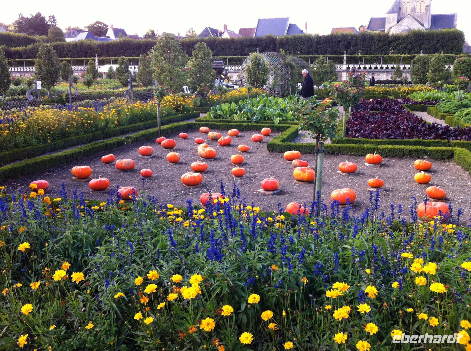Wir beginnen die Radtour im Süden der Stadt und fahren heute entlang des Cher. Unterwegs sehen wir eine stillgelegte Getreidemühle und im kleinen Ort Savonnières gönnen wir uns auf der Terrasse der Bar an der kleinen romanischen Kirche einen Frühschoppen bei herrlichster Spätsommersonne. In Villandry erwartet uns wieder ein Renaissanceschloss, aber die größere Attraktion sind die terrassenartig über drei Ebenen angelegten Schlossgärten, die zu den schönsten in ganz Frankreich zählen. Auf der obersten Terrasse liegt der Wassergarten, darunter breitet sich der Ziergarten aus. Die unterste Ebene nimmt der Gemüsegarten in Anspruch: Neun Quadrate, die mit Gemüse bepflanzt und in Beete mit verschiedenen Farben aufgeteilt sind. Am Nachmittag empfängt uns am rechten Loire-Ufer eine mächtige Trutzburg mit Zugbrücke, hohen Mauern, Rundtürmen, Zinnenkranz, Pechnasen und einem Wehrgang: Das Schloss Langeais. Hier fand 1491 mit viel Prunk die bedeutende Vermählung zwischen Anne de Bretagne und Karl VIII. statt. Der Anschluss der Bretagne an Frankreich war damit besiegelt!