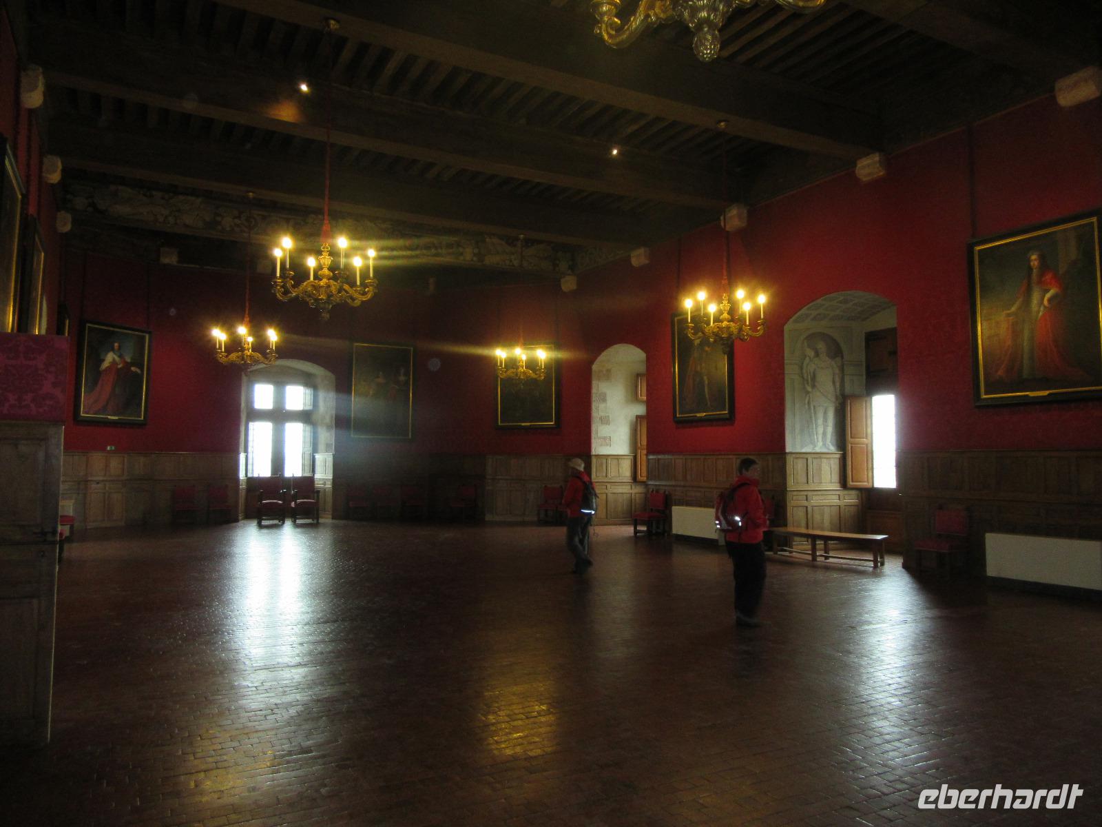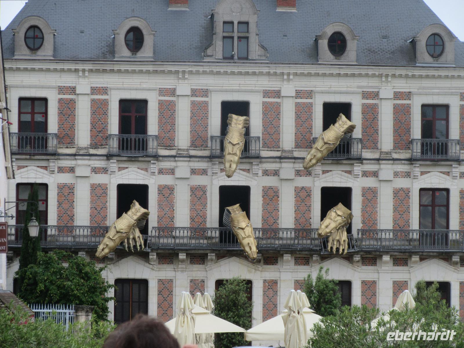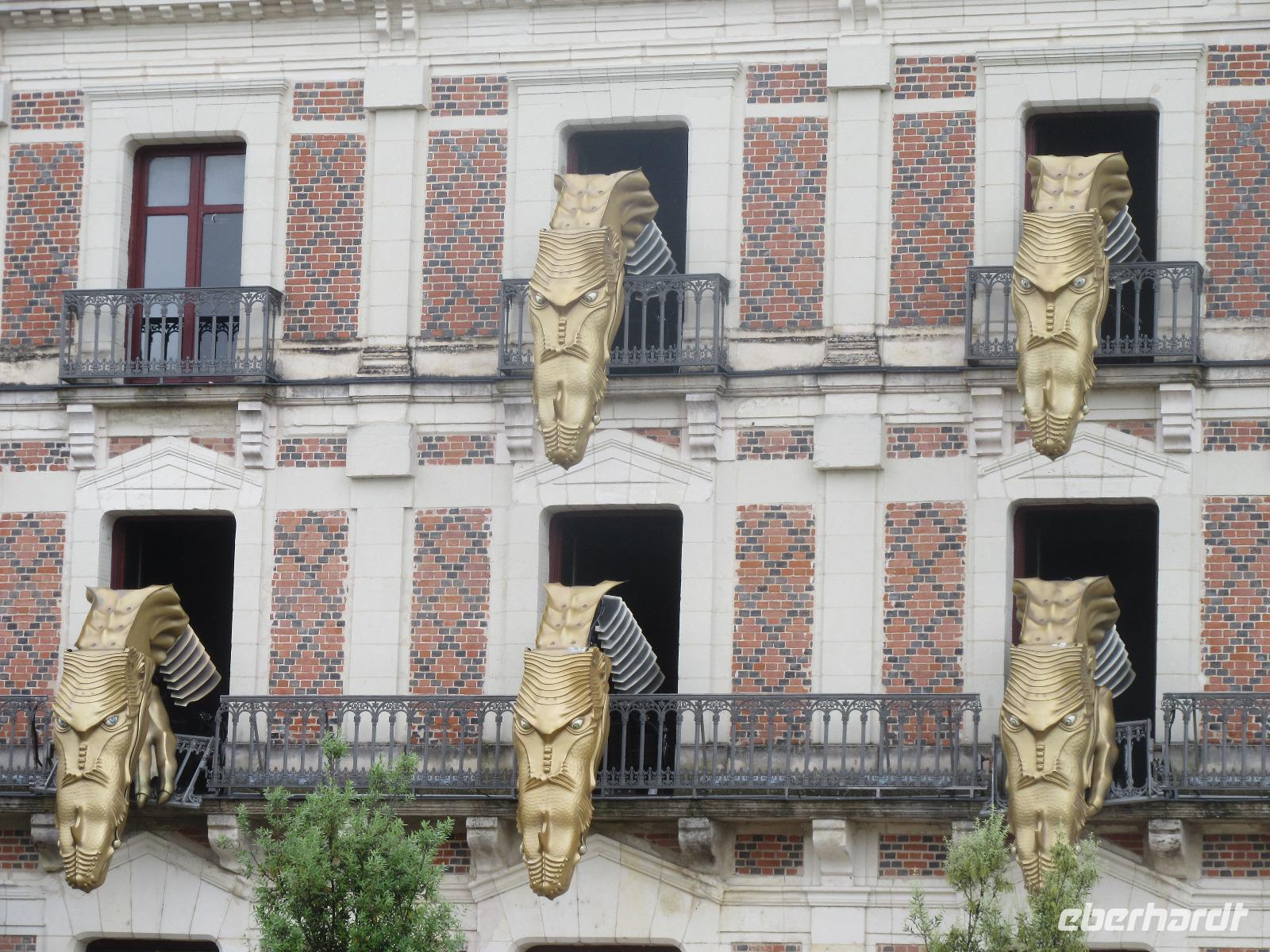 Nach mehreren Schleichwegen und das dadurch kennen lernen der umliegenden Dörfer, hatten wir dann doch den Zugang zu unserem Ziel gefunden. Als wir allerdings auf dem Parkplatz einbogen, kam schon ein Polizist angerannt und bat uns höflichst den Weg wieder nach draußen zu nehmen, da im Laufe des Tages auch hier das Wasser stehen wird. Somit entschieden wir uns für eine längere Stadtbesichtigung in Blois. Hier parkten wir den Bus direkt in der Innenstadt und so hatten wir einen kurzen Weg hinüber zum Schloss. Wir hatten Glück, denn wir sahen am Maison de la Magie, die sechs Drachen, die jede Stunde ihre Köpfe raus strecken und dazu eigenartige Töne von sich geben. Nachdem wir das Spektakel genossen haben, besichtigten wir das schöne Château de Blois. Da die Reiseleiter für die Schlösser eine extra Bescheinigung brauchen, bekamen wir hier alle Audioguides und konnten so unseren Rundgang individuell gestalten. Nach der Besichtigung des Schlosses, erkundeten die meisten Gäste noch das kleine nette Städtchen und gegen 17:30 Uhr ging es dann nach Tours, in unser Hotel für die nächsten Tage.