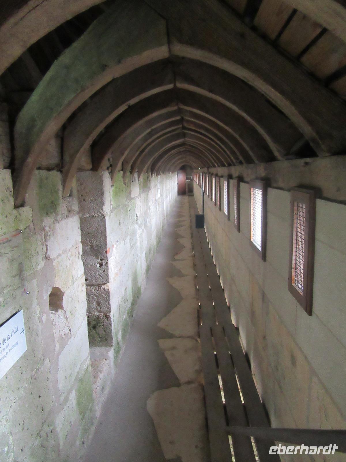 Anschließend geht der Weg mit leichten, aber zahlreichen Steigungen weiter durch die Weinberge und an mehreren Tuffsteinhöhlen vorbei. Die Hälfte der französischen Champignonzucht wird in diesen Höhlen hier produziert. Einige von ihnen (zum Beispiel in Turquant) sind zu Felsenwohnungen oder Werkstätten ausgebaut. Hier machten wir auch einen kurzen Stopp und besichtigten einer dieser Höhlen.