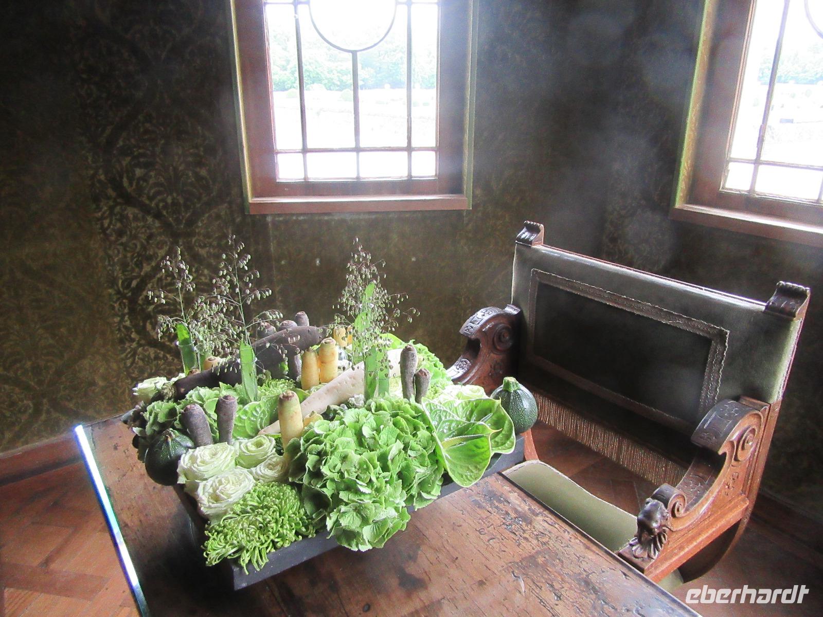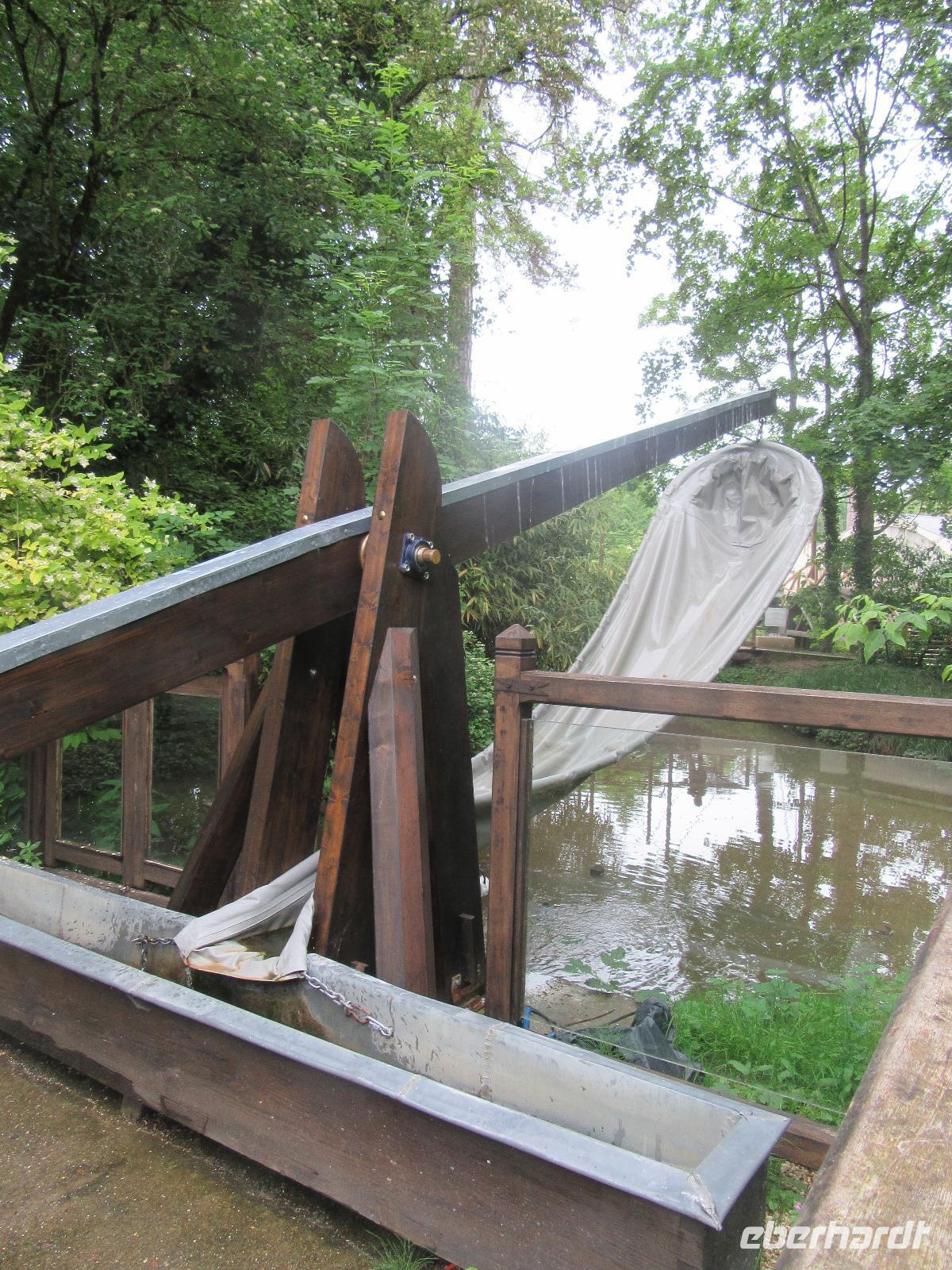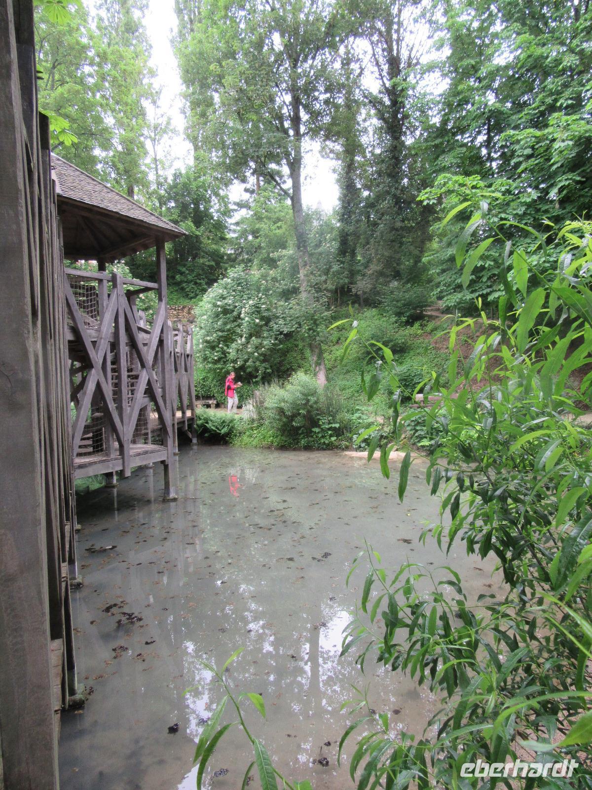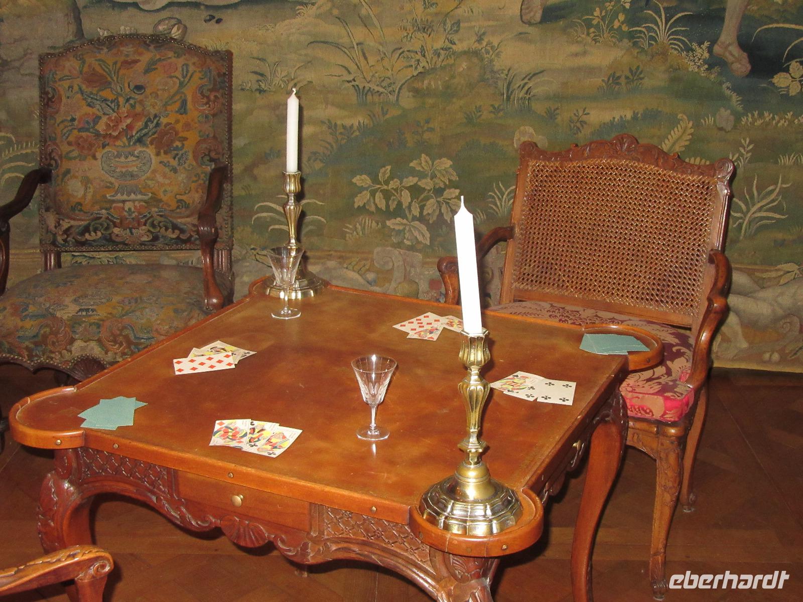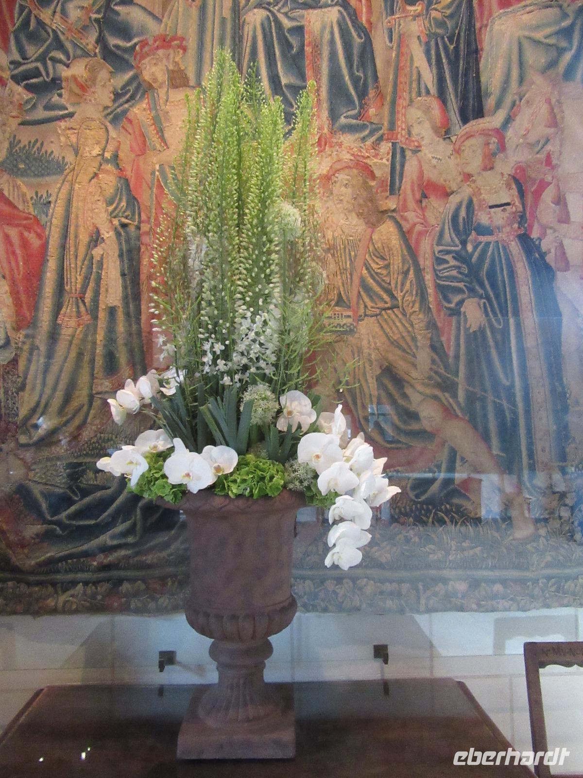 Das Schloss selber trotzte den Wassermassen und stand nun noch spektakulärer im Fluss als ich es gewohnt war. In fast jedem Raum stand wie immer ein sehr schöner Strauß mit Blumen. Dieses Jahr allerdings, steckten in relativ vielen Sträuchern auch Gemüsesorten oder das Gesteck ist gleich ganz mit Gemüse bestückt. Am Ausgang des Parks, wartete eine Überraschung für unsere Radler. Wir hatten heute im Supermarkt allerlei Sachen für ein schönes Picknick eingekauft und so war der Tisch fürstlich gedeckt. Es gab hier unterschiedlichste Sorten von Käse, feine Salami Sorten, Baguette und natürlich Wein. Nachdem wir uns alle gestärkt hatten, wollten wir noch das Schloss Montpoupon besichtigen. Dazu mussten wir aber den Cher überqueren und dies stellte sich relativ schwierig dar. Nachdem wir an der vierten gesperrten Brücke vorbei gefahren waren, entschlossen wir uns, zurück ins Hotel zu fahren.