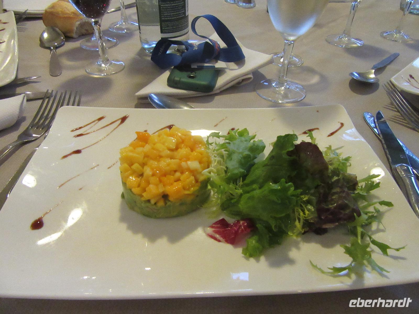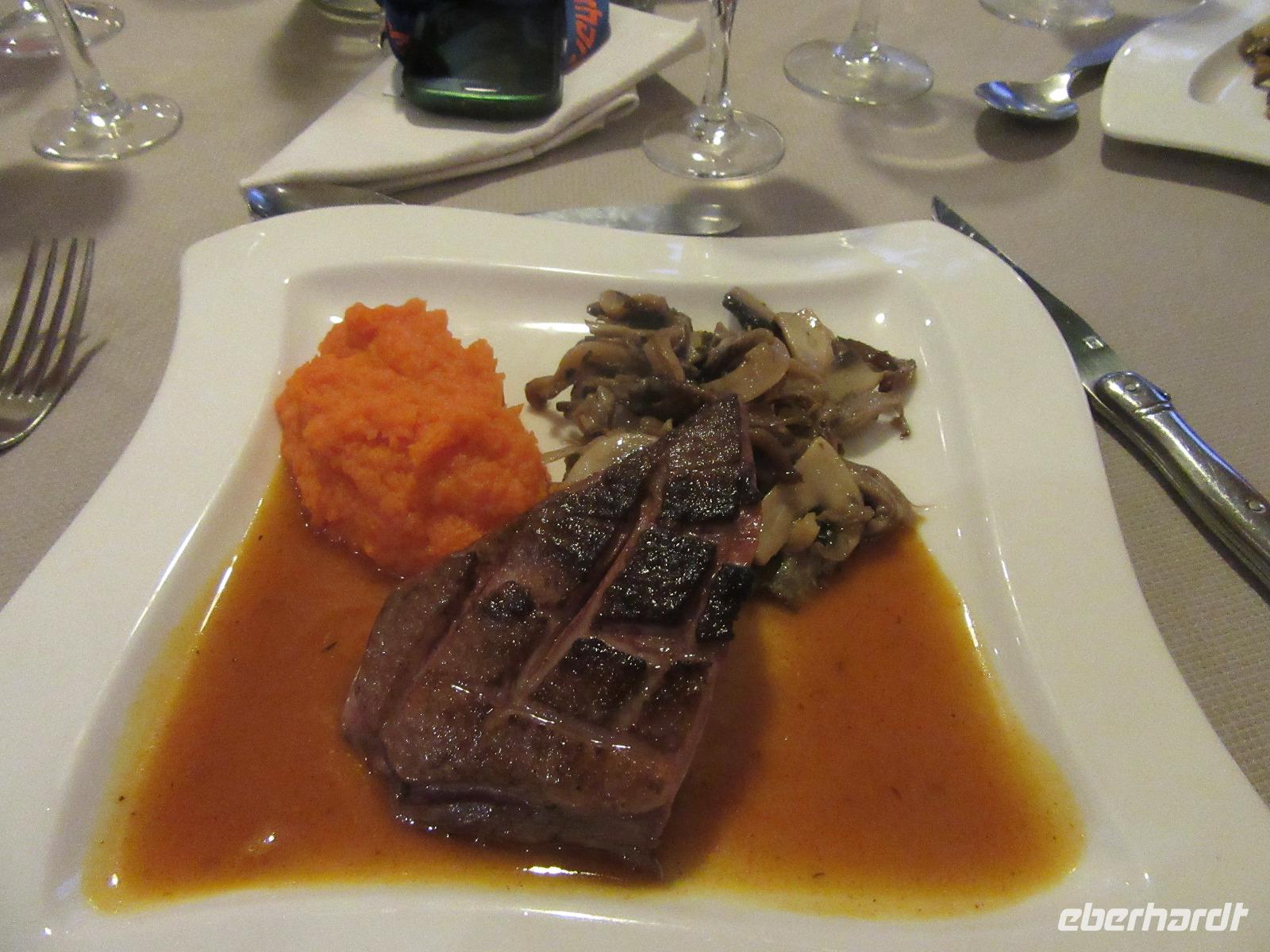 Unser Hotel, ein Golf und Spa Resort, liegt etwas außerhalb der Stadt. Zum Golf spielen fehlt uns leider das Equipment und das nötige Wissen und so statten einige Gäste vor dem Abendbrot dem Spa Bereich noch einen Besuch ab. Das Abendessen wird mit einem Aperitif für die Gruppe eingeläutet und das Menü liest sich hervorragend: Mango auf Avocado mit Salat, Ente als Hauptgang und einen schokoladigen Kuchen mit flüssiger Schokolade im inneren als Dessert. Mhmmm, das war lecker