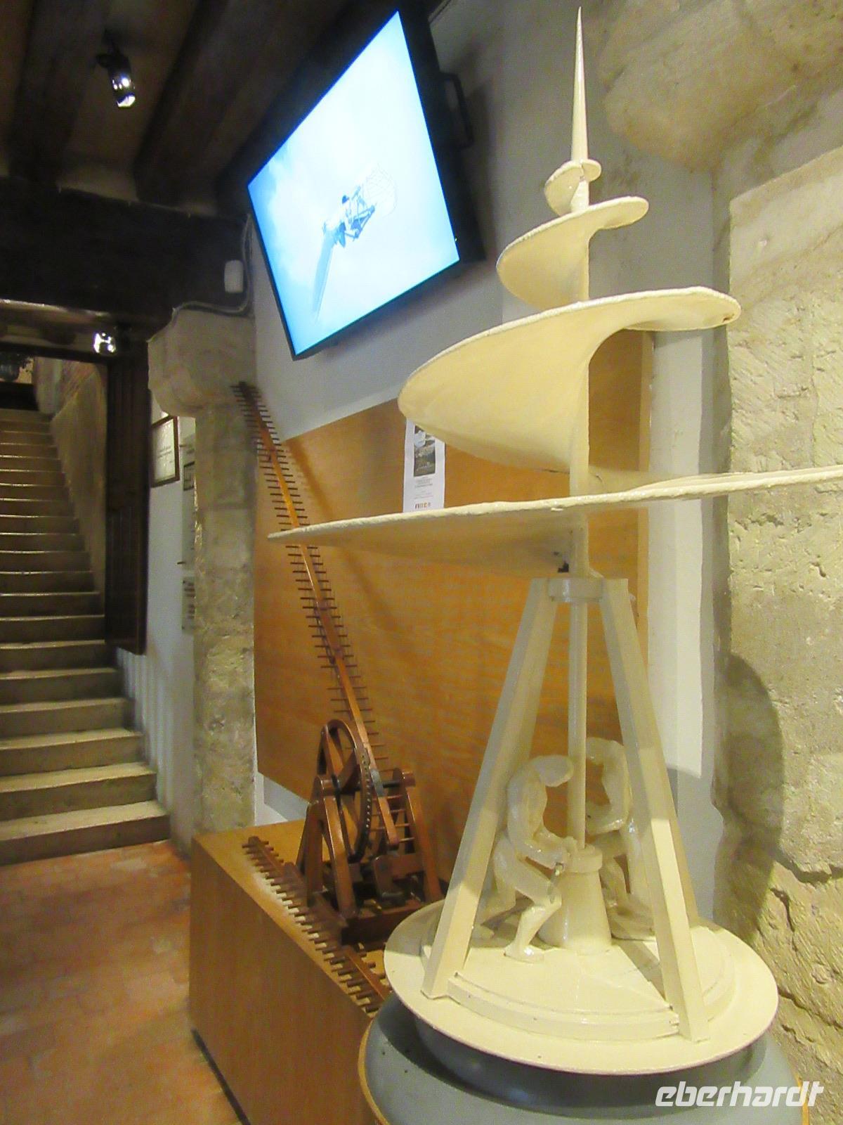 Wir besichtigen alle in Amboise das Clos-Lucé, den Alterssitz von Leonardo da Vinci. Im dort eingerichteten Museum bewunderten wir die schönen Wohnräume und staunten über Leonardo da Vincis Erfindungen, die hier nicht nur auf seinen berühmten Skizzen zu sehen sind, sondern auch als Modelle (nachgebaut und gestiftet von BMW) zum besseren Verständnis beitrugen. Auch der angrenzende Park war hübsch gestaltet und an jeder Ecke gab es eine neue Überraschung zu bestaunen. Nach der Besichtigung, ging es zurück ins Hotel und später zum Abendessen in die Stadt.