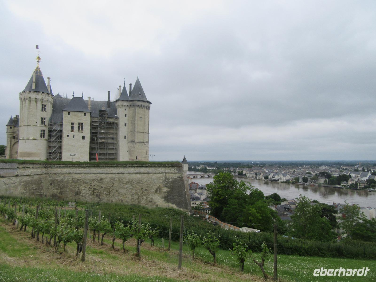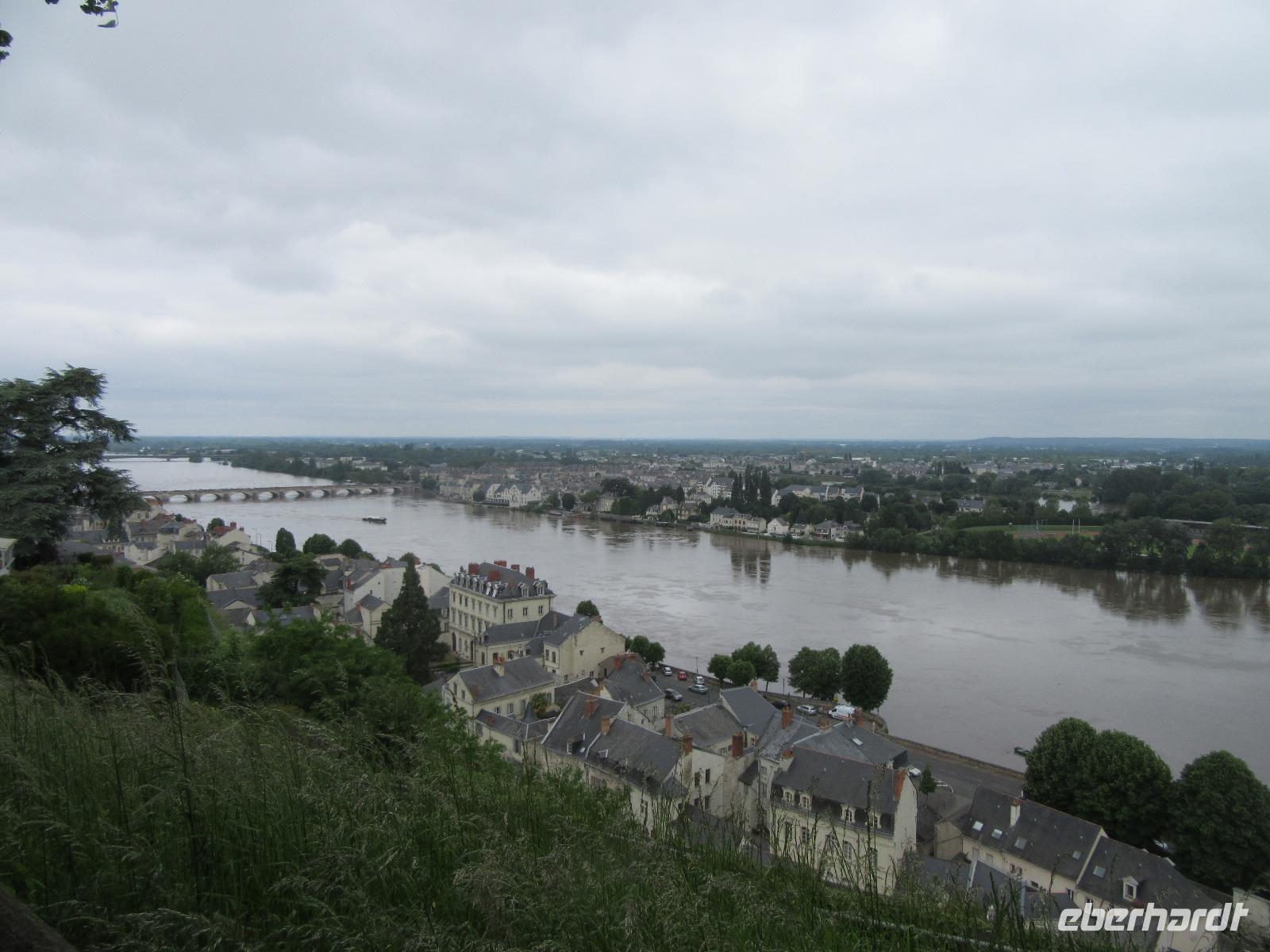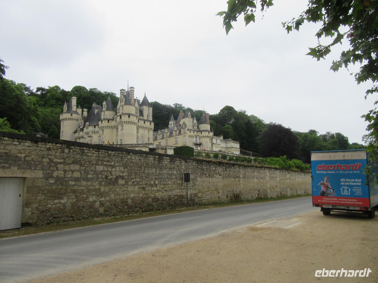 Die trutzige Ritterburg, flankiert von vier Ecktürmen und umgeben von einem schützenden tiefen Graben empfängt uns. Leider haben wir keine Zeit zur Besichtigung, aber wir genoßen hier den phantastischen Blick ins Loiretal.