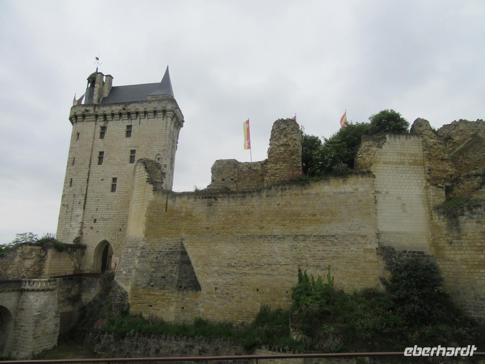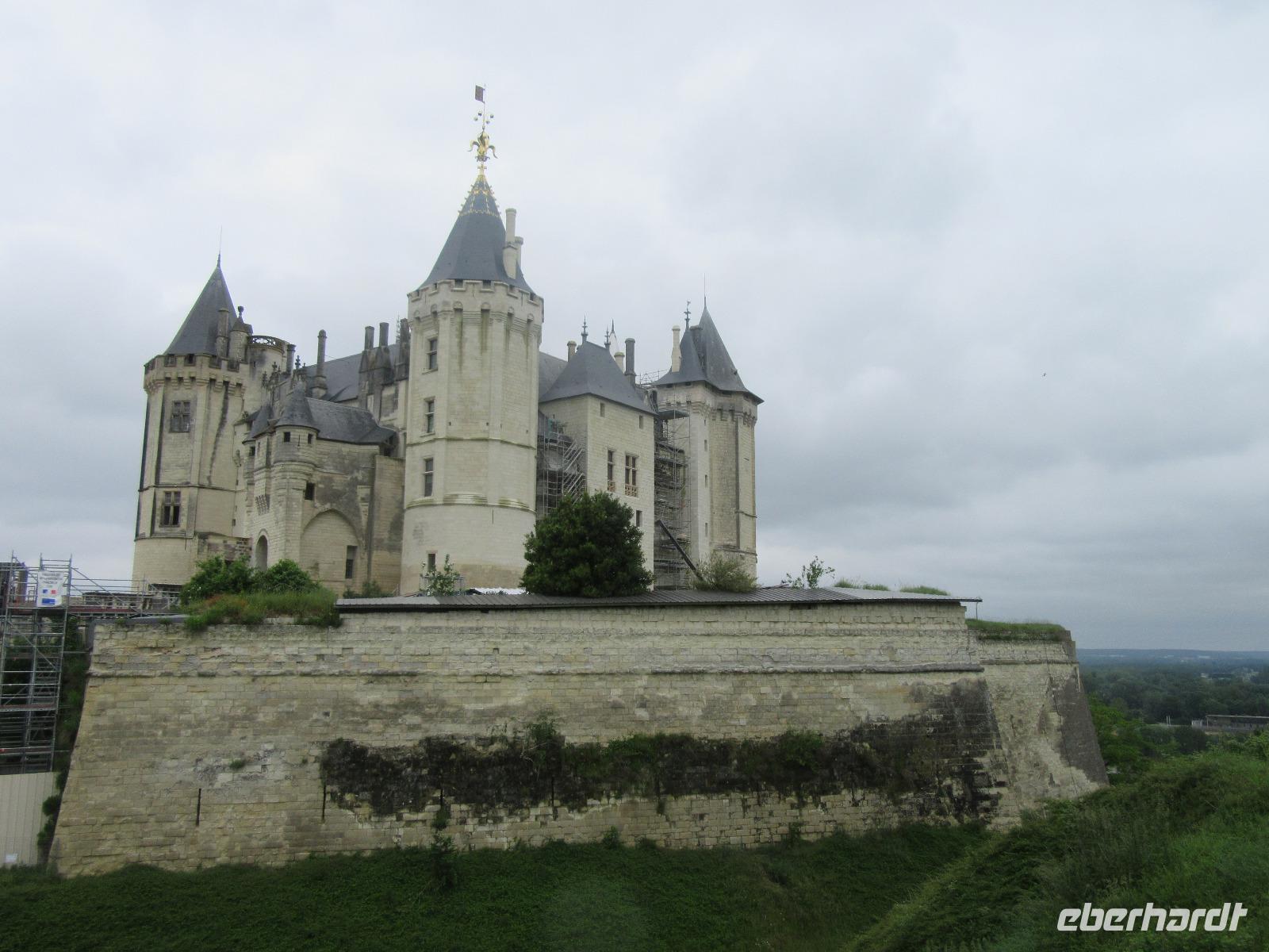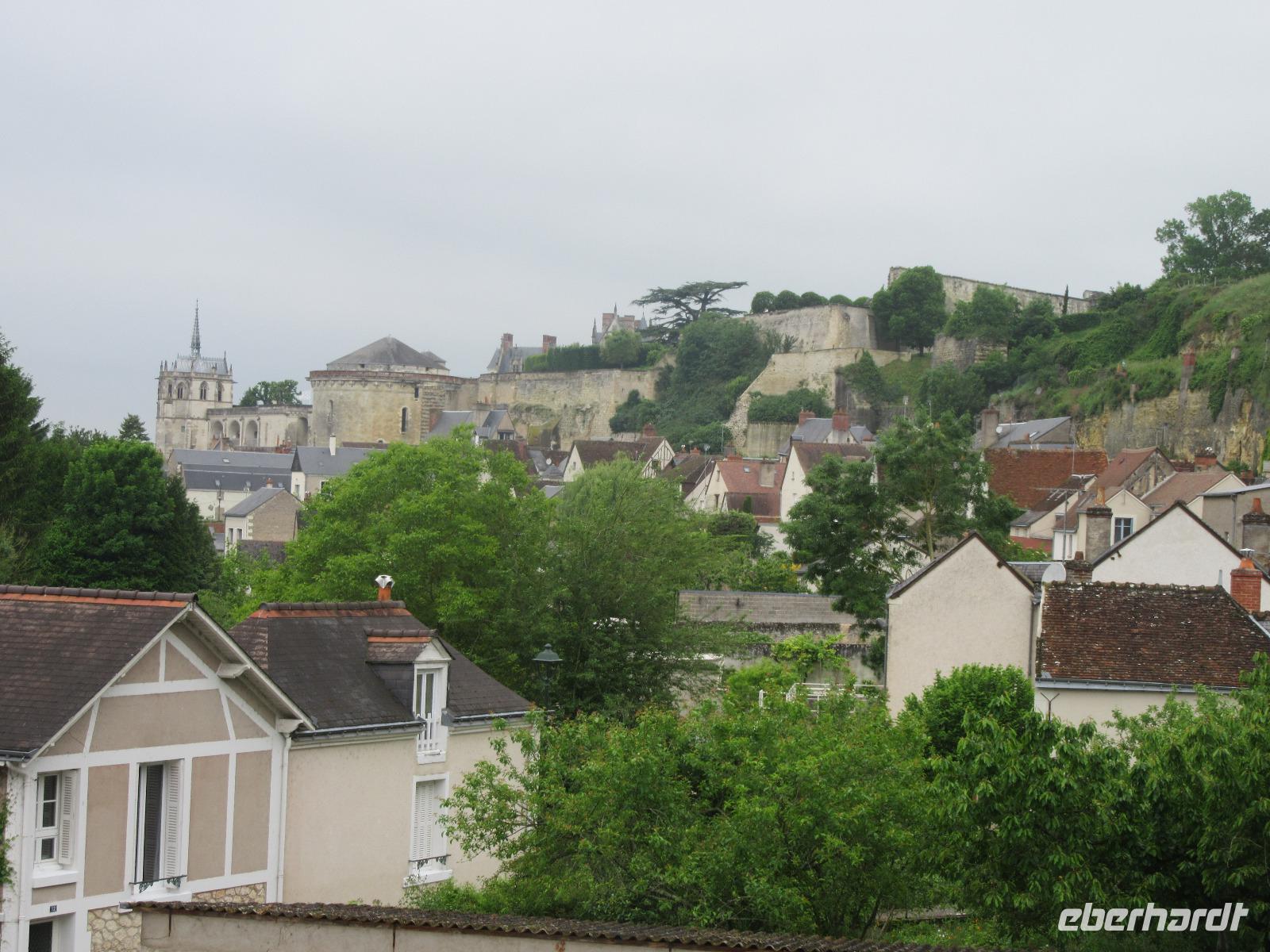 Die trutzige Ritterburg, flankiert von vier Ecktürmen und umgeben von einem schützenden tiefen Graben empfängt uns. Leider haben wir keine Zeit zur Besichtigung, aber wir genoßen hier den phantastischen Blick ins Loiretal.