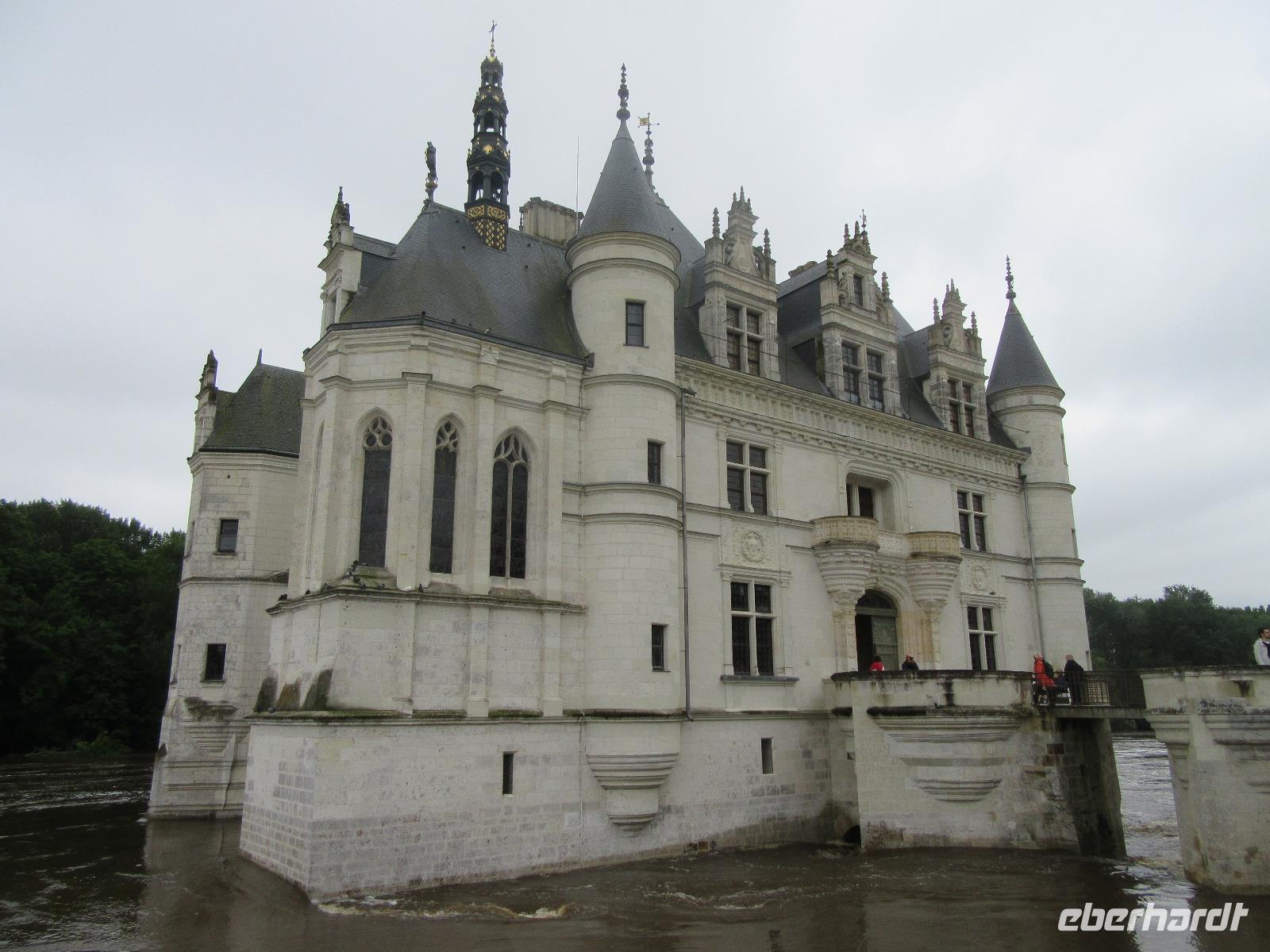 Die gute Nachricht gleich vorne weg, Schloss Chenonceau hatte seit heute wieder geöffnet und das wollten wir natürlich gleich nutzen. Doch zunächst fuhren wir erst einmal in einen französischen Supermarkt. Das einkaufen in so einem einheimischen Markt bereitet mir persönlich immer viel Freude. Zum einen kann man sich hier gut eindecken um den daheim gebliebenen eine Freude zu machen und ihnen was Feines mitbringen und zum anderen, kann man in einem Supermarkt gut ablesen, wie es der einheimischen Gesellschaft geht und wie deren Geschmäcker sind. Nachdem ein Großteil er Gäste das Angebot nutzen, ging es mit dem Bus weiter zum Schloss Chenonceau. Das Schloss Chenonceau ist der unbestrittene Star unter den Schlössern der Loire und liegt am Nebenfluss Cher. Auch hier gab es nun strengere Einlasskontrollen und man muss hier seine Taschen öffnen. Zum Glück waren wir von der Idee abgekommen, unser Picknick mit auf das Gelände zu nehmen. Dies ist nämlich nicht gerne gesehen. Aber nachdem wir den Park gesehen hatten, wäre das auch nicht mehr überall möglich gewesen, da dieser zum großen Teil unter Wasser stand.