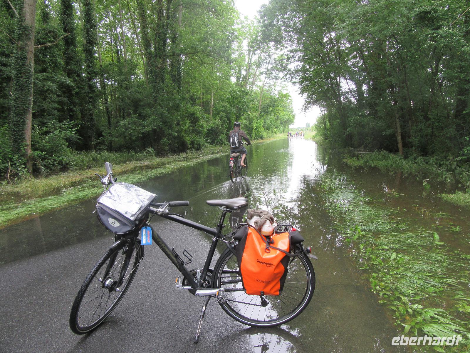 In der Kleinstadt Beaugency sollte die heutige Radtour beginnen. Allerdings haben wir erfahren, dass der Radweg überschwemmt ist. Dieser verläuft von hier über Ste. Dye-sur-Loire meist auf einem Damm, aber auch immer wieder unmittelbar entlang der Loire. Die Wassertauglichkeit unserer Räder wollten wir aber (noch) nicht erproben und beschloßen deshalb, Schloss Chambord -das Ziel der Radtour- mit dem Bus anzusteuern. Allerdings, war dies leichter gesagt als getan. Wir hatten hier die Information aus dem Schloss, dem örtlichem Touristeninformation und die eines Polizisten, dass das Schloss offen ist. Zugegeben, das war richtig, aber gefühlt sämtliche Zufahrten zum Schloss waren gesperrt und so war es eine abenteuerliche Fahrt zum Schloss.