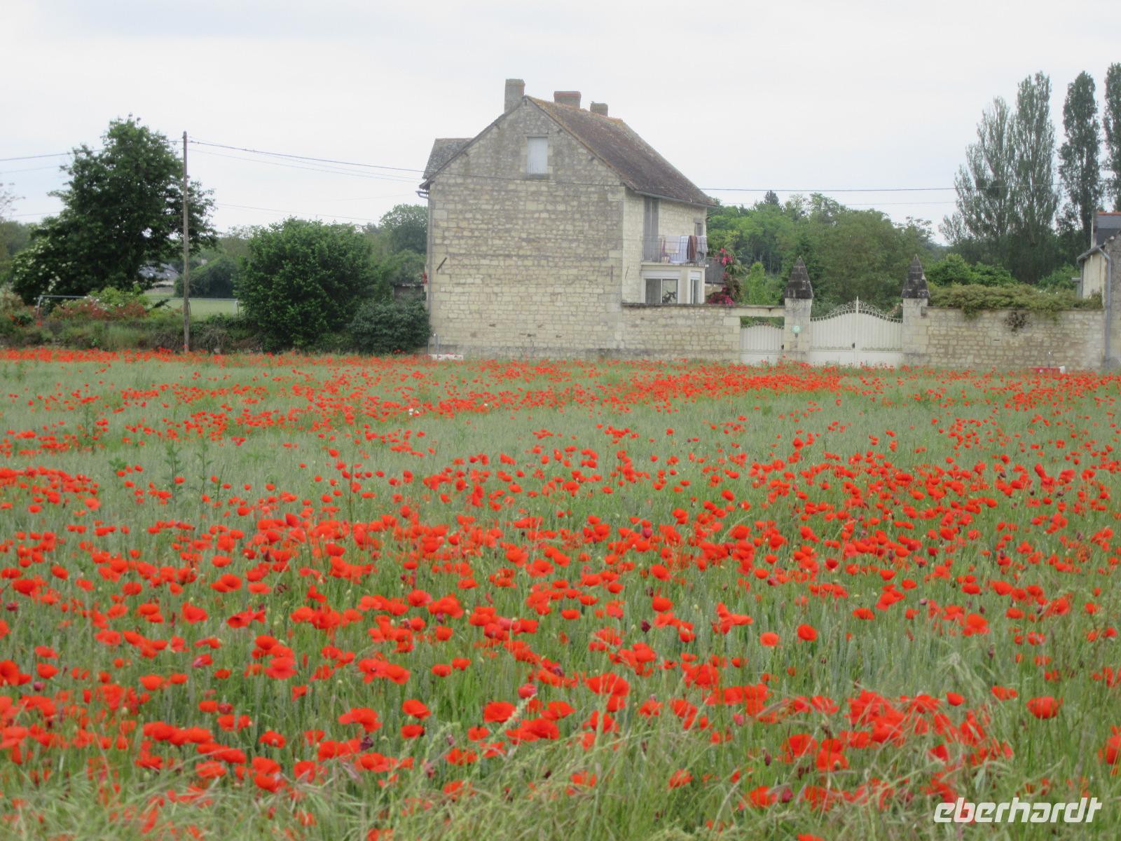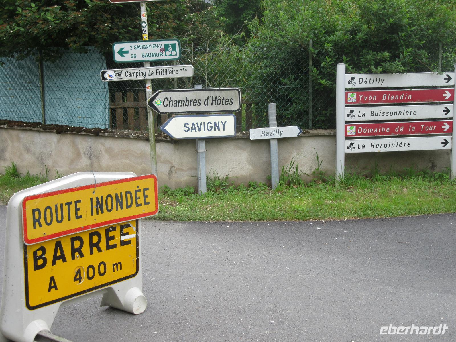 Mit seinen Türmchen und Schornsteinen sowie den steilen Dächern vor der grünen Waldkulisse, sieht es aus wie ein Schloss aus dem Märchenbuch. Nachdem wir das Schloss auch fotografisch festgehalten hatten, radelten wir ein Stück auf dem Damm entlang der Loire. Anschließend ging es dann auf befestigten Straßen in Richtung Südwesten durch die verschlafene Dörfer der Ortschaften Avoine und Savigny-en-Veron.