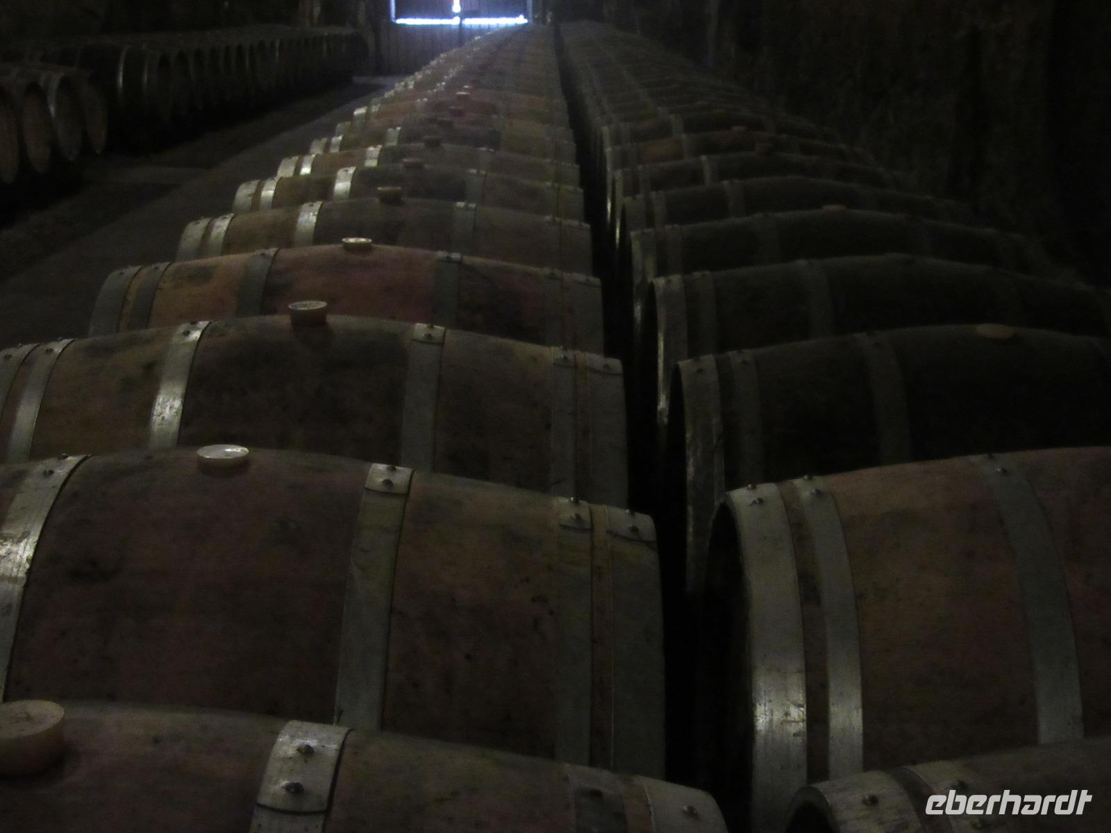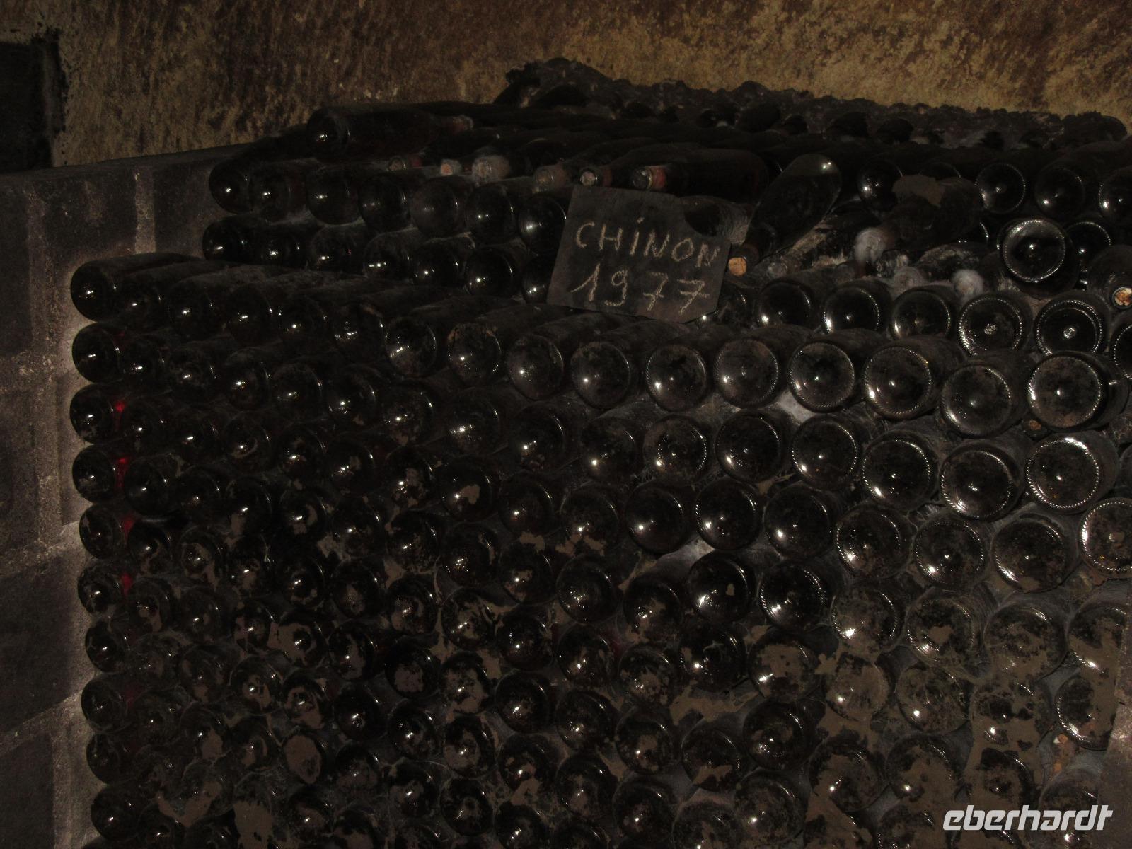 Als wir schon auf der Zielgeraden waren, versperrte uns ein kleiner See den Weg. Da wir aber abenteuerlustige Radfahrer sind, zogen wir hier unsere Socken und Schuhe aus und bannten uns unseren Weg durch das Wasser. Allerdings ging es dann wenig später doch nicht mehr weiter und so mussten wir die letzten 4 km nach Cinon auf der Hauptstraße nehmen. Im Weinkeller Monplaisir angekommen, zogen wir uns alle etwas wärmer an und tauchte in die Höhle ein. Der „Cave" ist in einem alten Steinbruch von mehr als 2500 Quadratmetern (der größte im gesamten Loiretal) untergebracht. Anfang des 20. Jahrhunderts wurde er zum Weinkeller für die Lagerung und Reifung in Fässern und Flaschen umgenutzt. Unsere Weinprobe findet in den beeindruckenden Höhlengängen statt, wo die Temperatur das ganze Jahr gleichmäßig 12° beträgt.