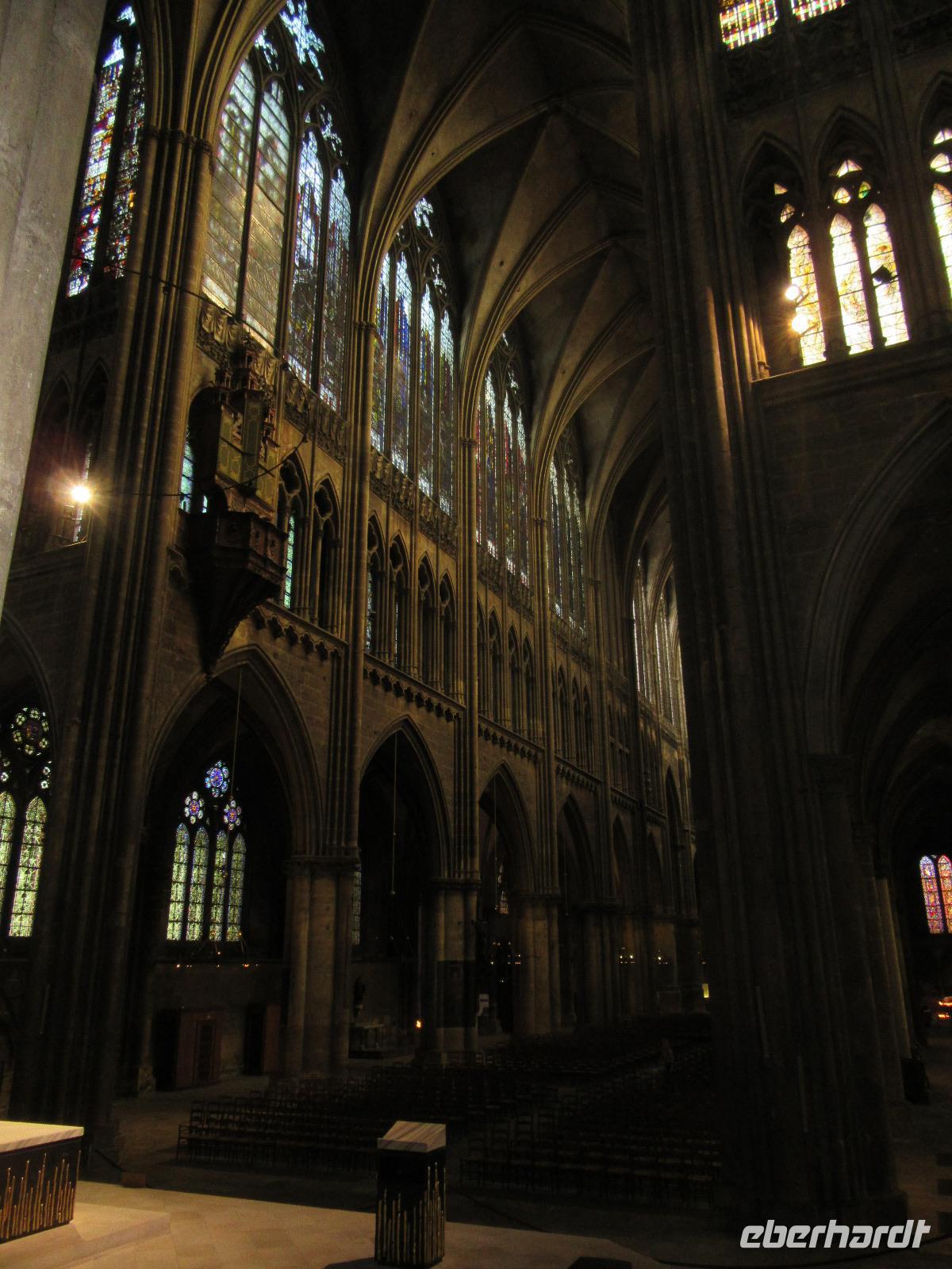 Bevor wir das Hotel für die letzte Nacht bezogen, unternahmen wir noch einen Stadtspaziergang und besichtigten ein Meisterwerk gotischer Baukunst: Die Kathedrale Saint Étienne, deren größter Schatz ihre berühmten Glasfenster sind. Sie bedecken insgesamt eine Fläche von über 6500 Quadratmetern. Vor allem ist die Kathedrale bekannt für ihre Fenster des französischen Malers Marc Chagall, der zu den bedeutendsten Künstlern des 20. Jahrhunderts zählt und oft als „Maler-Poet" bezeichnet wird.